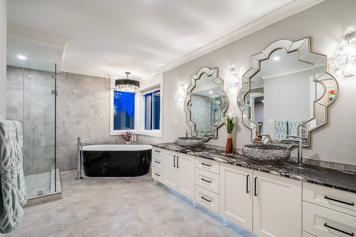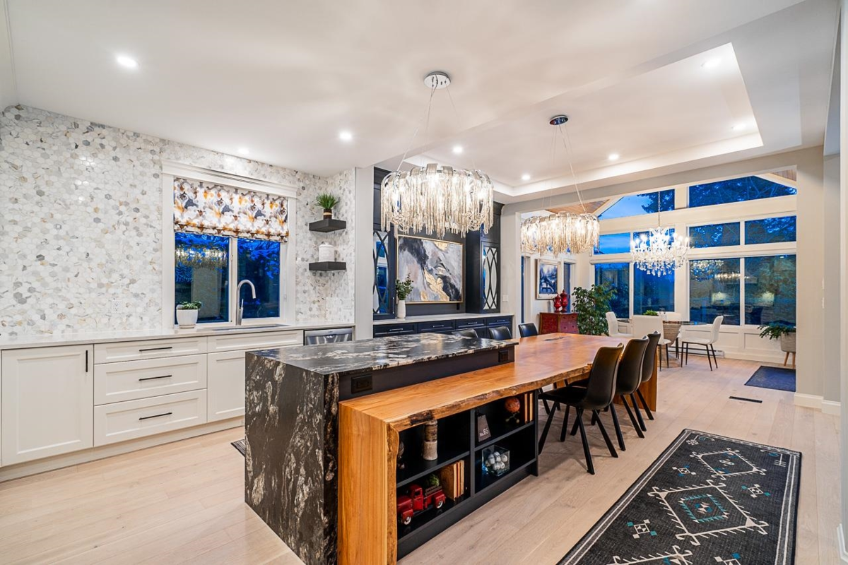 This stunning 4,300 sq ft cul-de-sac home, in a quiet sub-area of affluent Morgan Creek, offers the perfect balance of elegance, comfort, and nature's splendour. Professionally redesigned in 2021 ($375K), the open-concept layout features expansive windows which flood the main level with natural light, a gourmet kitchen with integrated built-ins, stylish cabinetry, a butler’s pantry, and a one-of-a-kind 13ft live-edge island for large gatherings. The primary bedroom has a bdrm-sized walk-in closet and a heated ensuite. The basement has a classical wine cellar & a wet bar, and it also offers a luxurious movie room and large, cozy guest room. The private, SW-facing backyard oasis includes an outdoor kitchen & waterfall, and backs onto a quiet walking path