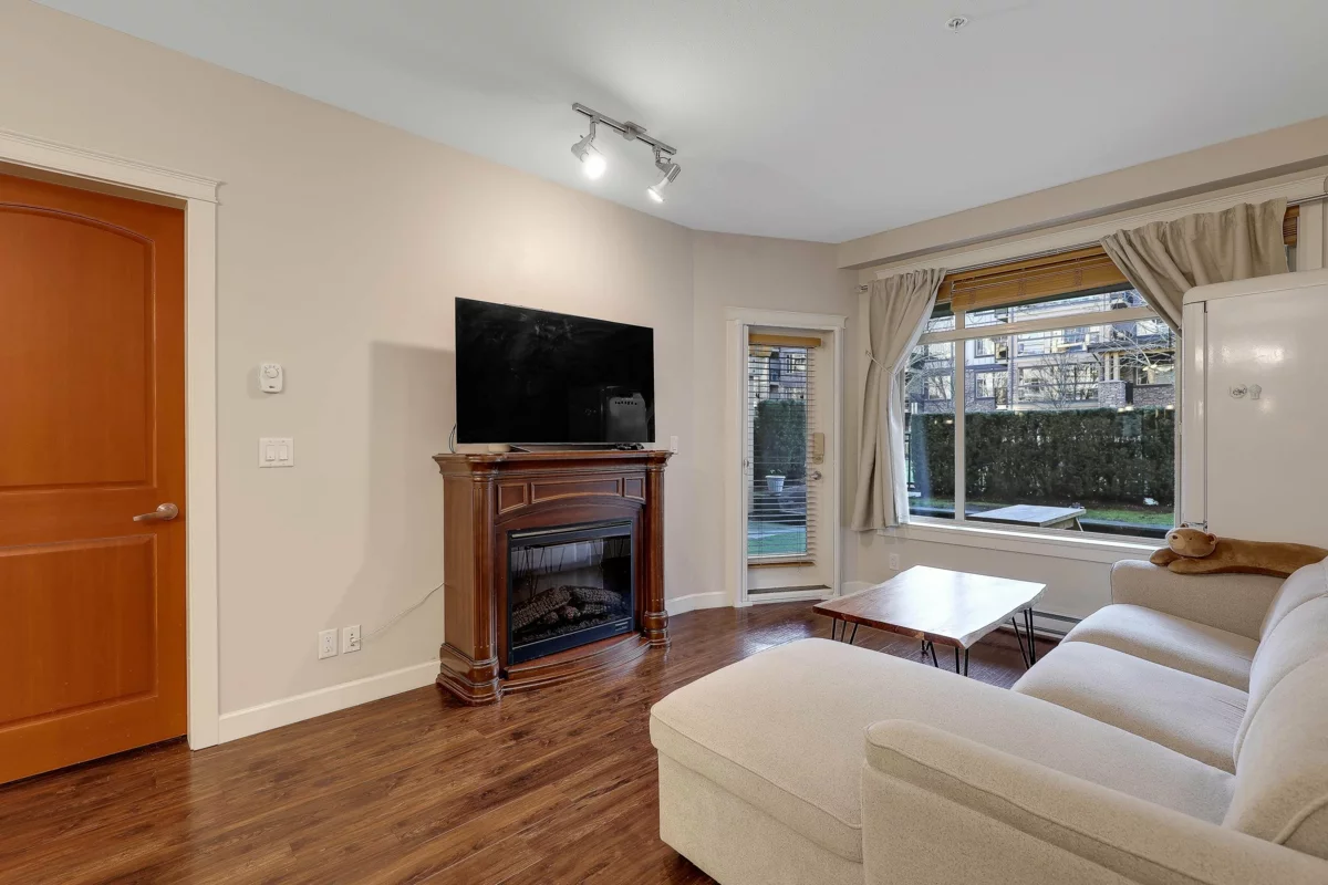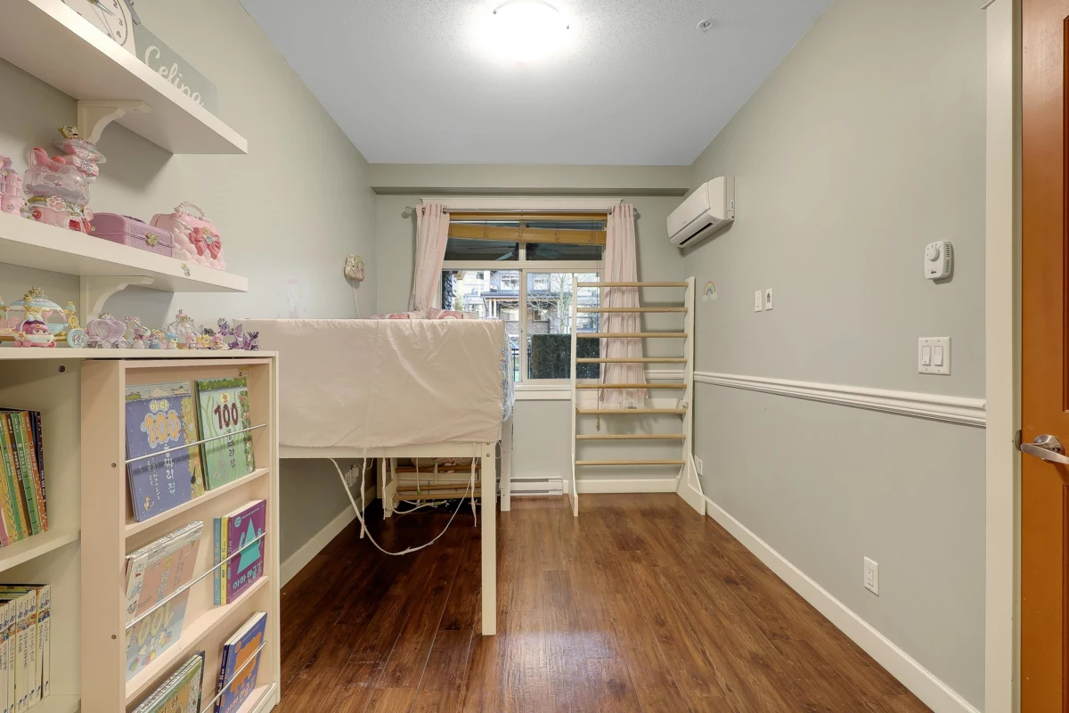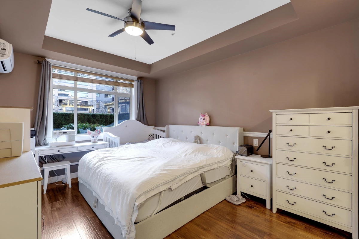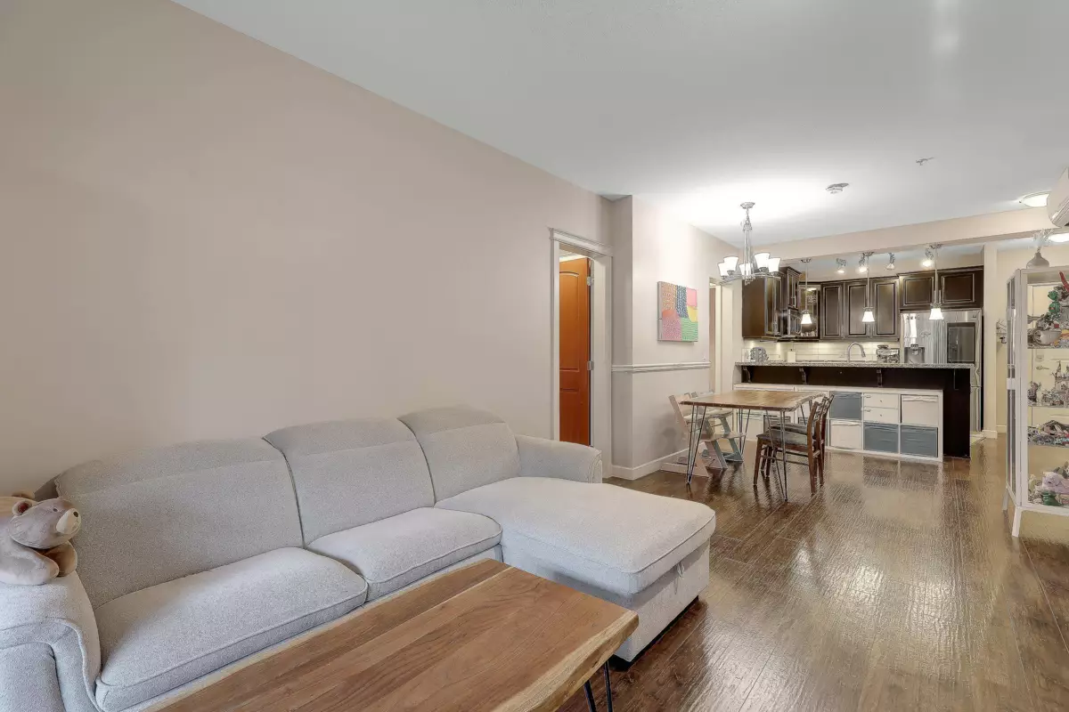 Spacious and bright south-facing ground-level 2 bedroom + DEN home (den can be used as a 3rd bedroom). Enjoy a large south-facing patio with direct access to a gated playground—perfect for families. Located in the fast-growing Willoughby Heights neighborhood, close to schools, shopping, restaurants, parks, Carvolth Rapid Bus, and easy highway access. Excellent layout with bedrooms on opposite sides for added privacy. Features include built-in A/C, laminate flooring throughout, granite countertops, bathrooms with heated floors, wood closet organizers, a built-in safe, and gas BBQ hookup. Includes 2 parking stalls and 1 secure roll-up garage storage locker with power outlet. Don’t miss this exceptional opportunity!