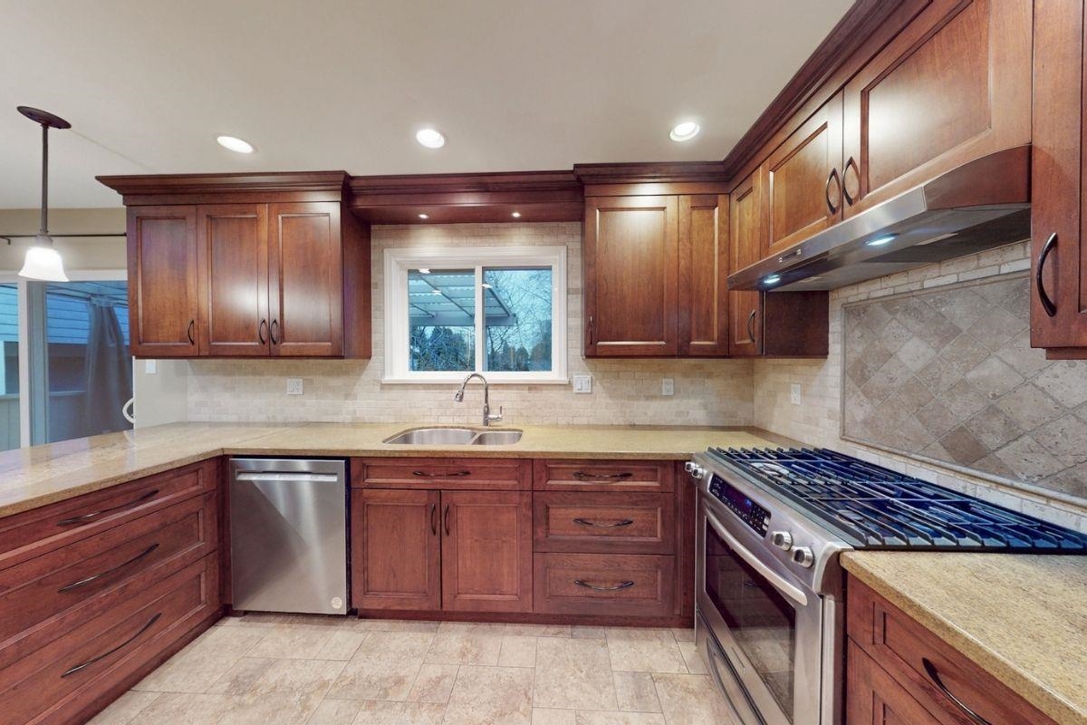 Renovated 4-bedroom, 2-bath home with sunny private yard directly across from a family park in the heart of White Rock. Main floor showcases a completely transformed kitchen with custom cherry cabinetry, granite countertops, stainless steel appliances, and Mt. Baker views. The upper level includes 2 generous bedrooms, tastefully updated main bath, crown mouldings, dining room, & large covered deck perfect for family BBQ's. Below, primary suite, flex bedroom/rec room, & office offer suite potential for income or extended family. Updates include 40-year roof (2004), vinyl windows/doors and high-efficiency furnace. Private and sunny fully fenced backyard. Steps to schools, transit, shops & only a 5-minute drive to White Rock beach! Park-facing homes like this are rare. Full details available.