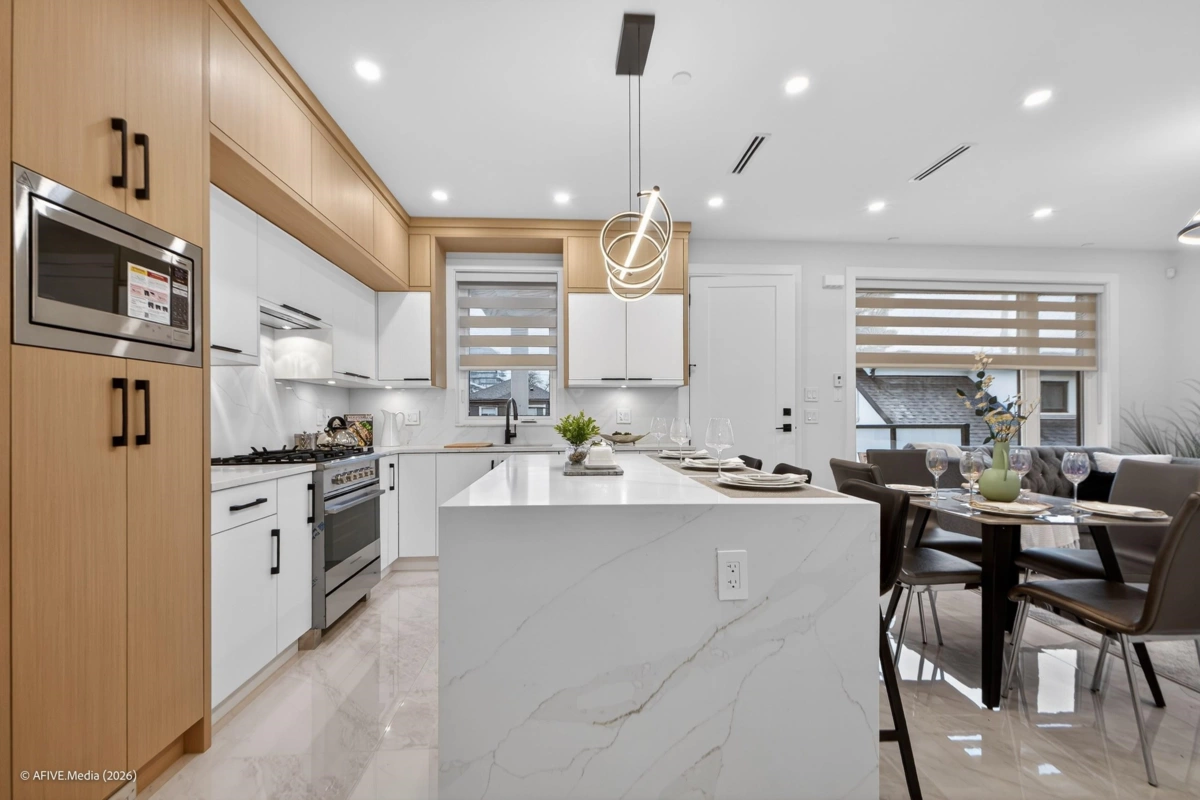 Brand new 1/2 duplex in the S.W. Marine area Vancouver !. This 1500+ sqft 5 bedrooms & 4 bathrooms family residence offers a bright open concept main floor with a 2 bedrooms suite at the basement could be great mortgage helper. Great man craft. Features S/S appliance, hard wood cabinet, flooring, HRV, A/C, Radiant heating, security system. The covered deck off the kitchen is great for entertaining and BBQ's. 2 parking spaces with EV charge roughed in. Located close to shopping and public transportation. Walking distance to schools and parks! School catchment: Mckechnie Elementary & Magee Secondary. A must see.