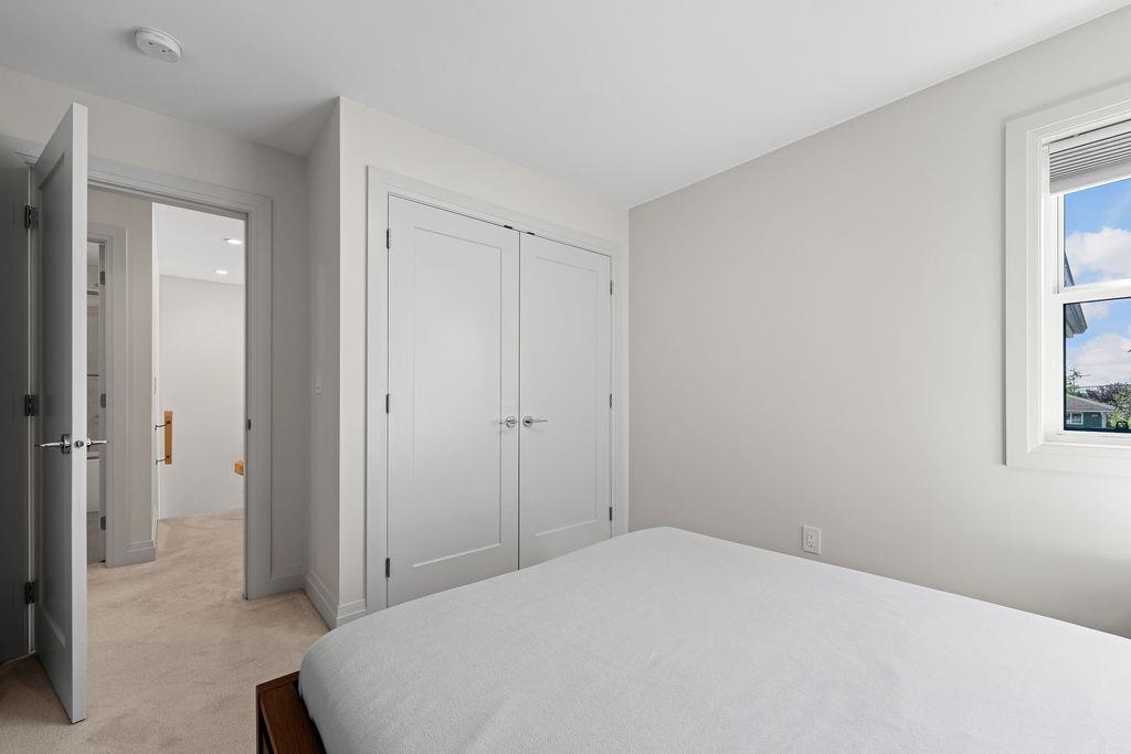 This half duplex blends thoughtful design with everyday comfort, featuring a main-floor primary suite and an airy open-concept layout with soaring ceilings. Eclipse doors extend the living space onto a sun-filled front deck, perfect for seamless indoor/outdoor living. The chef-inspired kitchen showcases a striking blue island with gold hardware and plenty of workspace. Upstairs offers two bedrooms and a full bath, while the lower level includes a rec room, multipurpose area, bedroom, and bathroom. Finishes include oak hardwood floors, custom built-ins, and a 30-amp plug for EV charging, plus a private backyard for kids, pets, or relaxing evenings. Set on a quiet street within walking distance to restaurants & the White Rock Pier. Catchment schools Peach Arch Elementary & Earl Marriott Sec