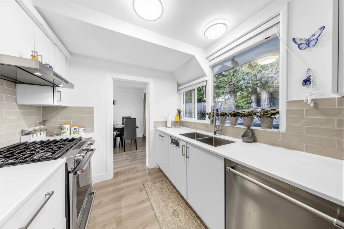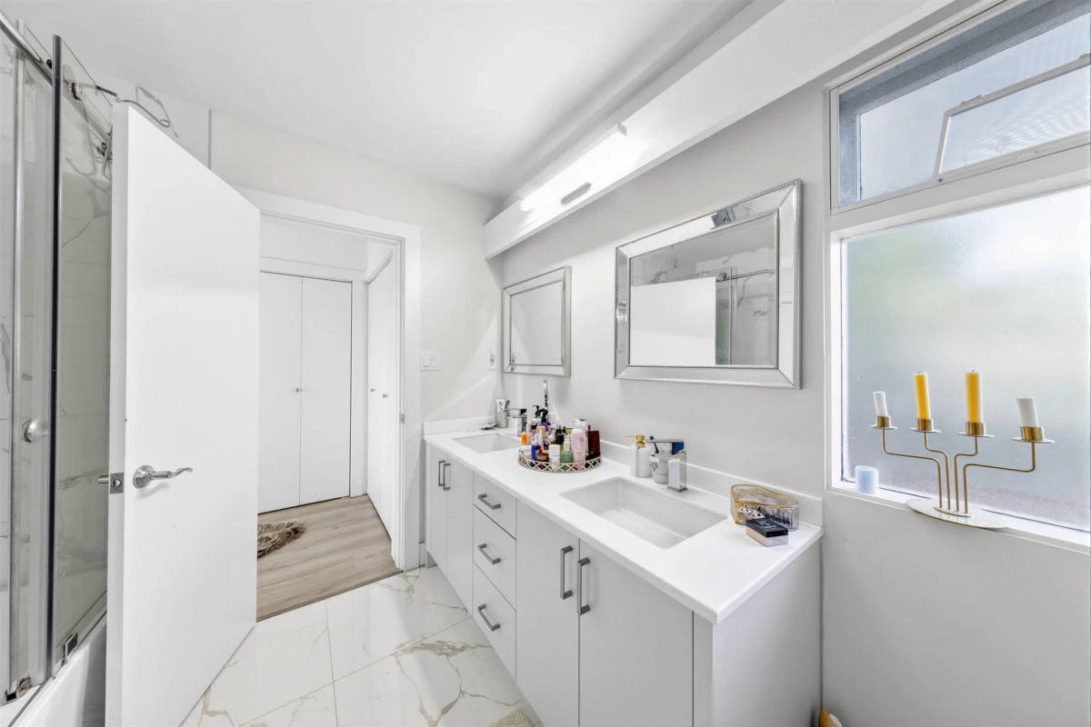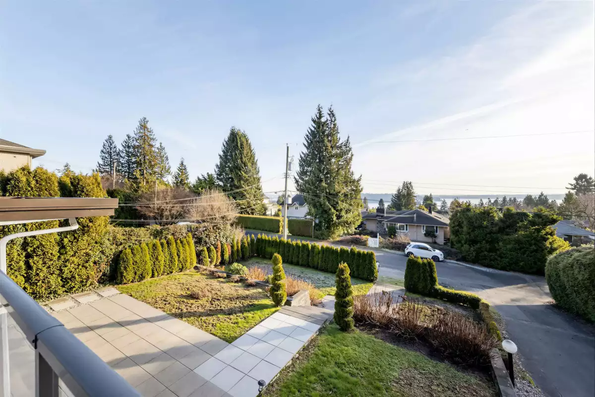 Beautifully renovated Ambleside home with ocean and city views, designed by renowned architect Ron Thom. This bright, turn-key residence offers over 3,000 sq.ft. of living space with 73-ft frontage and southern exposure. Featuring an open-concept layout over two levels, the home includes 6 bedrooms (4 up) and 3 bathrooms. Recent updates include engineered hardwood floors, new cabinetry, appliances, windows, interior/exterior doors, and updated bathrooms. Optional main-level suite with separate entrance offers great flexibility. Situated on a private cul-de-sac with lane access on a nearly 9,000 sq.ft. lot. Walking distance to WV Secondary, Ridgeview Elementary, Ambleside shops, amenities, restaurants and transit, ski.