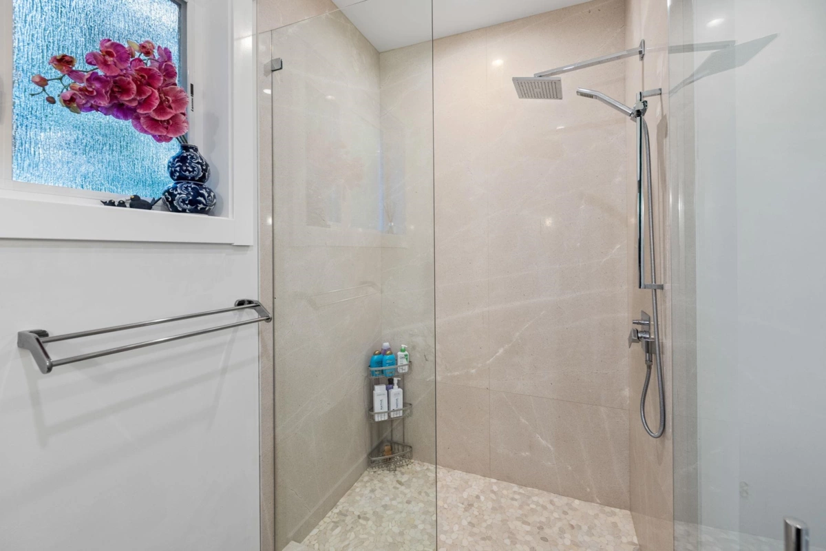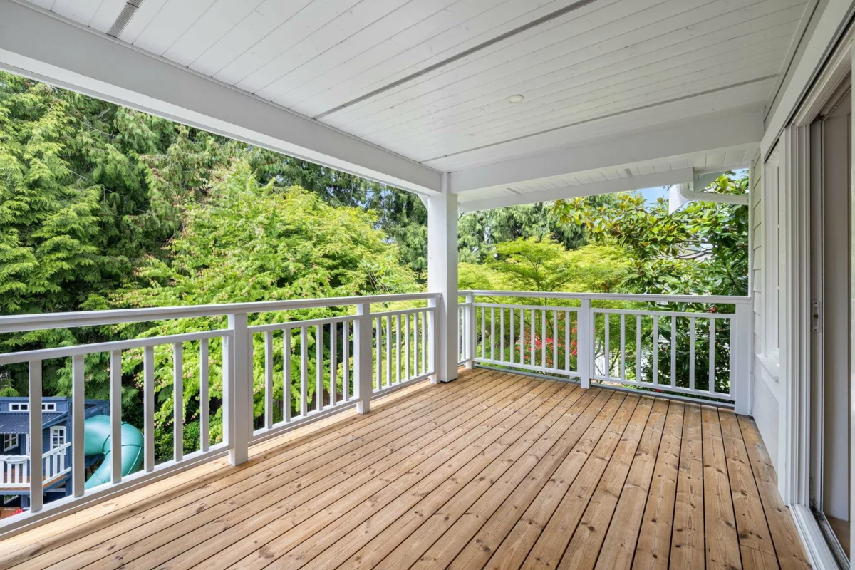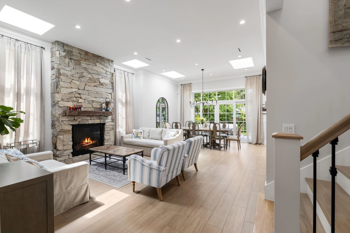 This one-of-a-kind residence offers exceptional craftsmanship and a seamless blend of indoor and outdoor living. Meticulously designed, this 2,731 sq. ft. home features an open-concept floor plan with soaring 11-ft ceilings, creating an airy and expansive atmosphere. Timeless stone finishes add elegance throughout. A large, covered deck off the living room extends the living space outdoors, perfect for entertaining or relaxing. Enjoy breathtaking ocean views stretching to White Rock from the private rooftop deck. The home offers two luxurious primary bedrooms, each with a spa-inspired ensuite. A striking floor-to-ceiling stone fireplace anchors the living area, while in-floor heating ensures year-round comfort. Downstairs guest/in-law suite with bathroom and separate entrance.