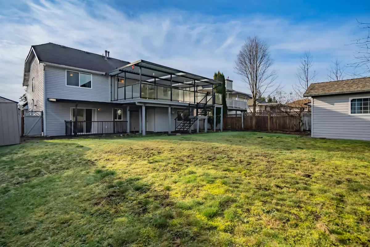 This spacious 7-bedroom home offers exceptional flexibility for even the largest extended family, featuring 3 bedrooms plus a flex room upstairs & a finished basement. Situated on a generous 8,408 sf lot in desirable Fraser Heights. The home is packed with numerous features including a massive covered deck, 3 full baths, large primary bedroom with walk-in closet, a spacious living area, & laundry on the main floor. 4 bedrooms down, laundry, & separate entry, plus an efficient heat pump for year-round comfort. Highlights incl. a 12' x 14' detached, insulated studio (w/power), a workshop, shed & double garage. BONUS RV parking at the side of the home. An excellent location just a short walk to schools, shopping, and transit, with quick and easy access to Hwy 1. Quick possession possible!