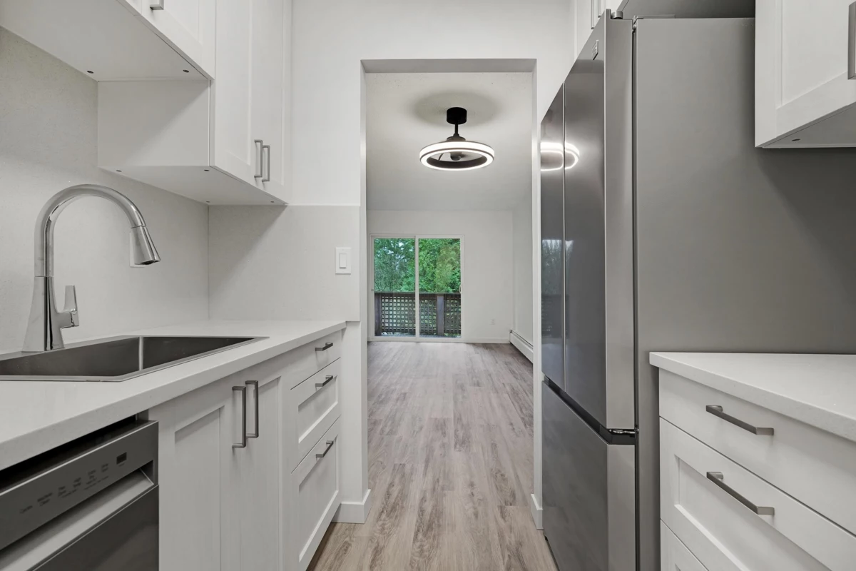 Beautifully updated 1-bed in Port Moody’s sought-after College Park! This bright top-floor home features a sleek renovated kitchen with stainless appliances, stone counters and shaker cabinets, a refreshed bath with modern tile, and a spacious private balcony surrounded by trees. Steps to Westhill Park with sports fields, playground, dog park, outdoor pool and trails. Walking distance to Seaview Elementary; close to Glenayre Elementary, Port Moody Secondary, SFU, transit, shops and breweries. Great for first-time buyers or investors with heat + hot water included in strata.