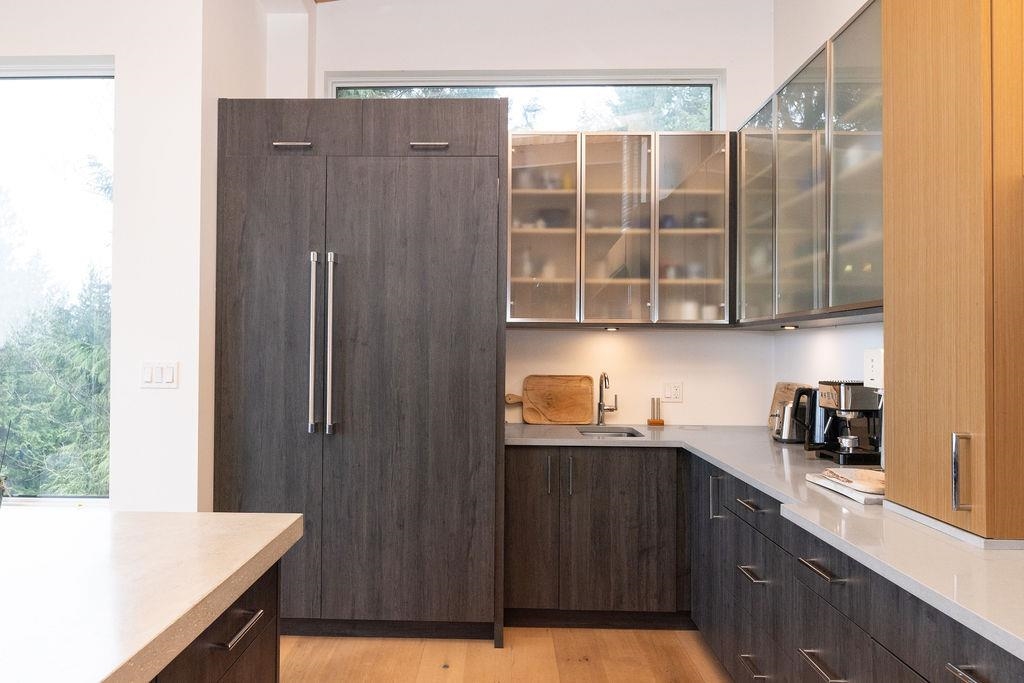 Perched among the treetops with panoramic Salish Sea views, this stunning 4-year-old home is just minutes from Gibsons. Designed for comfort and style, it features vaulted wood ceilings, oak flooring, and radiant in-floor heating. The chef’s kitchen is a showstopper, boasting Fisher & Paykel appliances, a dual-fuel range, and a 9-ft island—perfect for entertaining. Wake up to breathtaking ocean vistas in the luxurious primary suite with a spa-like ensuite. A private 2-bedroom cottage and a shared sauna and outdoor shower offers an ideal retreat. The 1,400 sq.ft. workshop with triple bay doors, office space, and 240V/3-phase wiring is perfect for creative projects. Enjoy homegrown produce from the greenhouse and vegetable garden, or cook al fresco in the summer kitchen. A beautiful package!