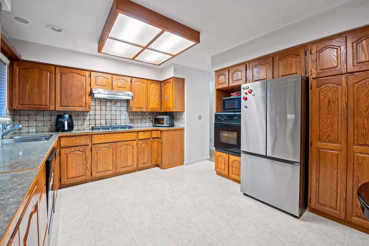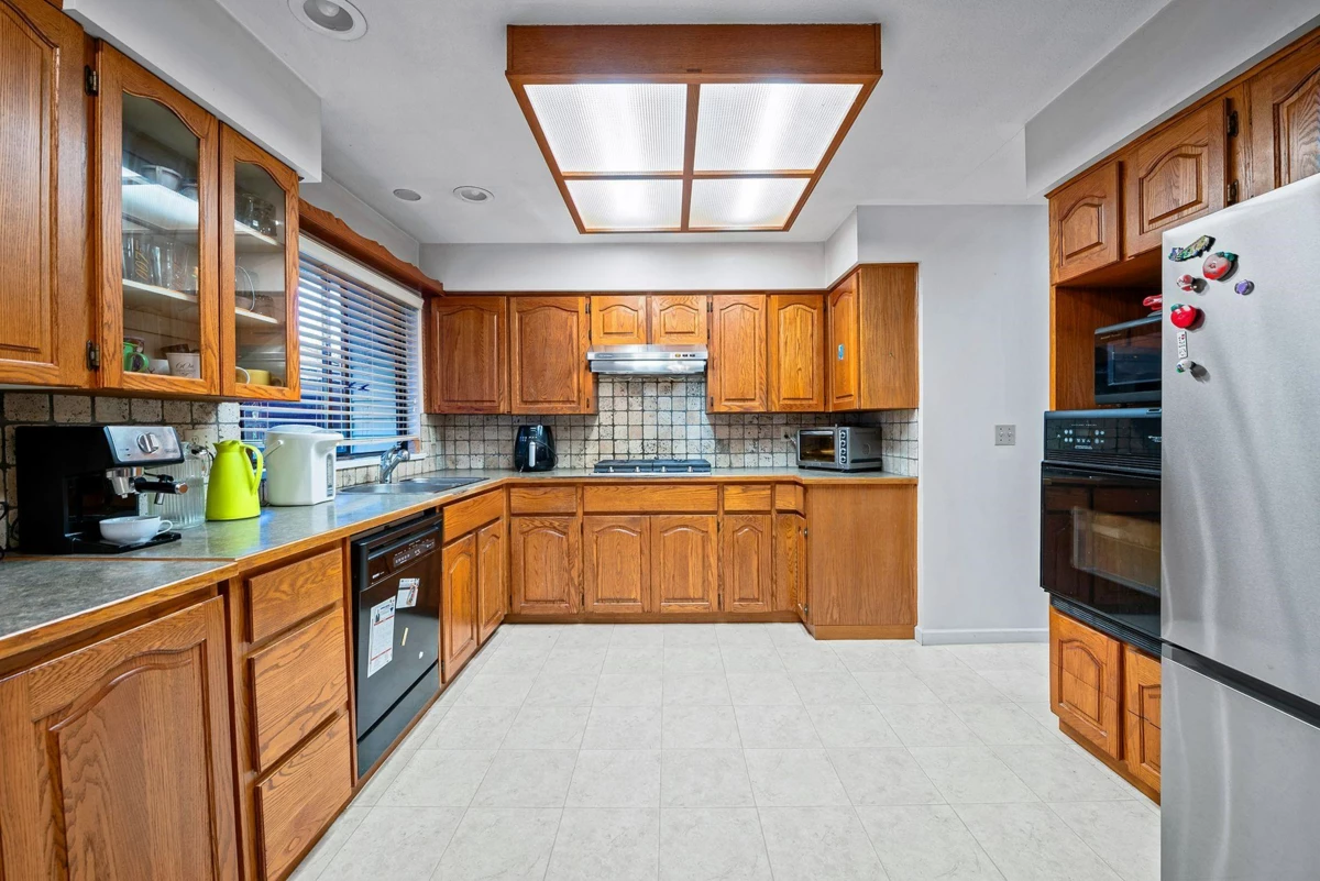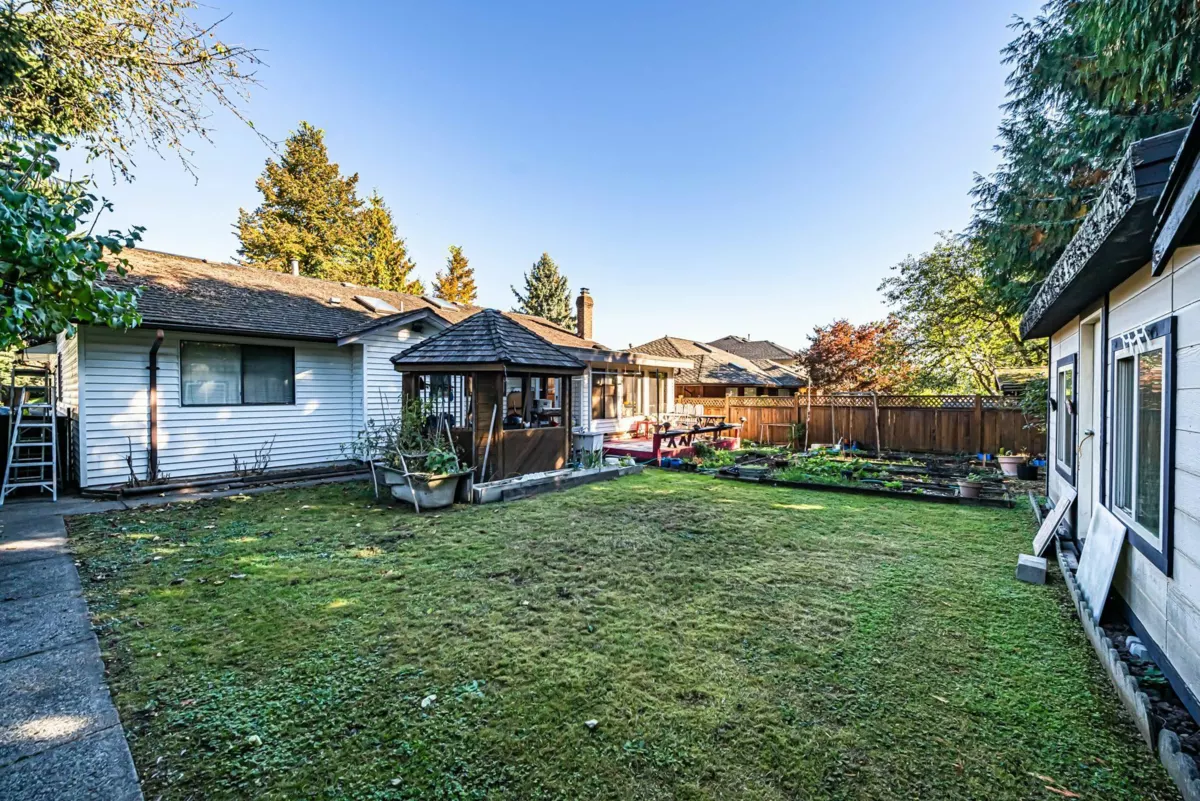 Beautifully maintained custom rancher situated on a 7,205 sqft lot, a private, quiet street in a highly desirable neighbourhood—just minutes from Highway 1, Guildford Town Centre and school. This charming home offers an inviting open-concept layout with a spacious oak kitchen and eating area that flows seamlessly into the bright living room and fully finished sunroom, creating the perfect setting for family living and entertaining. Recent updates (2021–2023) include a new range hood, cooktop, fridge, and hot water tank and 7 yrs skylights. The south-facing backyard offers a gazebo, planter area for gardening enthusiasts, plus a storage shed and detached workshop—ideal for hobbies or additional storage. The extra-wide concrete driveway provides ample parking and perfect for your RV or boat.