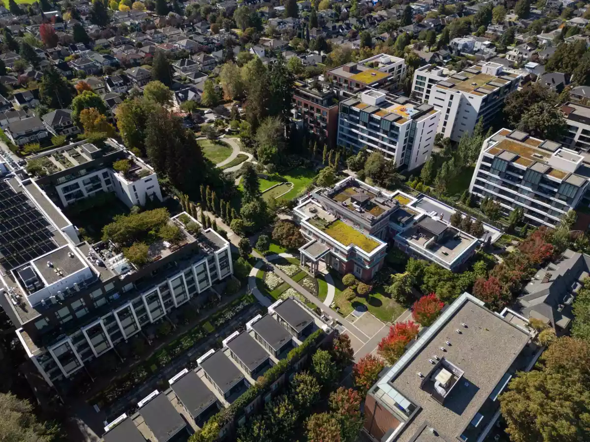 living in a luxurious townhome nestled within a park-like setting. This stunning concrete residence at Shannon Wall Centre – amidst a historic 10-acre estate in prestigious South Granville. Boasting two spacious bedrooms and 2.5 elegant bathrooms, the south-facing home features top-of-the-line Gaggenau appliances with a steam oven and wine fridge, exquisite Italian cabinetry, and air conditioning throughout. The bathrooms are luxuriously finished with limestone and marble, creating a spa-like ambiance. A private two-car garage and ample storage complete this exceptional residence. Residents enjoy exclusive access to a heated outdoor pool, a fully-equipped fitness center, a stylish clubhouse.all within a prime location just minutes from UBC, St. George’s School, vibrant shopping district.
