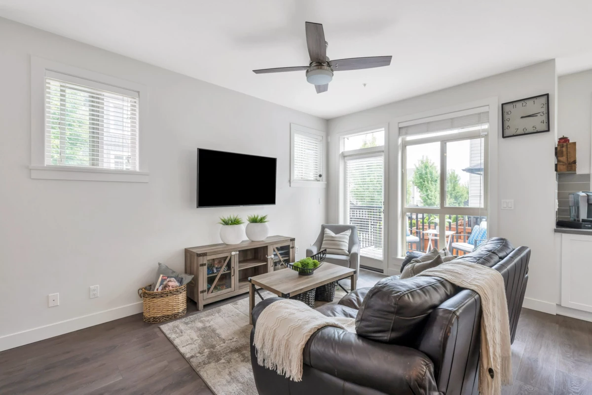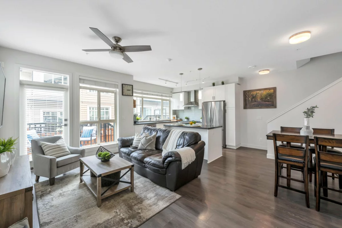 This stunning, END UNIT townhouse located in the highly sought-after "Maple Heights" complex & built by "QUALICO" is a rare find! The main floor features loads of windows on three sides with natural light flooding the space, & complementing the 9 ft ceilings. In addition, the main floor features laminate floors throughout, tiled bathroom floors, and carpeted stairs. The "Great Room" design includes an open kitchen with a center island, eating bar, gas stove, quartz counters, tiled backsplash, under-mounted sink, and stainless steel appliances. The living room has French doors leading to the deck & private fully fenced rear yard. Upstairs, you'll find 3 bedrooms, two full bathrooms including the primary bedroom with a walk-in closet & luxurious 5-piece ensuite. FULL DRIVEWAY parking for 4!!