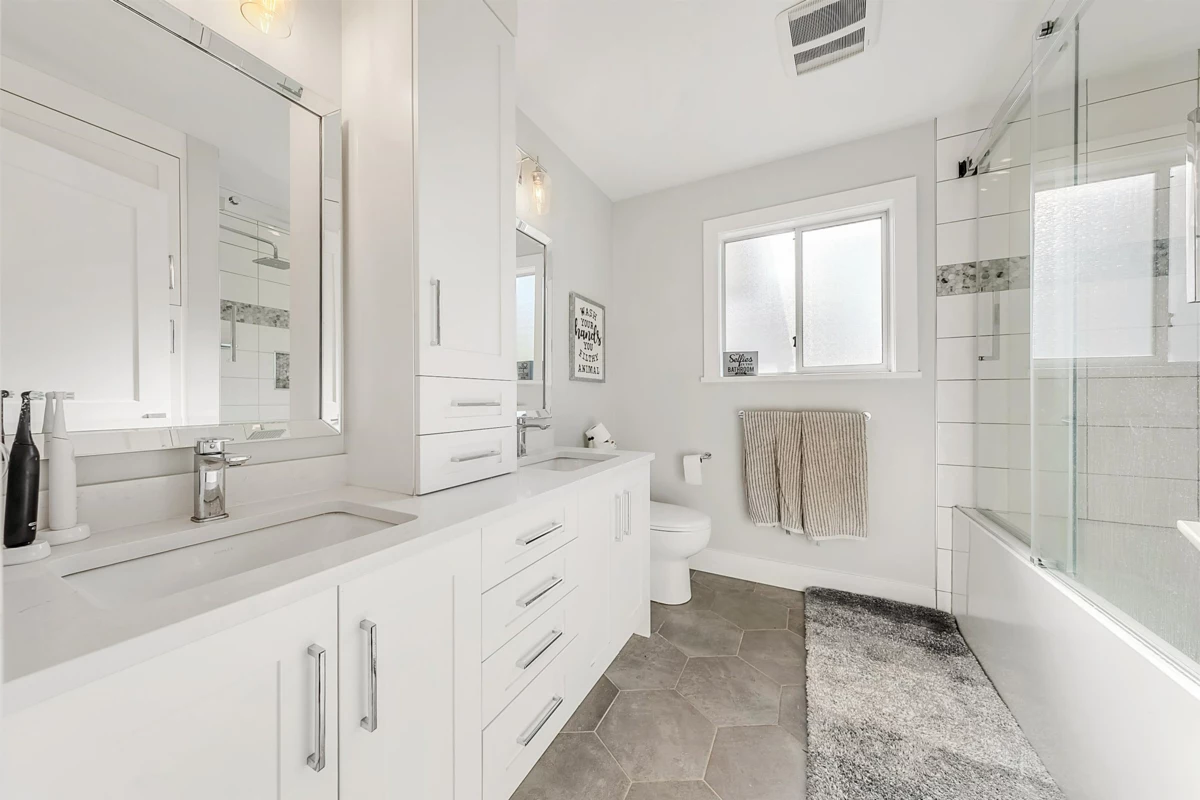 Family Neighbourhood - Sought after 7084 sq. ft. cul de sac lot, enjoy privacy, expansive patio, covered hot tub, fenced yard, backs onto greenspace, 2 storage sheds, dog run too. Functional, stylish and move in ready 2080 sq. ft., main floor open concept, vaulted living-room ceiling, upper level 3 bedrooms & games room. Amazing & modern 2021 renovation includes: main floor vinyl windows, front & rear doors, new white kitchen, massive island, show case stainless appliances, 6 burner gas-stove, wine fridge. Renovated baths, double sinks, quartz tops. Moldings, baseboards & custom staircase adds to architectural flair. No carpet here, durable vinyl floor on both levels. Electric & gas fireplaces. 7-year new forced air furnace, 15-year new roof. Convenient location, walk most everywhere.