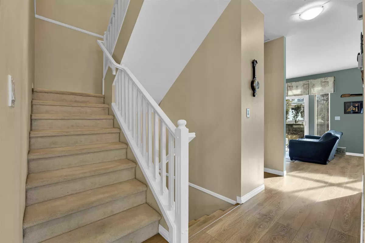This unit END offers stunning views of New West and the mountains. It was originally a show home, offering extra attention to detail and quality finishes throughout.The spacious main floor features a bright family/living room with a cozy gas fireplace, providing plenty of room to relax. The layout is perfect for entertaining, with a powder room, patio, and balcony all conveniently located on the main level. The primary bedroom on the main floor has a full ensuite bathroom and a walk-in closet. Upstairs, you’ll find two generous bedrooms with full bath. Recent updates include laminate floors, granite countertops, custom drapes, dishwasher 6 months old), hot water tank (2 years old), roof and leaf-guard gutters (2 years old). Open House Saturday February 7 and Sunday February 8 from 2-4 p.m.