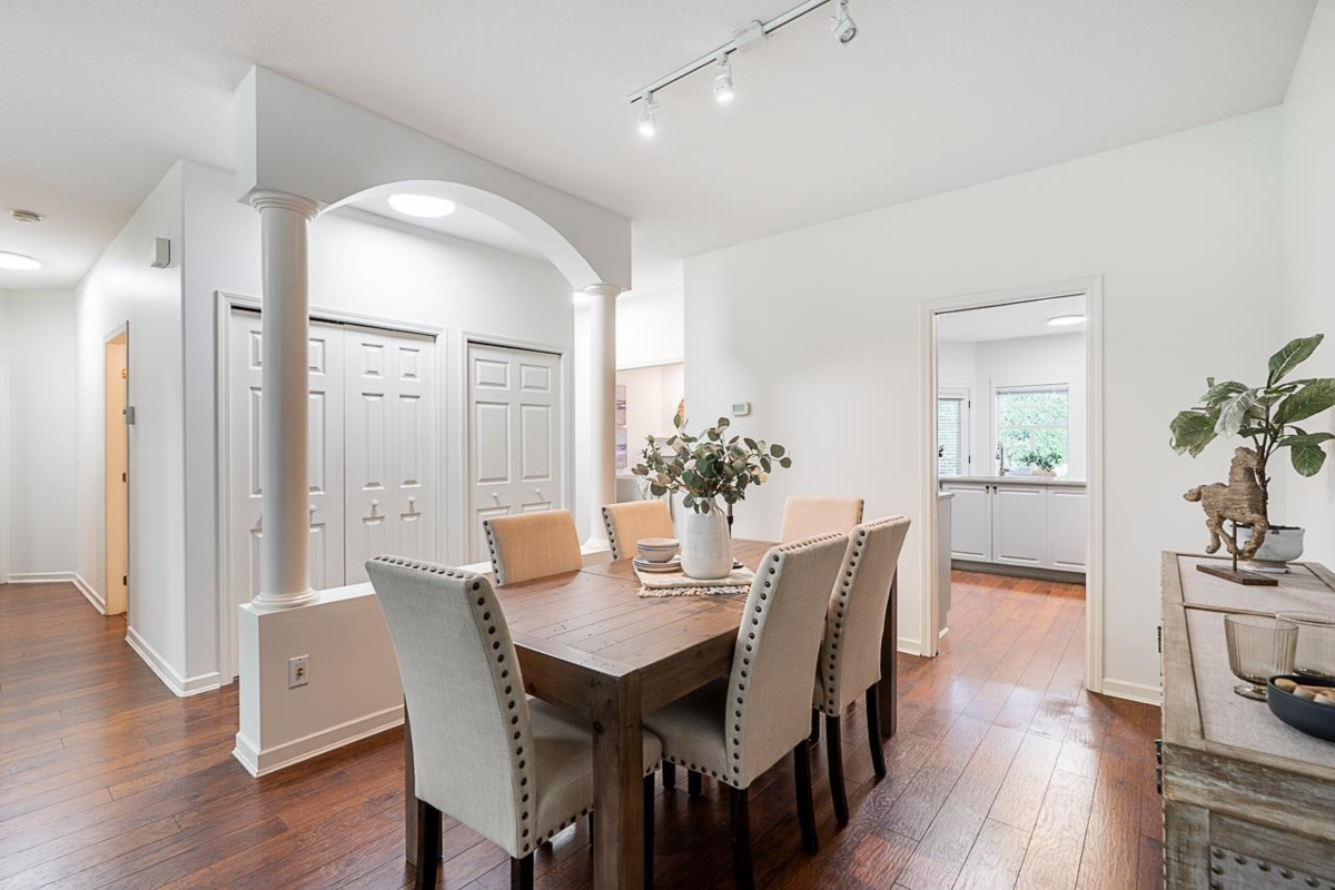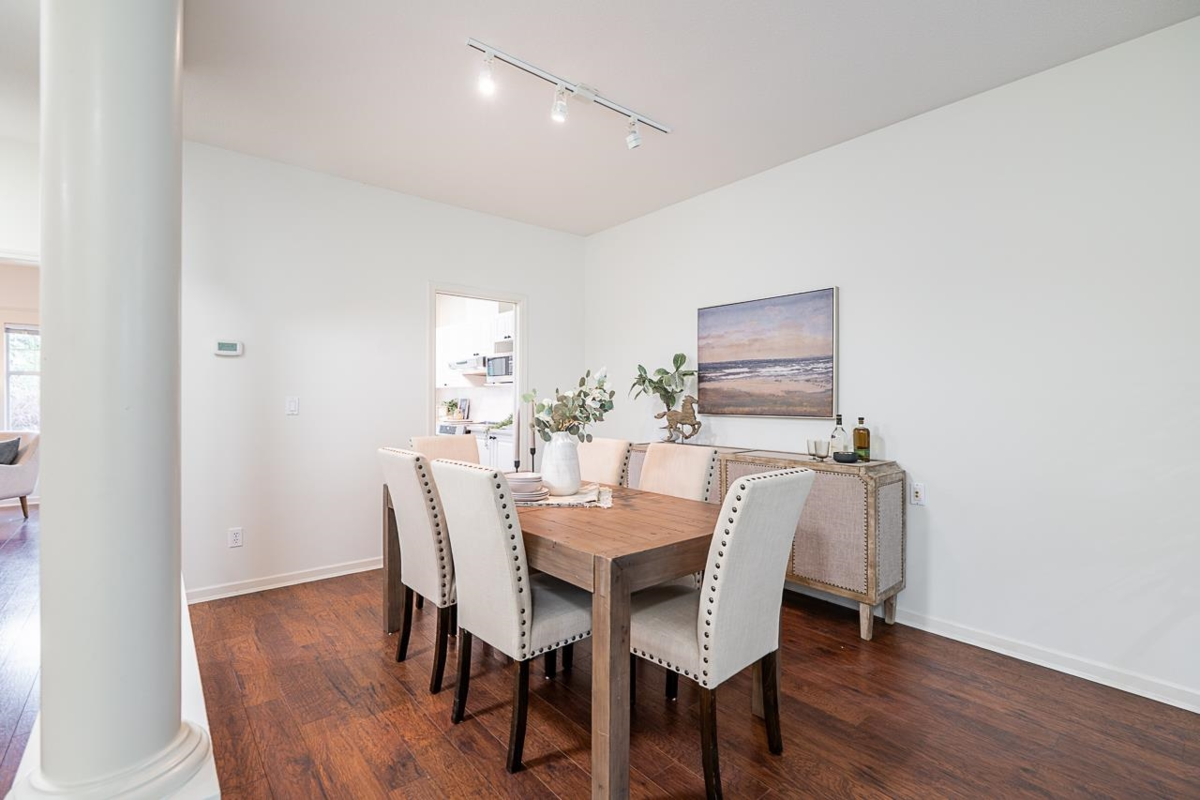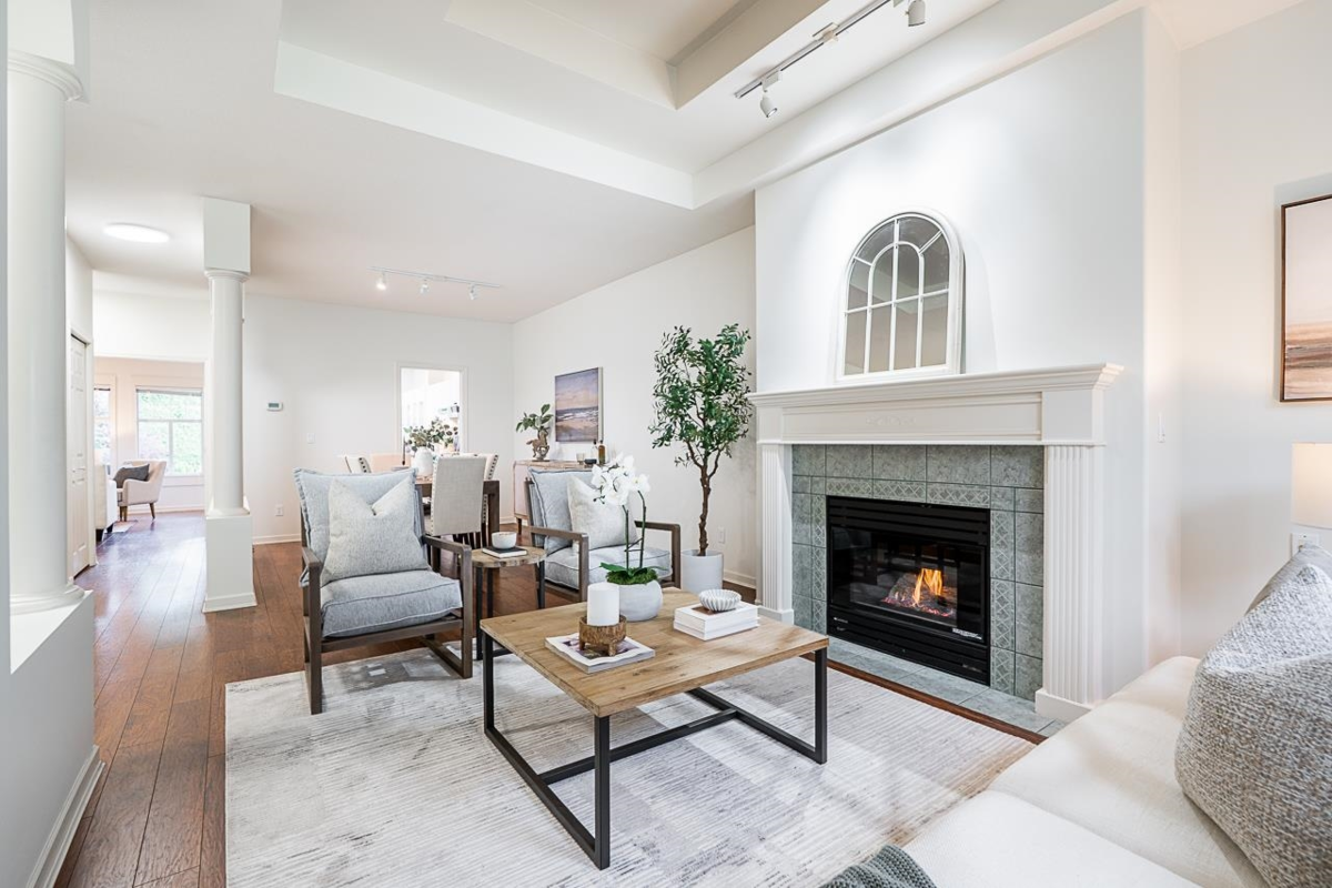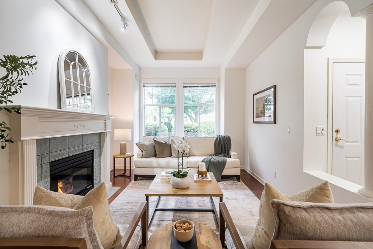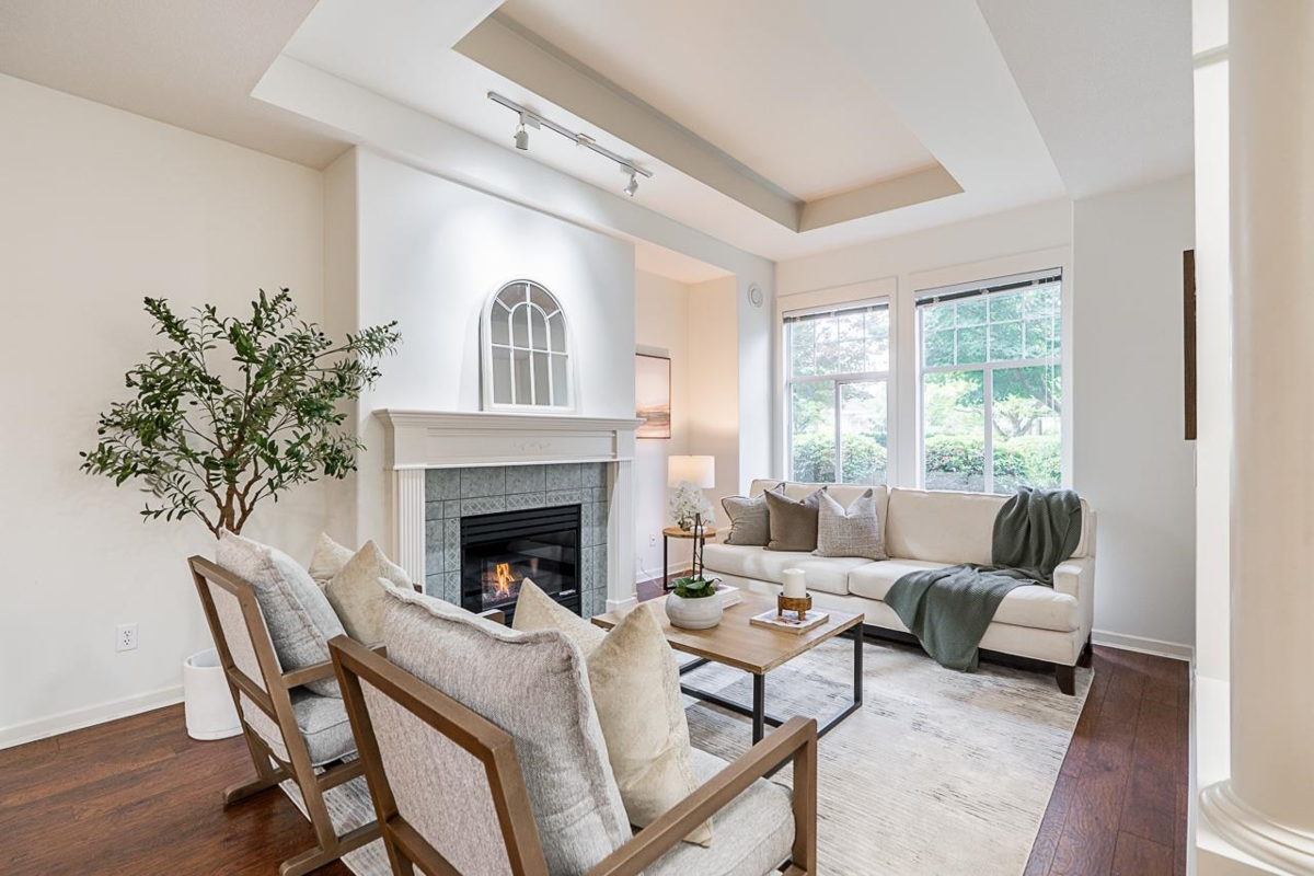Welcome to Summerlea Pointe—a gated, quiet, and highly sought-after South Surrey community. This freshly painted home is a turn-key 2bd, 2ba rancher-style townhome offers 1,550 sq ft of single-level living w/radiant in-floor heating throughout. The spacious living/dining has vaulted ceilings, gas fireplace, & large windows for tons of natural light. Updated kitch w/quartz countertops, s/s appliances, white cabinetry, tile backsplash, pantry pull-outs & a breakfast nook that opens to a cozy family room w/a 2nd fireplace. Huge prim bd w/walk-in closet & spa-like ensuite & private patio opens to a stunning backyard space, perfect for morning coffee or BBQs. Walk to Morgan Crossing, Grandview Corners, shops, dining & more.