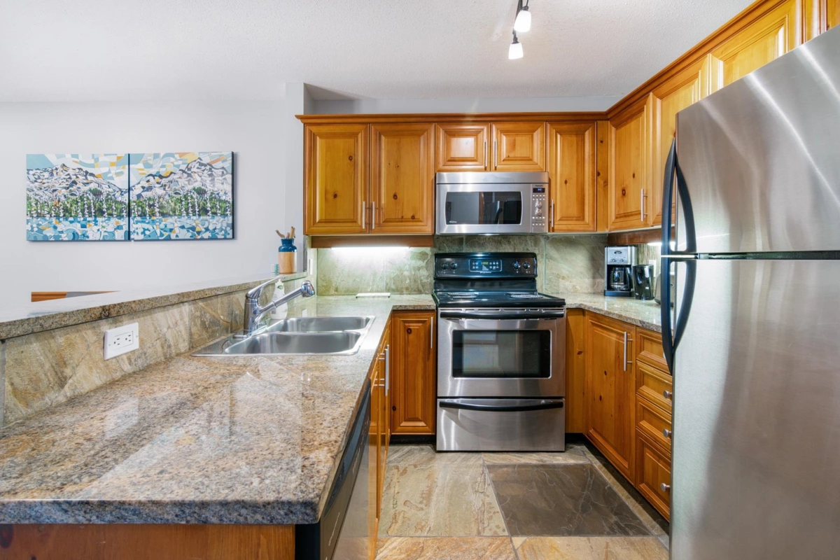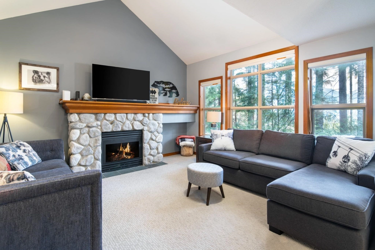 Ski-in/ski-out living on Blackcomb awaits in this 2-bedroom, 2-bathroom Arrowhead Point townhome, ideally located in the desirable Blackcomb Benchlands. Set within a quiet, forested setting, this spacious one-level floor plan offers excellent storage, secure underground parking, and a private deck. The open kitchen features granite countertops and stainless steel appliances, while the cozy fireplace creates the perfect après-ski atmosphere. Relax in your private outdoor hot tub after a day on the slopes or trails. Zoned for full-time living or nightly rentals, this home is sold fully furnished and move-in ready, with a free village shuttle and easy bike access to Lost Lake, beaches, and trails.