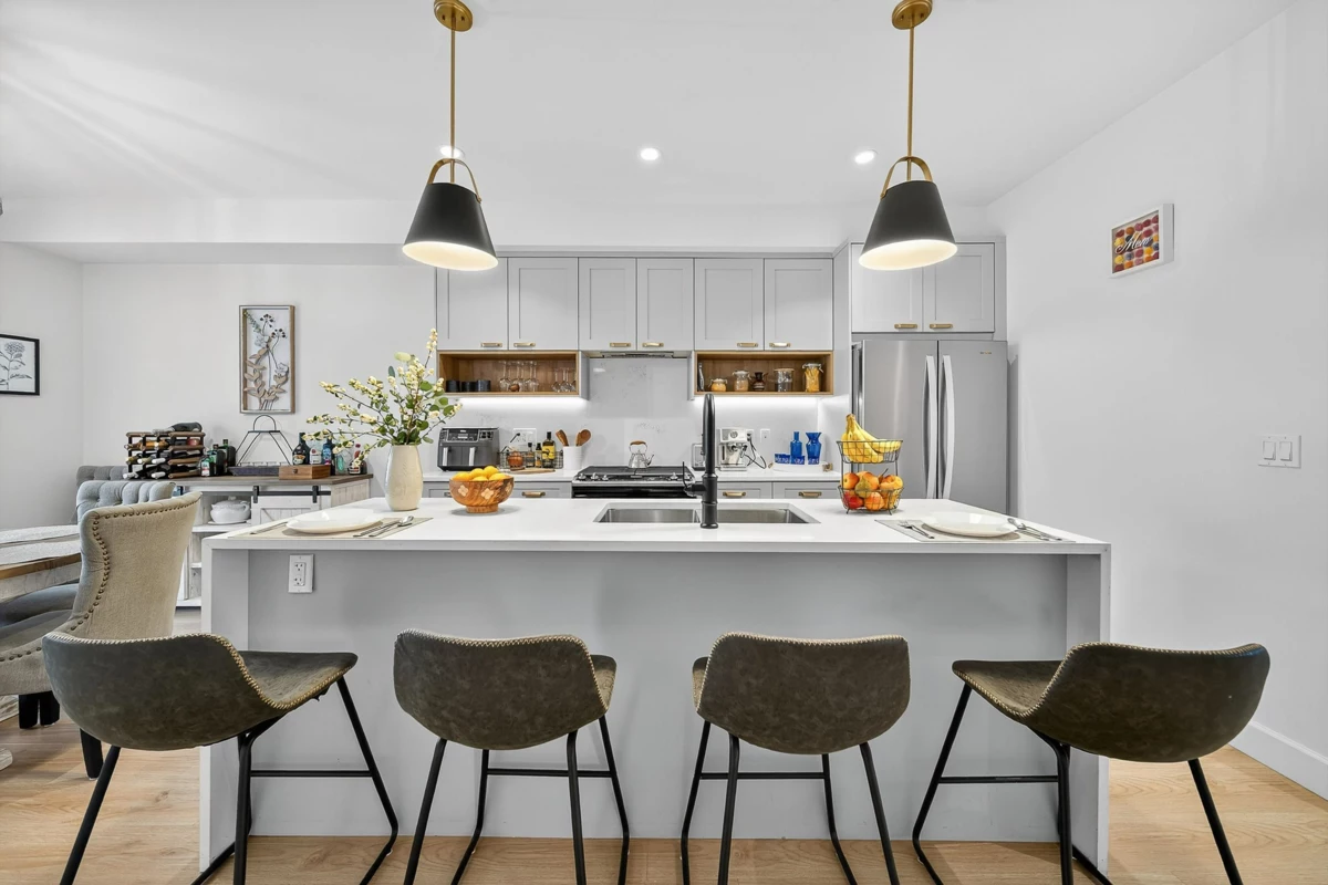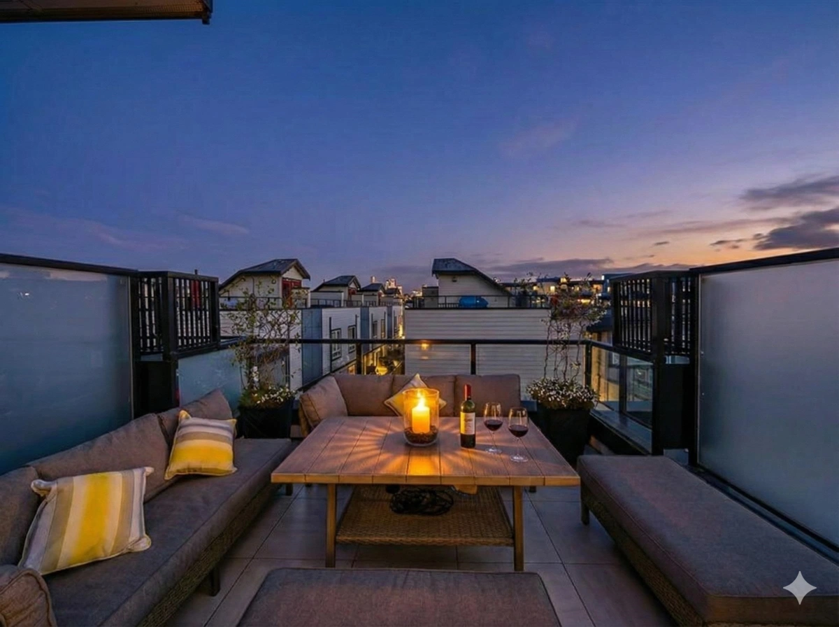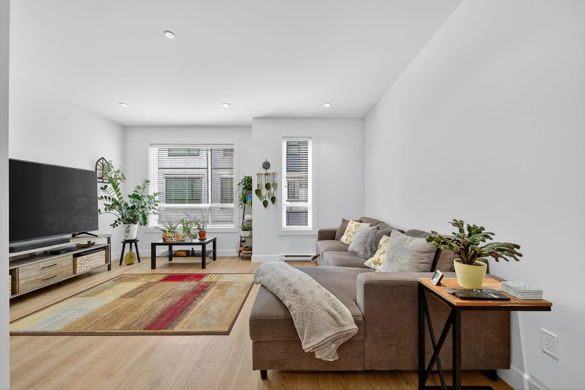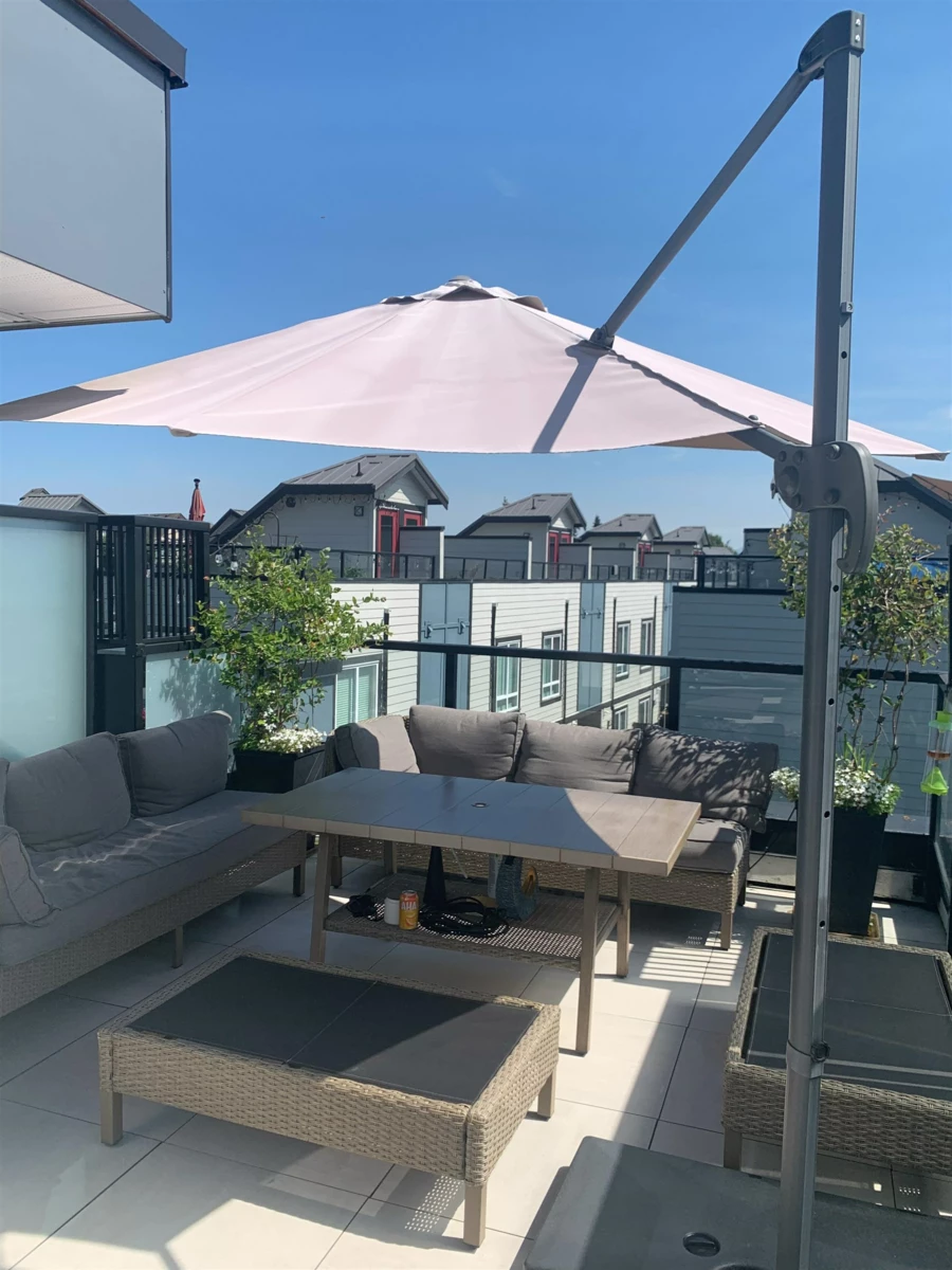 Brydon Living – Built in 2021 and looks like a show home.LOW STRATA FEES ($248.36) and centrally located near parks, shopping, schools, and the future SkyTrain. This thoughtfully designed 2-bedroom +OFFICE/DEN , 3-bath townhouse offers quality upgrades throughout. Enjoy sleek quartz countertops, a high-end appliance package with a gas stove, and a dining area that opens to a private deck. Upstairs features spa-inspired bathrooms and a spacious primary suite with dual closets. Entertain on the 538 sq. ft. ROOFTOP deck with INCLUDED natural gas BBQ AND patio furniture. Tandem 2-car garage, fenced yard, and ground-floor patio complete this move-in-ready home. This pet-friendly complex make this the perfect choice with so much quality outdoor space. Great Value! Hurry this one is special!