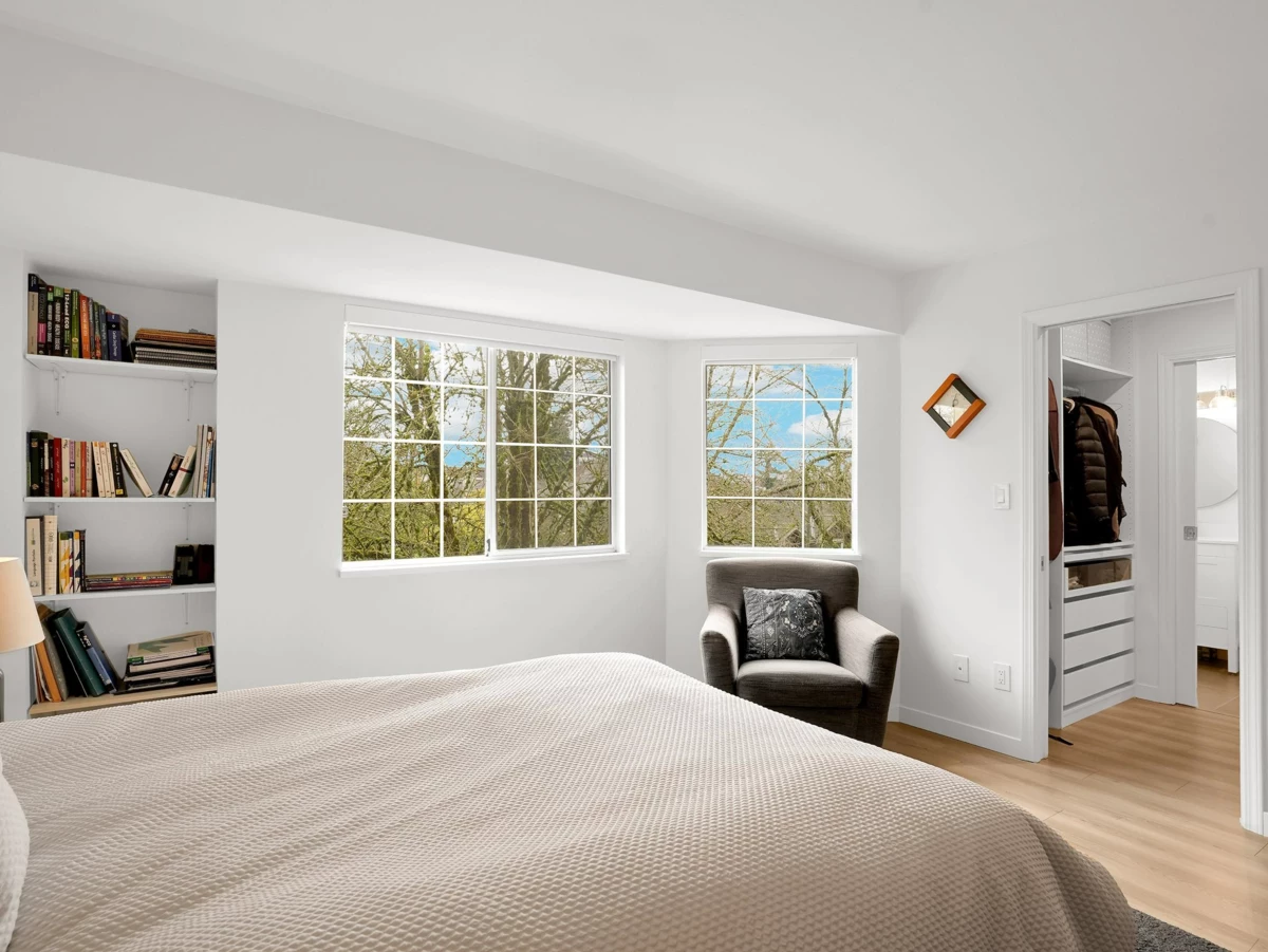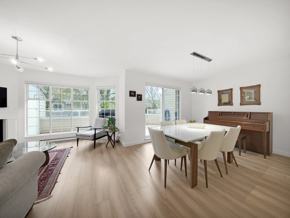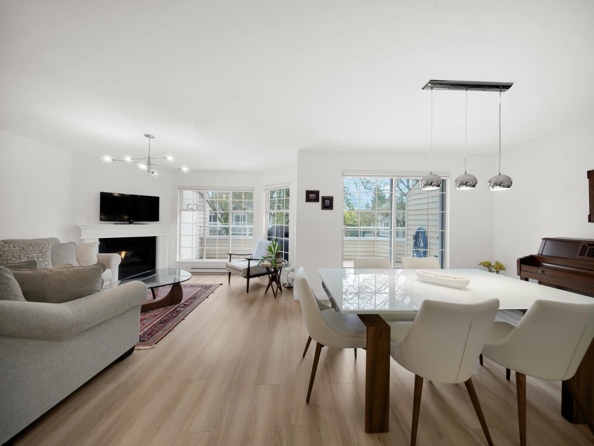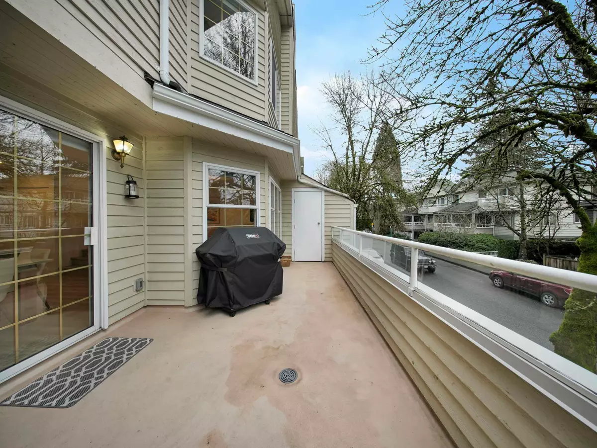 Beautifully RENOVATED SOUTH facing townhouse with 3 bedrooms plus DEN (office), 3 bathrooms, & a bright open concept layout. Spacious rooms & excellent flow create an airy, comfortable living space. Enjoy a south-facing deck with a beautiful treed outlook, providing privacy & a peaceful setting. Fully renovated in 2022 with close to $200K in upgrades, all completed with City & Strata permits; including removal of interior walls on the main floor to create the open concept layout, new kitchen with quality cabinets, quartz countertops & top appliances, updated bathrooms, new flooring & tile, new plumbing, new hot water tank & new blinds (some motorized). Inc 2 parkings & 2 storages. Exceptionally maintained & move-in ready. A rare fully renovated townhouse opportunity in North Vancouver.