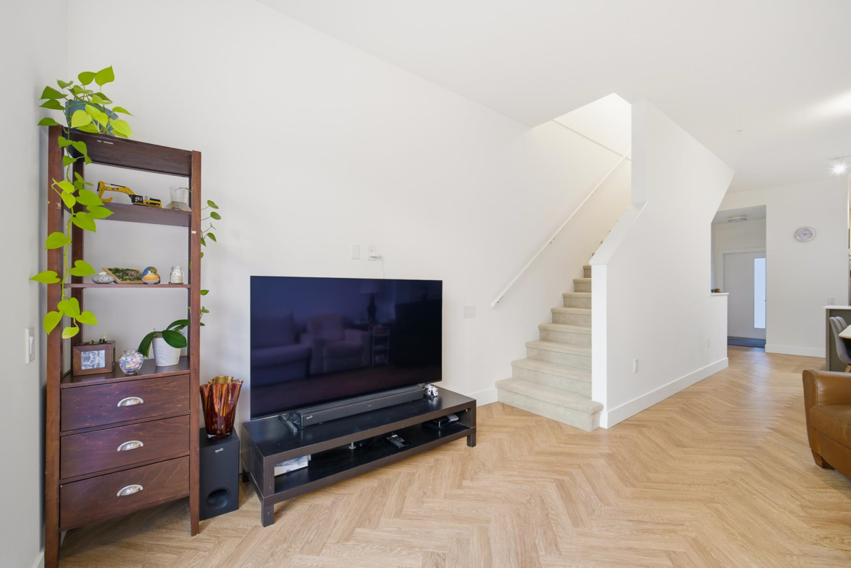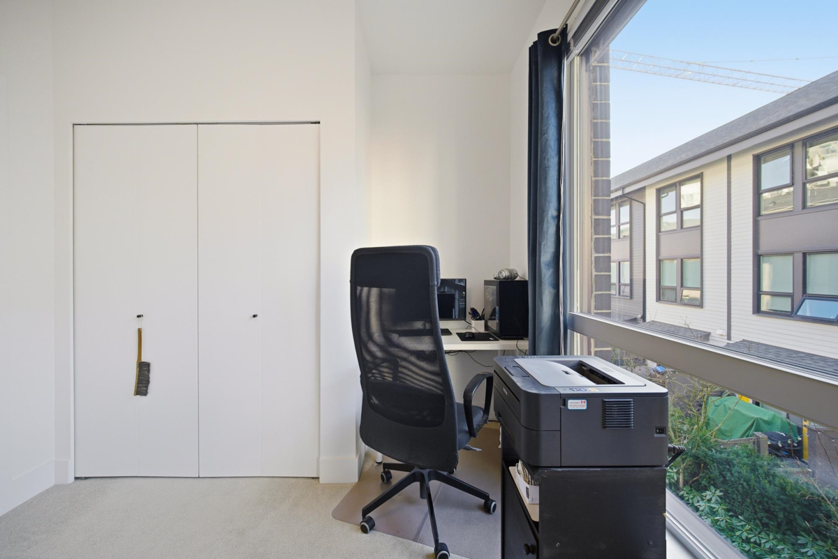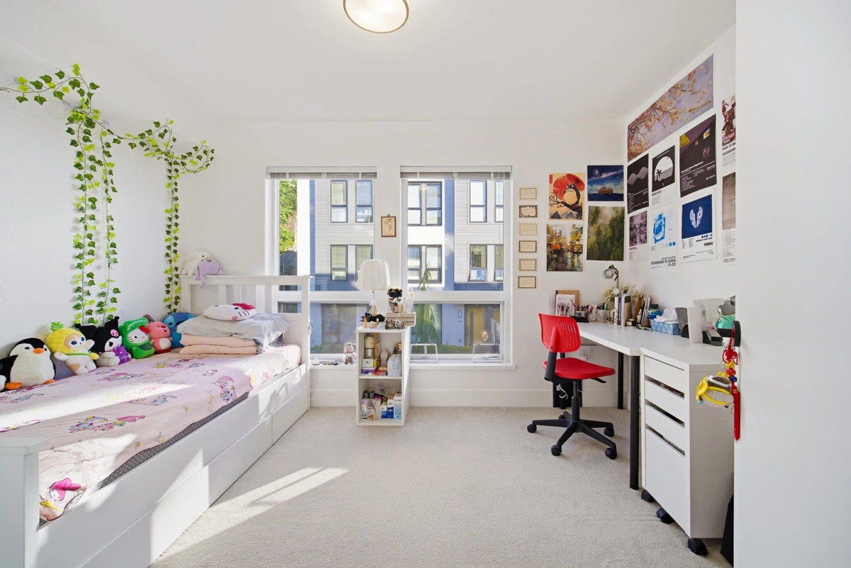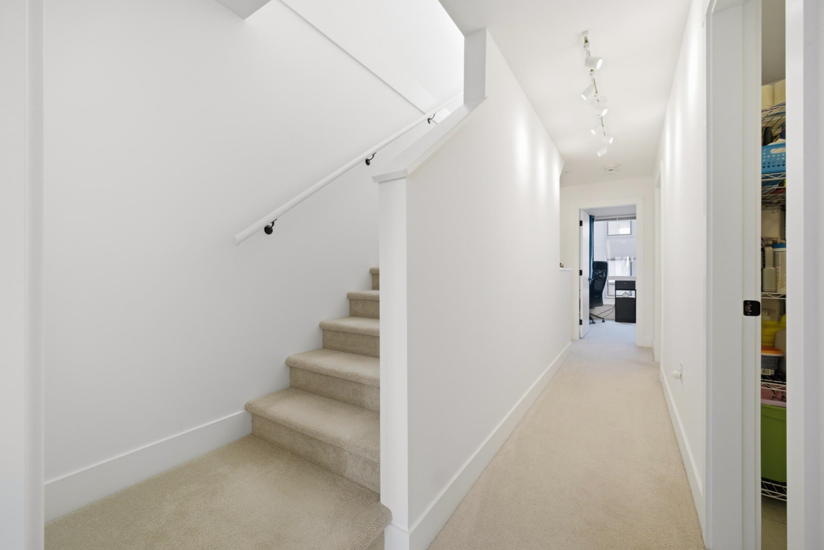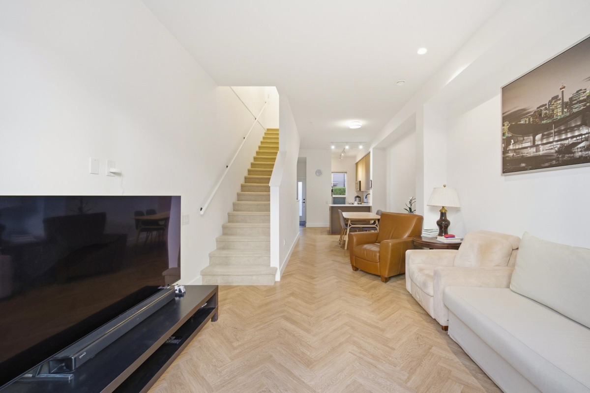 Welcome to FRASER by Mosaic, located in the heart of university at SFU. This modern 3 Beds+Den Townhouse offers 1,623 sf of stylish living with 10’ ceilings on the main and 9' ceilings on the top floor. Open-concept main level features a Shaker Kitchen w KichenAid S&S appliance, quartz countertops, oversized windows, radiant floor heating, and a fenced Patio. A huge Den at lower floor which can be turned into an office or 4th bedroom. The upper floor features 2 bedrooms as well as a laundry room with storage. The top floor features the master bedroom with a 4 pieces ensuite. 1 parking included. Steps away from leading childcare facility, a highly ranked elementary school, Nester Market, the Lorne Davies Recreation Complex, popular hiking trails in Burnaby mountain.
