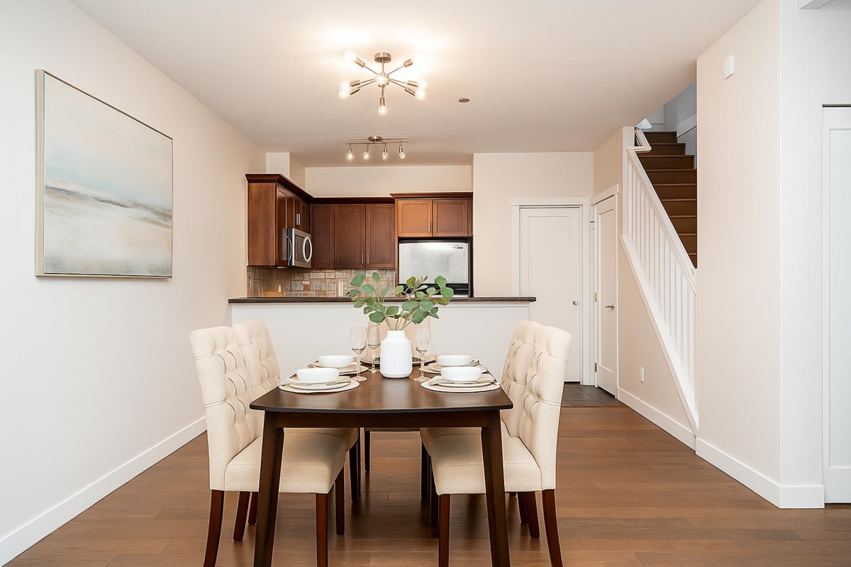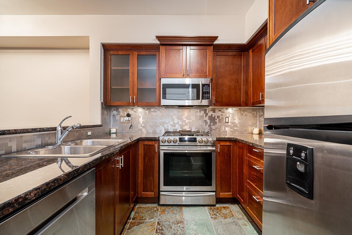 The Largest and the ONLY ONE like it in the complex! Approx. 1,651 sq ft on 3 levels with an additional large storage space on the ground floor. Spacious living/dining area with an open-concept kitchen. 4 bedrooms with 3 very spacious closets plus a den/flex area on the 3rd level, 2 & 1/2 baths, a large private sundeck for summer barbecues, and a balcony with a view on the top floor. Features include granite countertops with a bar-stool eating area, newer stainless steel appliances, shaker-style cabinets, slate flooring in the kitchen, an electric fireplace, 9' ceilings, and window screens. Well-kept condition, original owner. Comes with 1 storage locker, 2 secured underground parking stalls with EV charging available in the common parking, bike storage, exercise center & playground.