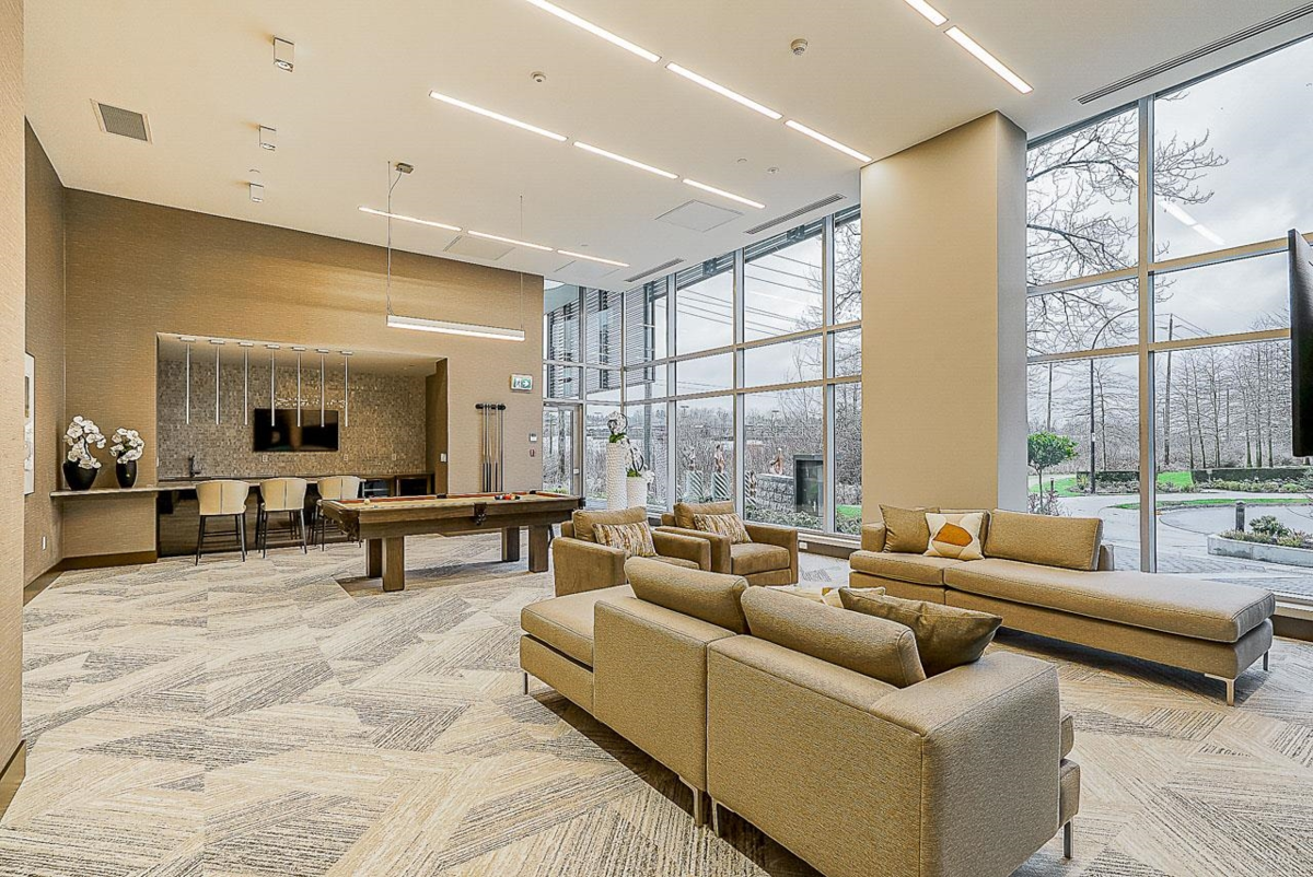 Fulton House by Polygon in desirable Brentwood! This bright South East corner 2-bed, 2-bath home has a functional open layout with a contemporary kitchen, quartz counters, gas cooktop, built-in fridge, and large island flowing into the living/dining areas. Floor-to-ceiling windows and 9’ ceilings create an airy feel with sweeping views. Both bedrooms are generously sized with custom closets, while the primary adds an ensuite and private balcony. The secondbalcony extends from the living room. Full-size side-by-side laundry adds convenience. Resort-style amenities at the 28,000 sq. ft. Fulton Club: pool, hot tub, sauna, gym, yoga studio, lounge, guest suite & more. Steps to Brentwood Mall & SkyTrain. BONUS – 2 storage lockers and parking spot right near the elevator.
