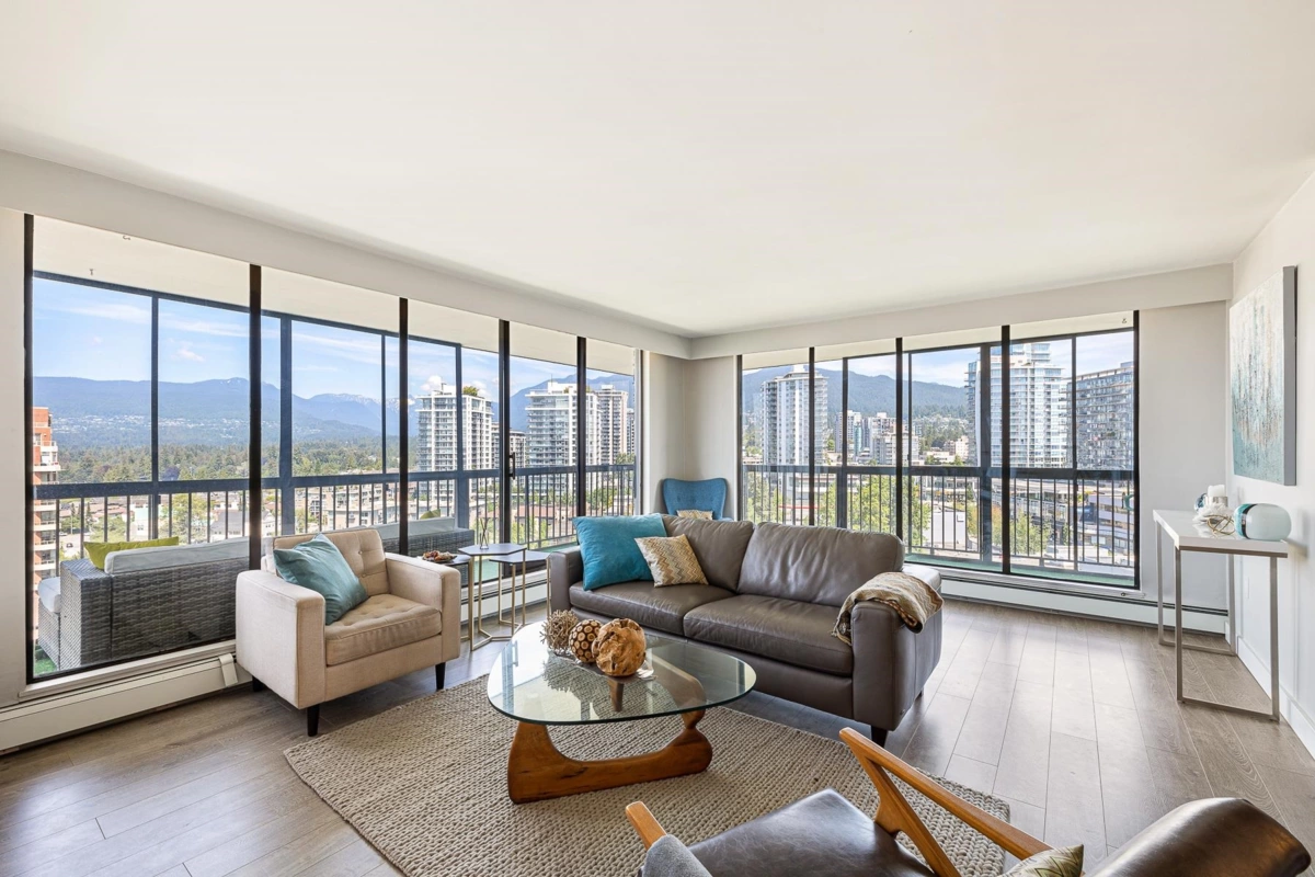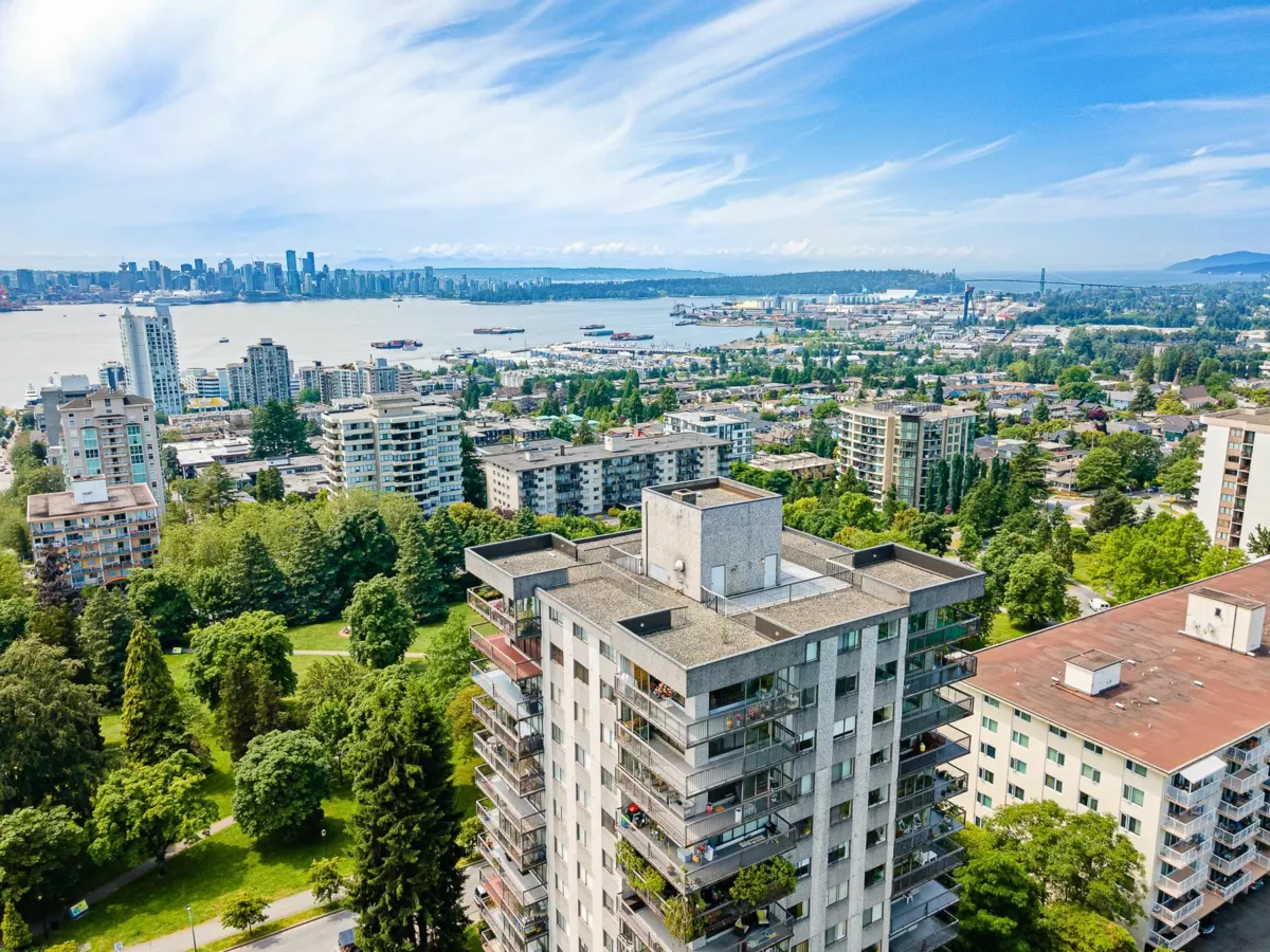 Located just steps from Victoria Park in Central Lonsdale, this beautifully renovated Penthouse Property has unbelievable views of the Ocean, Lions Gate Bridge, Downtown Vancouver, and the North Shore Mountains. With Floor to Ceiling windows in the living room and a remarkable wrap-around patio, this home truly defines indoor/outdoor living. With almost 960 Square Feet of indoor living space, 2 bedrooms, 1.5 Bathrooms, and an open concept layout, this home is an entertainer's dream. Only a few minute's walk to some of North Vancouver's best restaurants, shops, grocery stores, and more. 1 Parking and 1 Storage Locker.