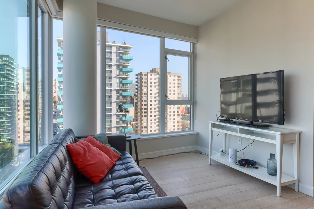 Average size of families in the area adjacent to home for sale 1602 1221 Bidwell Street is 2.2. This is Low number in comparison to the whole region. Percent of families with children near by the Real Estate Listing - MLS® R3032318 is 20% and it is Low. % of Married or living common law is around 43.5% and it is Low.