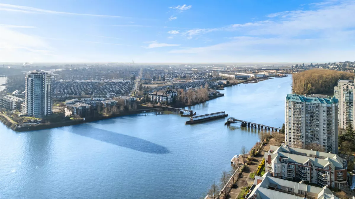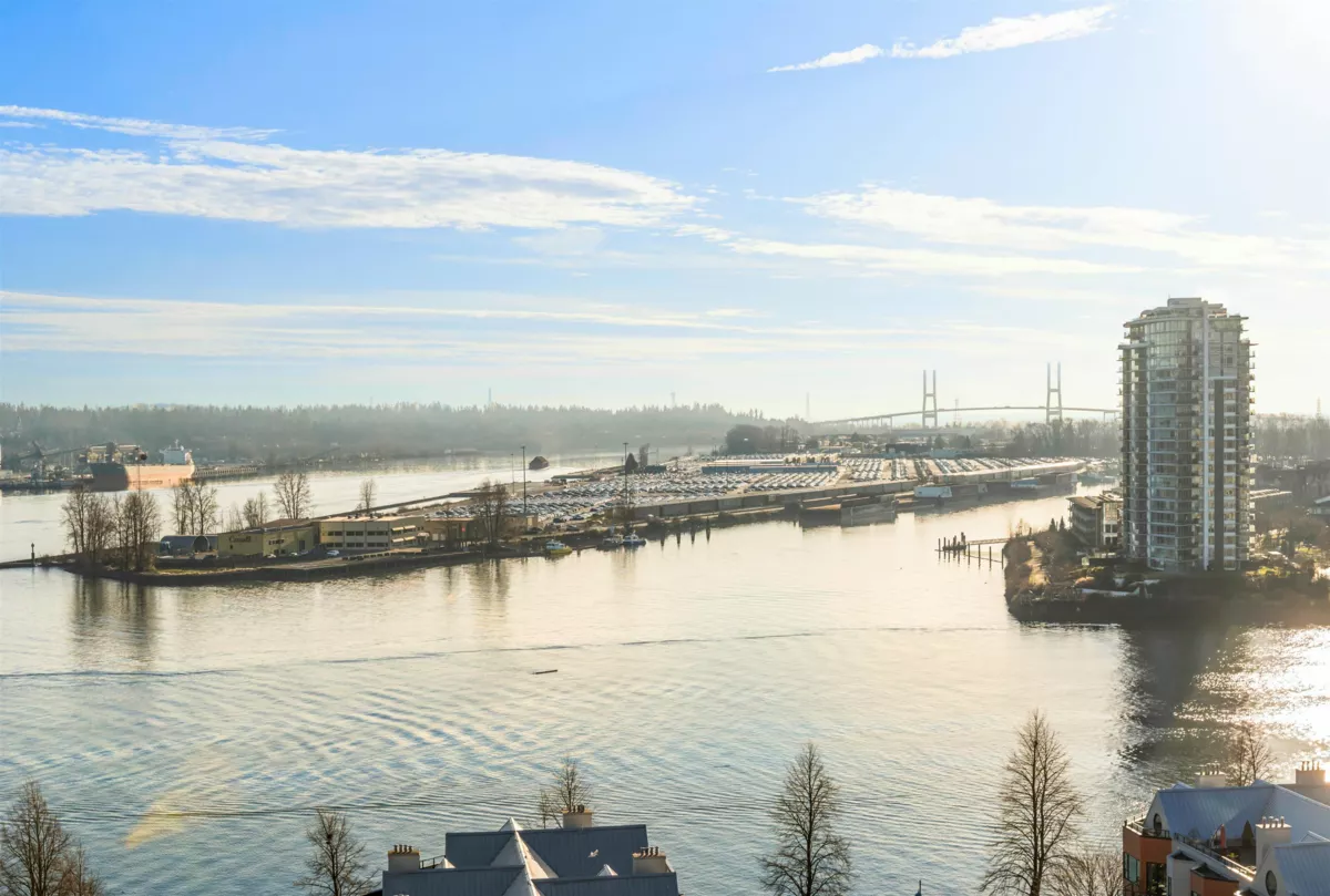 Welcome to Anchor Pointe by BOSA, in the heart of the New West Quay. With breathtaking unobstructed River Views from every room, this 2 bedroom residence is a true gem! With almost 1300sf of indoor and outdoor living, this bright and airy residence offers the best floorplan in the bulding! Enjoy your gas fireplace for cozy nights in, or your sundeck to BBQ while entertaining. Amenities include: exercise facility, sauna & club house. Proactive strata with high CRF, updated piping & upgraded elevators. INCLUDES: Parking & Storage. With proximity to Pier Park, Fraser River Market, the Boardwalk, Skytrain and Downtown New West Restaurants & Shops, an effortless lifestyle awaits! MUST SEE VIRTUAL TOUR!