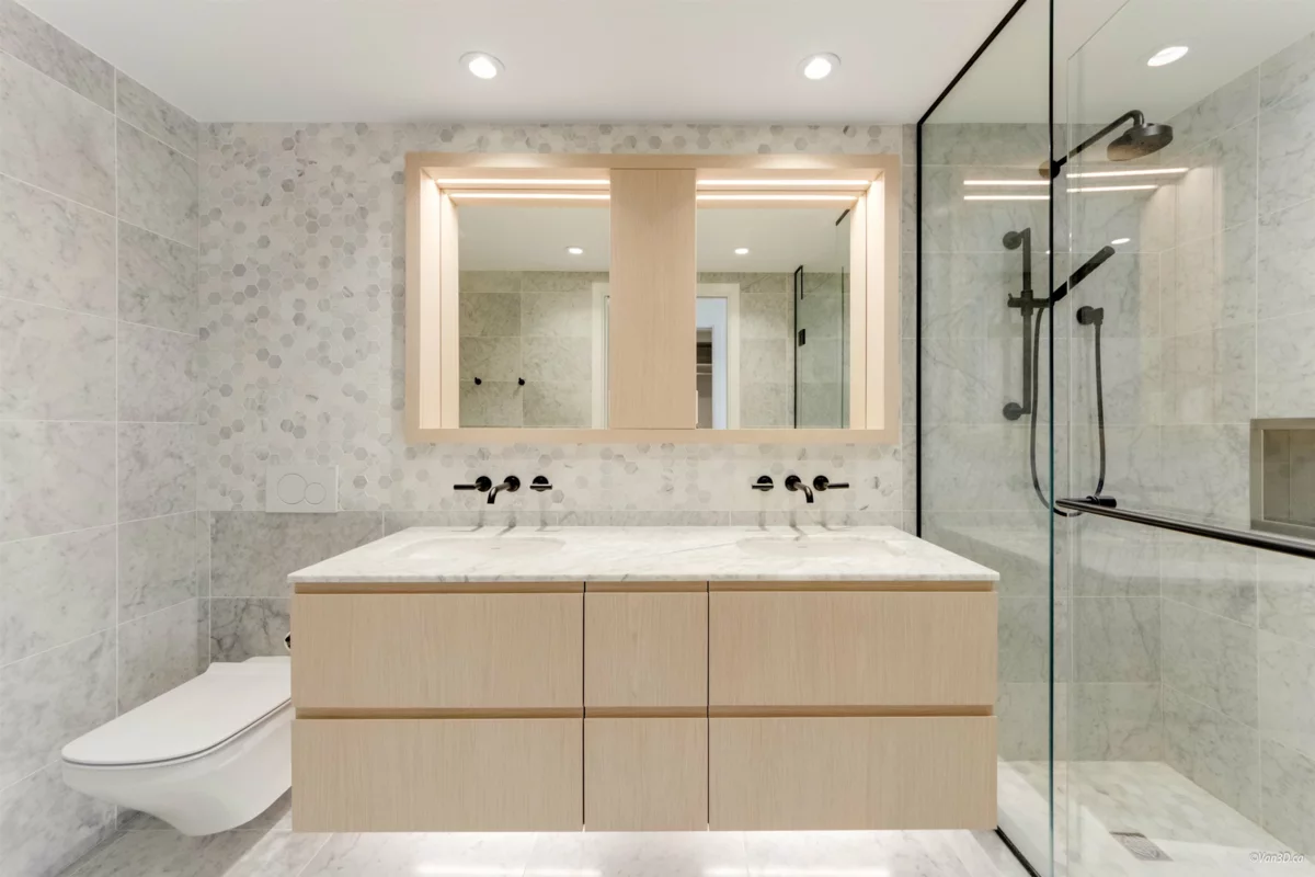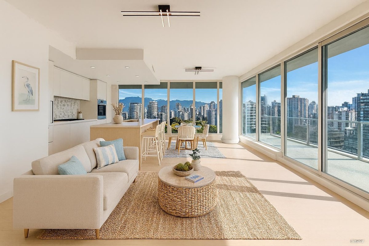 Incredible Views - at Mirabel by Marcon! This 2 bed, 2 bath NE corner home boasts floor-to-ceiling windows with panoramic ocean, city & North Shore mountain views plus a 200sf balcony w/ gas hookup. Gourmet kitchen features Armony Cucine cabinetry, Wolf gas cooktop + wall oven, and Sub-Zero fridge. Luxurious ensuite with Italian marble & double vanity. A/C, high-efficiency heating, and a versatile 2nd bedroom with custom built-ins, desk & Murphy bed ($15,000). Comes with 2 side-by-side parking & 1 Locker. Steps to parks, seawall & shops. Unbeatable West End location only steps to shopping, parks & seawall. *Some photos may be virtually staged.* OPEN HOUSE SATURDAY JAN 24 (2-4PM)