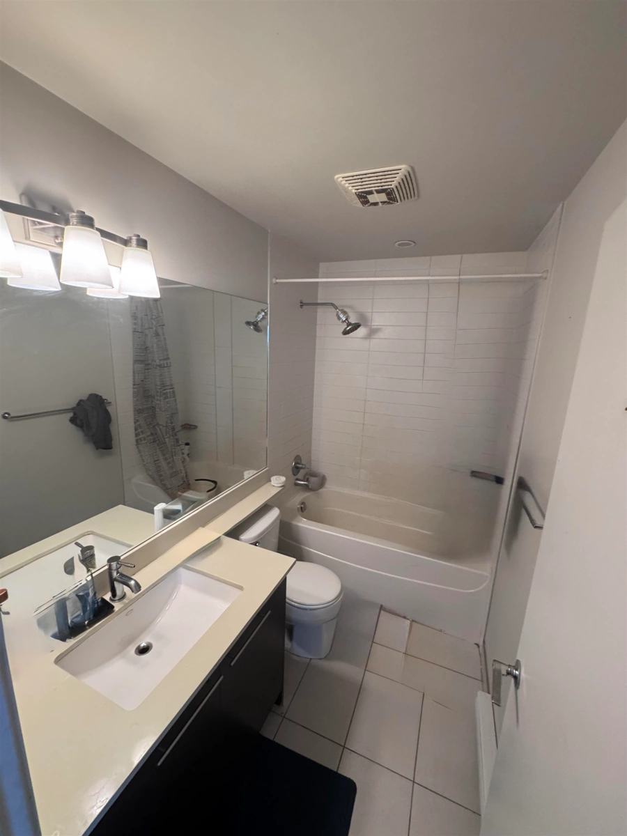 D’corize concrete Hi-Rise at rapidly growing Surrey city center. South-East Corner breathtaking panoramic mountain and city view. 9' high ceilings. Perfect and convenient location in the heart of City Center prime area while enjoying quietness and family activities at the nearby parks. Bus stop right at building front entrance and Surrey Central skytrain station is conveniently located at two buildings away. Central city mall is 5 mins walk. Next to new Surrey city hall, new library, SFU campus, central city mall, T&T, Walmart, etc. Excellent investment property or affordable budget-friendly spacious 2-bedroom & 2-bath condo with almost 920 s.f. for family use. Includes 1 parking and 1 locker.