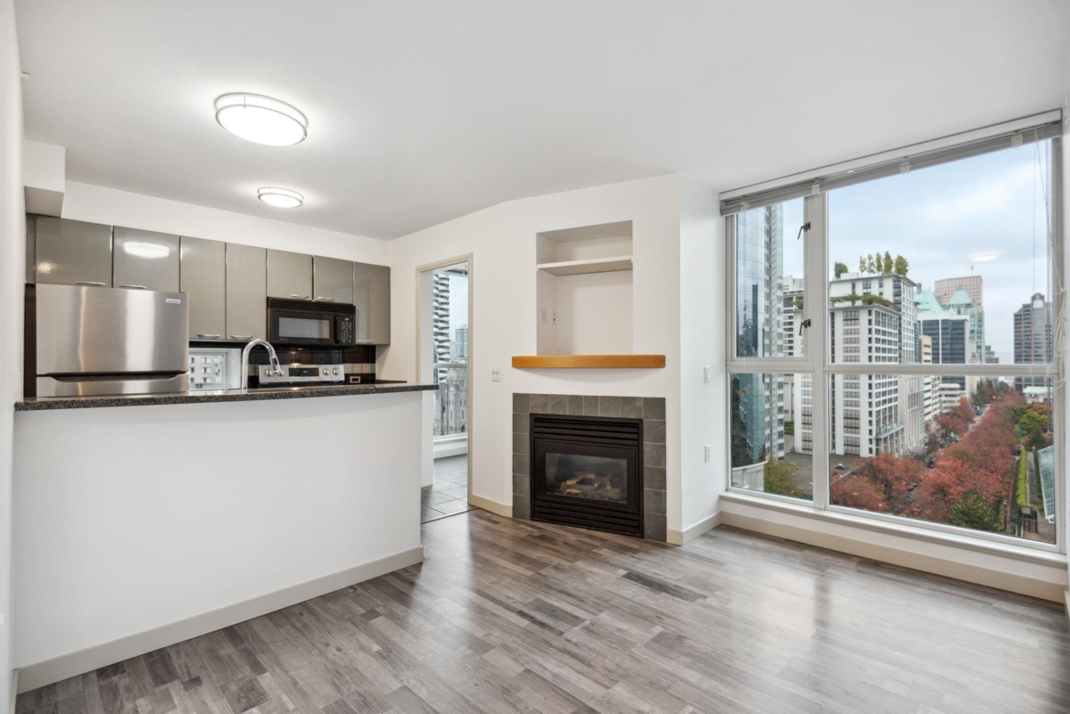 Welcome to this stunning 1-bedroom, 570 sqft condo located in the heart of downtown Vancouver! This modern unit boasts an open floor plan with an abundance of natural light and protected city views. The spacious bedroom includes large floor to ceiling windows, while the den offers a perfect home office setup, dining room or reading nook. A flex space provides extra in-suite storage. Enjoy premium finishes, stainless steel appliances, and in-suite laundry. Walking distance to Yaletown, English Bay & shopping on Robson & Alberni St, this location offers the ultimate urban lifestyle. Includes a PRIVATE gated parking garage & storage locker. Pool & gym access @ Sheraton Wall Center for a nominal fee. Don’t miss your chance to own this gem in the city! Ready for immediate possession.