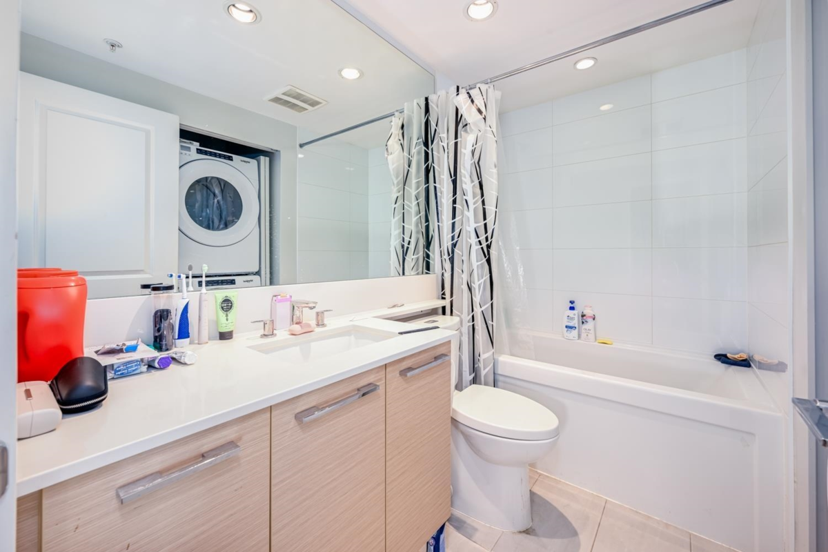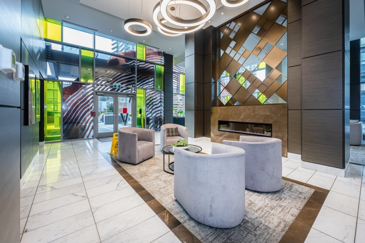 Location! Location! Location! Vittorio by Polygon just steps away from Burnaby's Metrotown Center. This functional Air-conditioned 2BR/2Bath unit boasts unobstructed north shore mountain views from floor-to-ceiling windows. Functional layout separates the 2 BRs. NO one square foot of wasted floor area. GOURMET KITCHEN w/ plenty of cabinet & counter space, top-of-the-line FULL SIZE APPLIANCES incl. GAS stove, built-in microwave, S/S fridge & dishwasher. Enjoy some afternoon tea on the huge balcony while overlooking the breathtaking mountain view. Heating/AC/HOT WATER & GAS INCLUDED in very reasonable strata fee. Amenities including Gym, basketball court, study room, guest suites, kids playground & entertainment lounge.Short WALK to Metrotown, Bonsor Park/Rec Complex, skytrain & more!