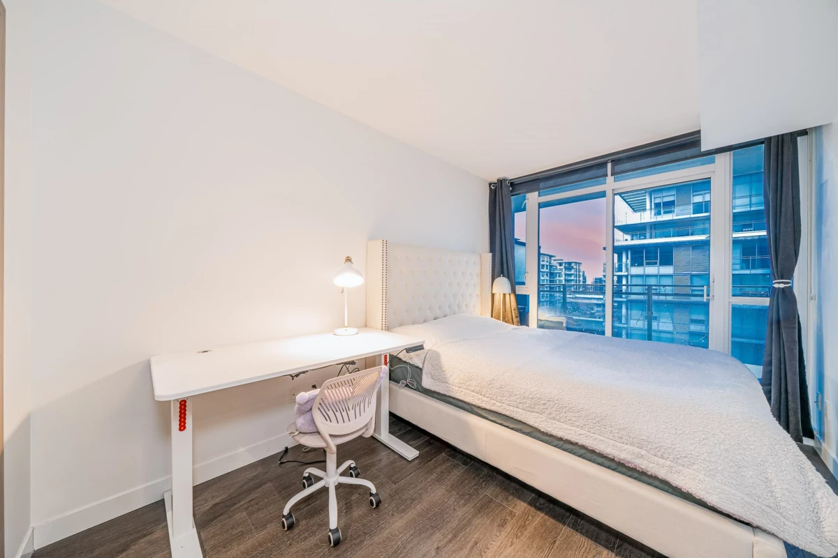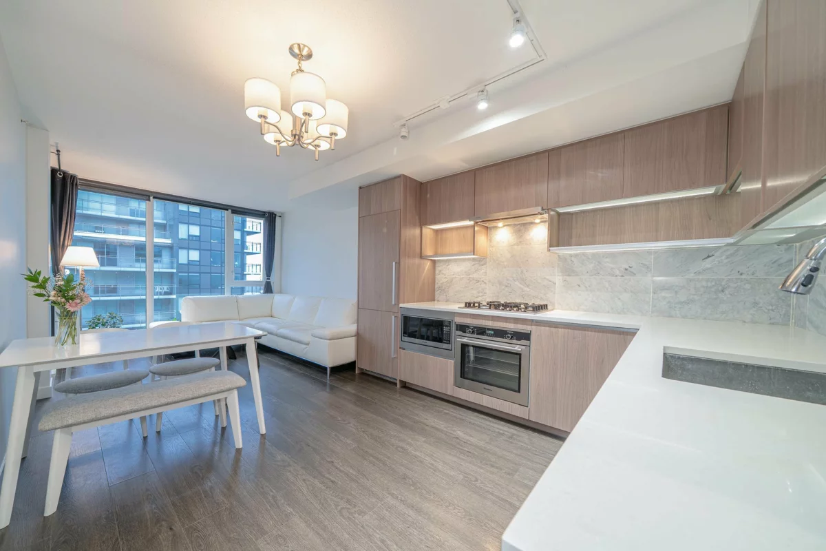 This well-maintained one bedroom and den built by Concord Pacific with open view features central A/C. Excellent living space with balcony. Wide plank floor throughout. Gourmet kitchen with quartz stone countertop and top appliances. ONE parking. Resort style living with concierge, indoor pool, sauna/steam room, fitness Gym, private theater games room, bowling alley, study room and much more. Super central location - Skytrain station, supermarket, Costco, all close by. A rare opportunity to own your home and enjoy comfort, convenience and quality all in one!