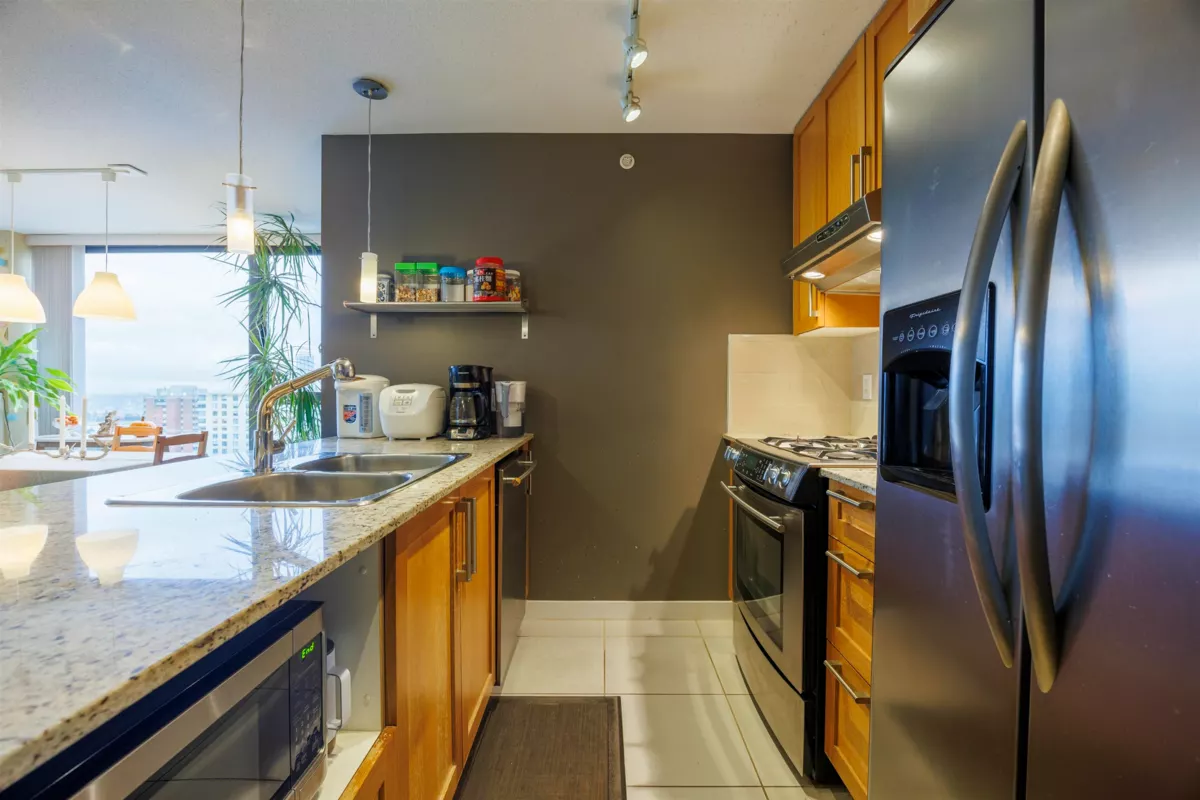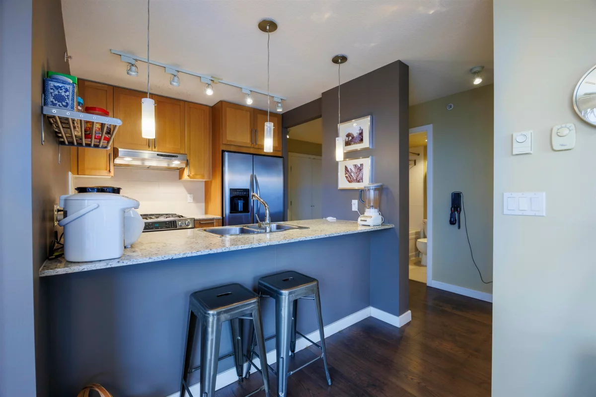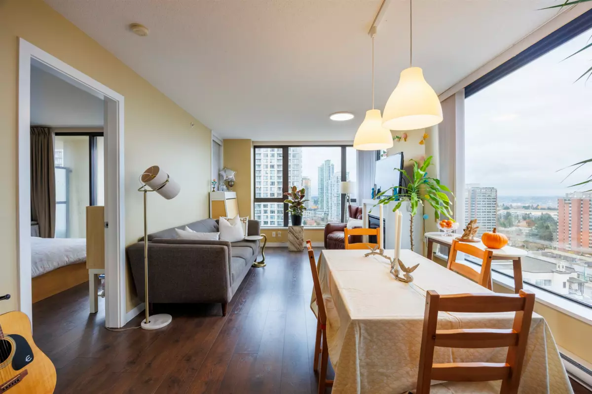 Bright and updated SE-facing corner home at Highgate Village by BOSA. Open concept South east facing corner unit features an extremely rare huge balcony. Enjoy beautiful Mount Baker and city views. Recent renovations include flooring, fresh painting, and more. Comes with 1 parking stalls (near elevator) and 1 locker. Amenities include gym, hot tub, and steam room. Steps to Highgate Village Shopping, community centre, library, restaurants, transit, and a short walk to Edmonds SkyTrain. Move-in ready!
