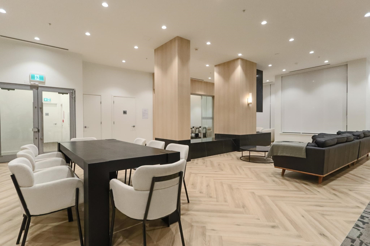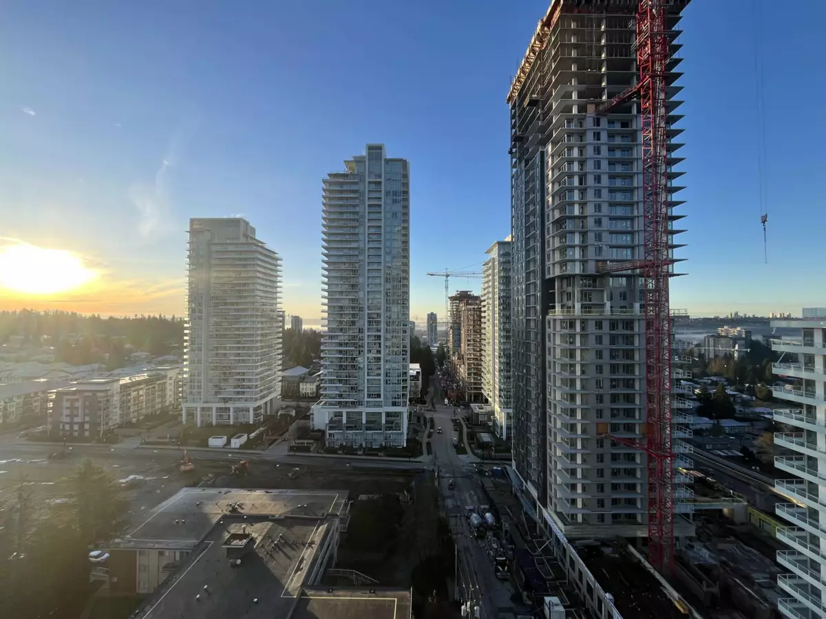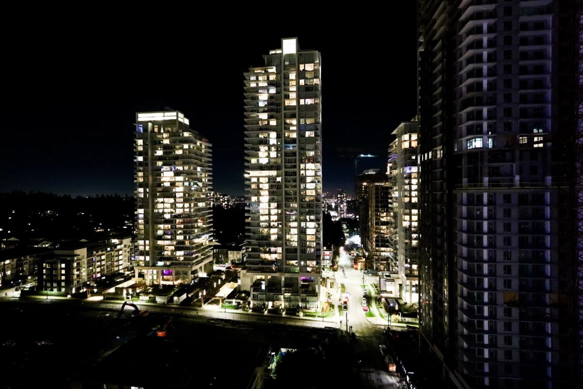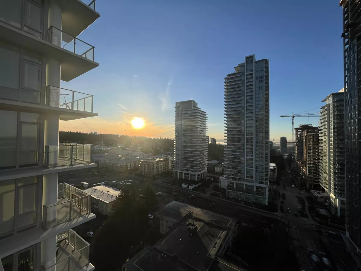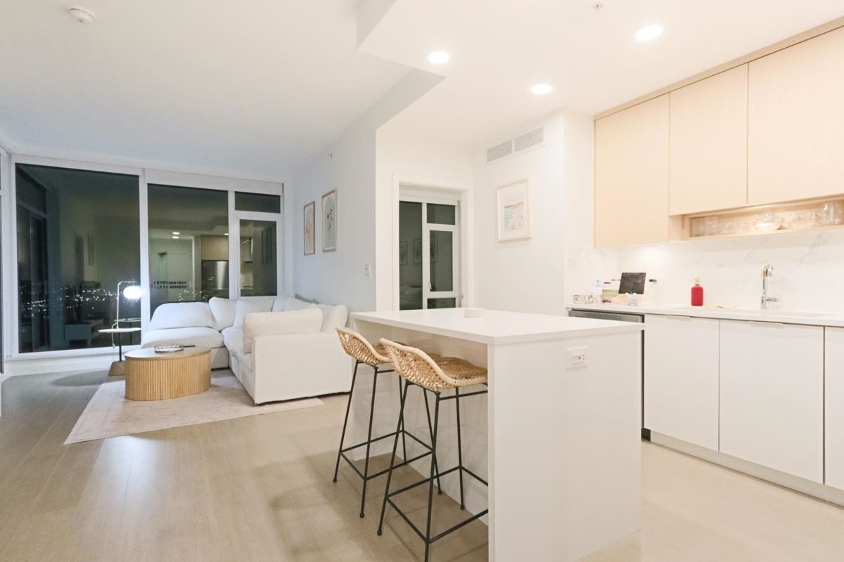 Situated in LedMac's boutique Precidia tower, this bright 2-bedroom, 2-bath corner home offers 849 sq ft of modern living in the heart of Burquitlam. Designed with a spacious open layout, the unit features 9-foot ceilings, floor-to-ceiling windows with sweeping views, and air conditioning for year-round comfort. The kitchen is equipped with full-size stainless steel appliances, a gas cooktop, and a functional island. Step outside to an impressive 205 sq ft oversized balcony-ideal for relaxing or entertaining. Building amenities include a well-appointed gym, fireside lounge, guest suites, and a landscaped outdoor terrace with cabanas and shared dining areas. Pet and rental friendly, and just steps to the SkyTrain with shops, dining, and everyday conveniences nearby. Includes 1 parking stall