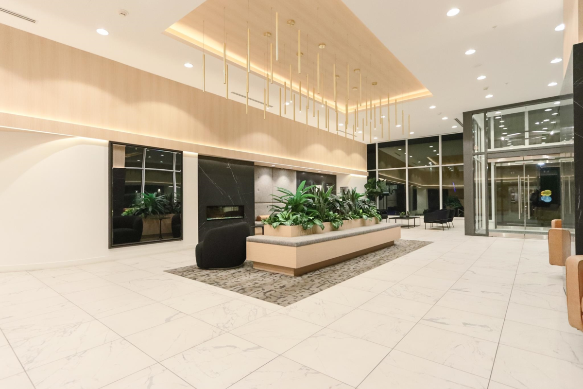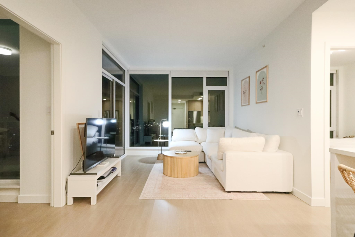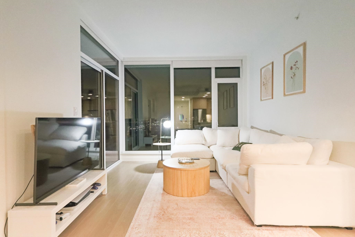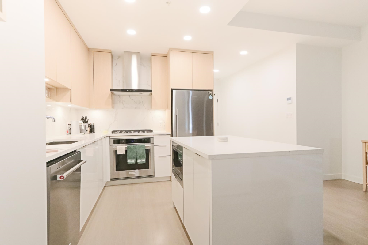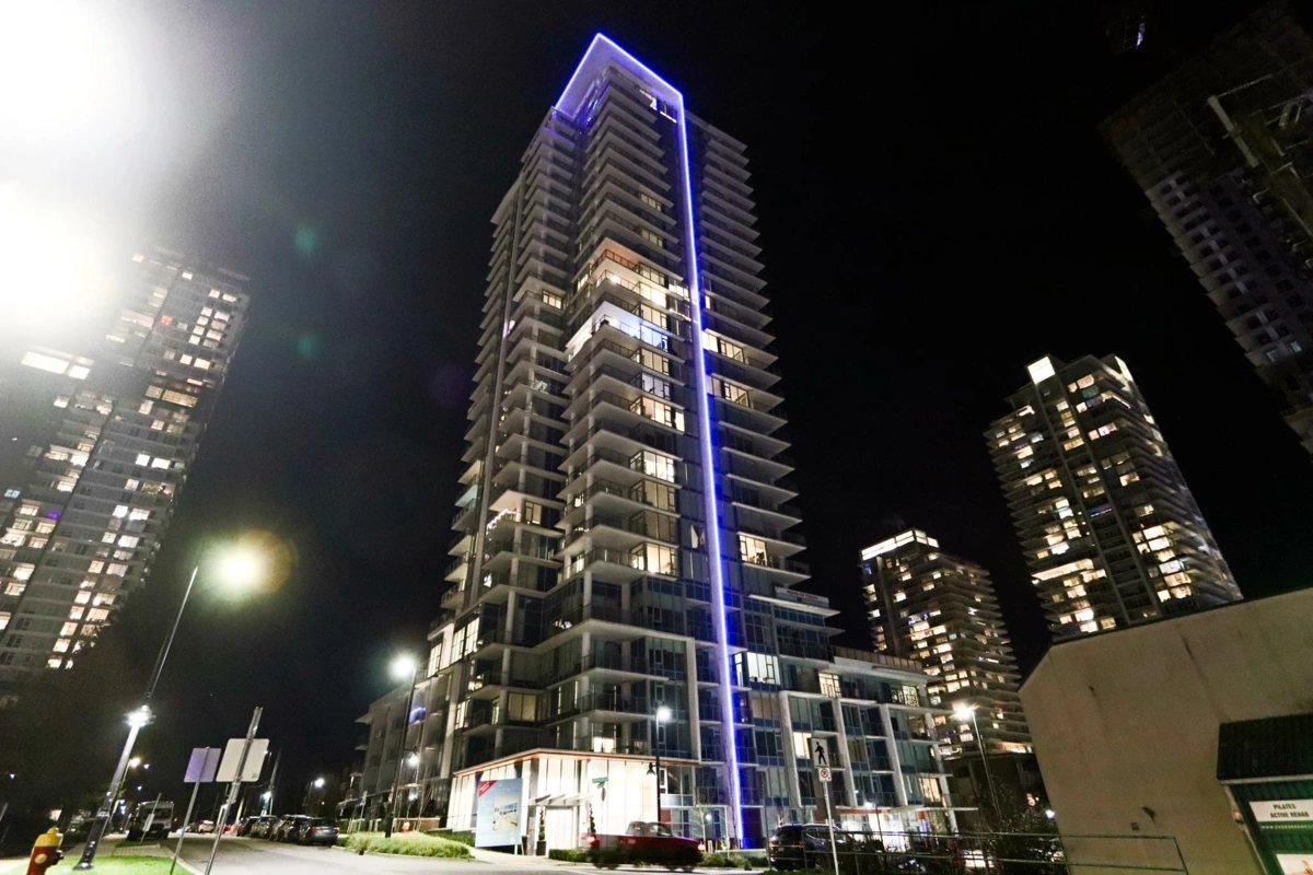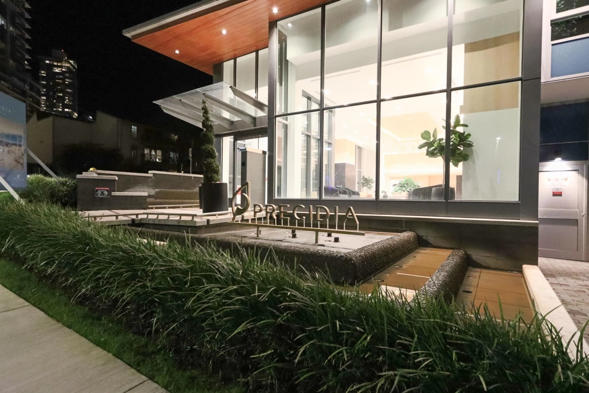 Situated in LedMac's boutique Precidia tower, this bright 2-bedroom, 2-bath corner home offers 849 sq ft of modern living in the heart of Burquitlam. Designed with a spacious open layout, the unit features 9-foot ceilings, floor-to-ceiling windows with sweeping views, and air conditioning for year-round comfort. The kitchen is equipped with full-size stainless steel appliances, a gas cooktop, and a functional island. Step outside to an impressive 205 sq ft oversized balcony-ideal for relaxing or entertaining. Building amenities include a well-appointed gym, fireside lounge, guest suites, and a landscaped outdoor terrace with cabanas and shared dining areas. Pet and rental friendly, and just steps to the SkyTrain with shops, dining, and everyday conveniences nearby. Includes 1 parking stall
