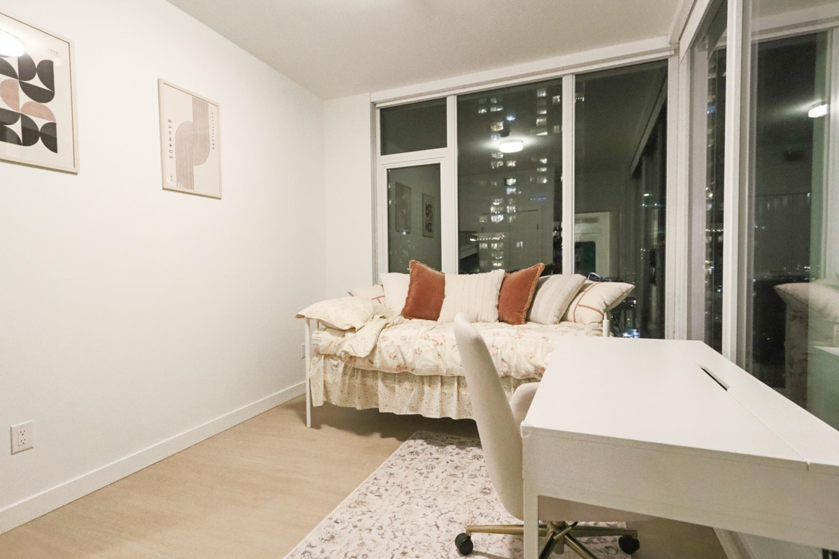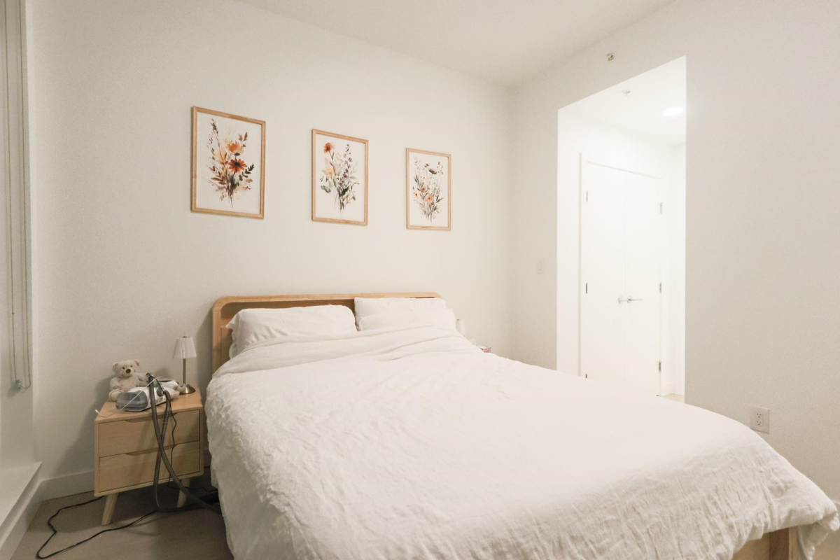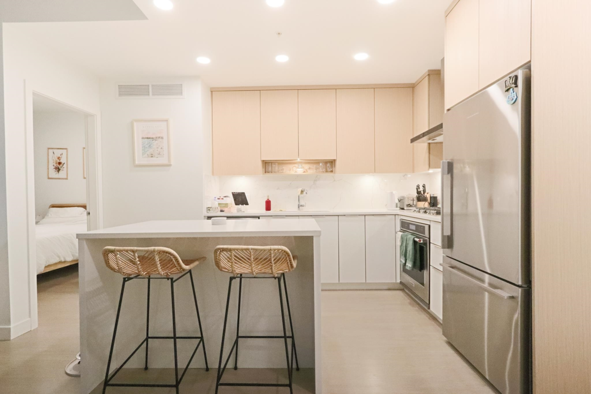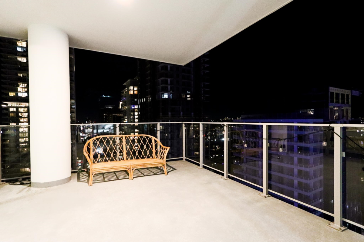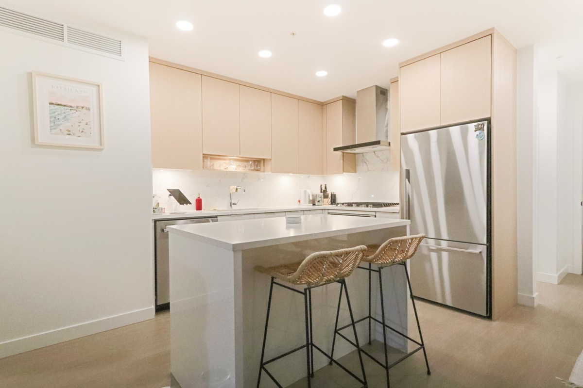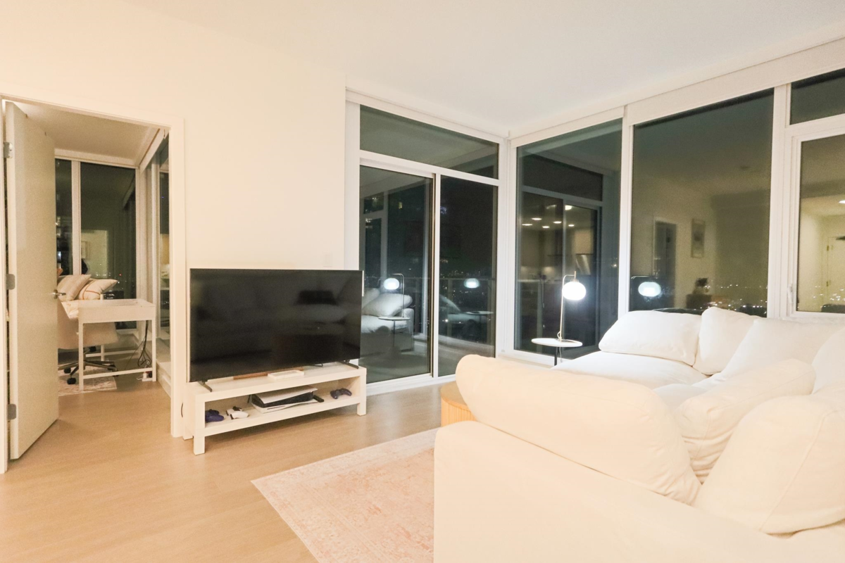 Situated in LedMac's boutique Precidia tower, this bright 2-bedroom, 2-bath corner home offers 849 sq ft of modern living in the heart of Burquitlam. Designed with a spacious open layout, the unit features 9-foot ceilings, floor-to-ceiling windows with sweeping views, and air conditioning for year-round comfort. The kitchen is equipped with full-size stainless steel appliances, a gas cooktop, and a functional island. Step outside to an impressive 205 sq ft oversized balcony-ideal for relaxing or entertaining. Building amenities include a well-appointed gym, fireside lounge, guest suites, and a landscaped outdoor terrace with cabanas and shared dining areas. Pet and rental friendly, and just steps to the SkyTrain with shops, dining, and everyday conveniences nearby. Includes 1 parking stall