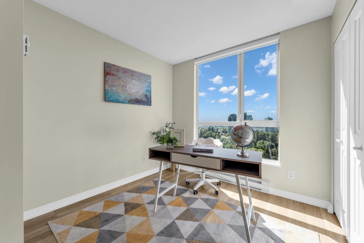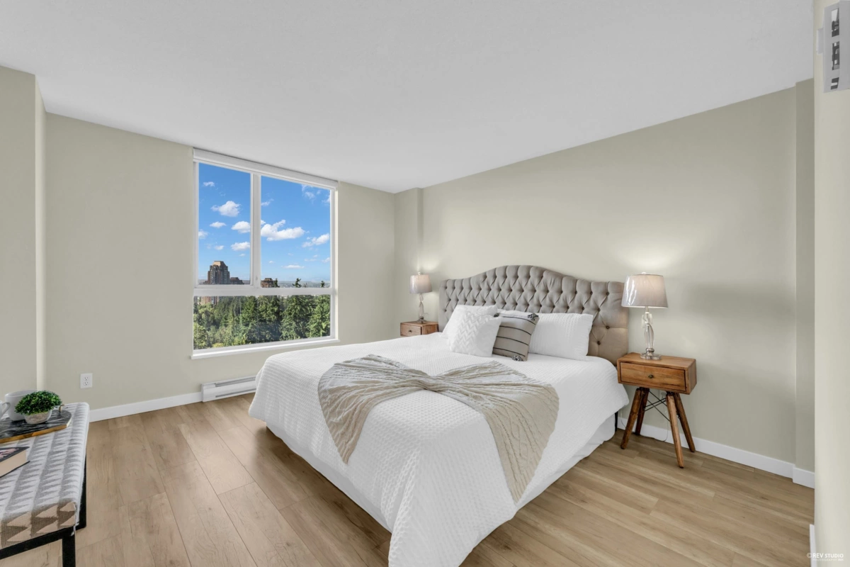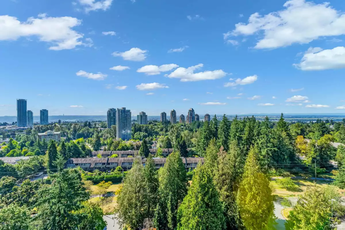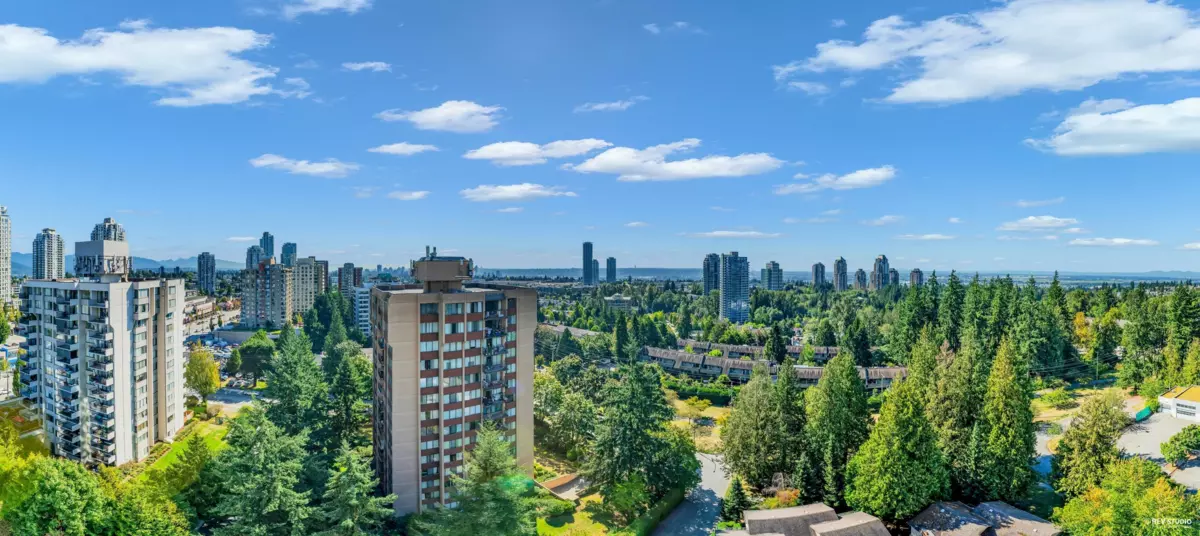 Welcome to City Club on the Park! Rarely available SE corner home on the 16th floor offering 1,500 sq. ft., 3 beds, and 2.5 baths with a bright, spacious layout. Fully updated with new paint, flooring, lighting, kitchen & bathrooms, cabinets, balcony flooring, and window coverings-move-in ready! Enjoy two private balconies with river, and city view. Comes with 2 parkings + 2 lockers. Amenities include gym, party room & bike storage. Prime Highgate location, steps to SkyTrain, shopping, parks & community centre. School catchments: Taylor Park Elementary & Byrne Creek Community School. Pet & rental friendly.
