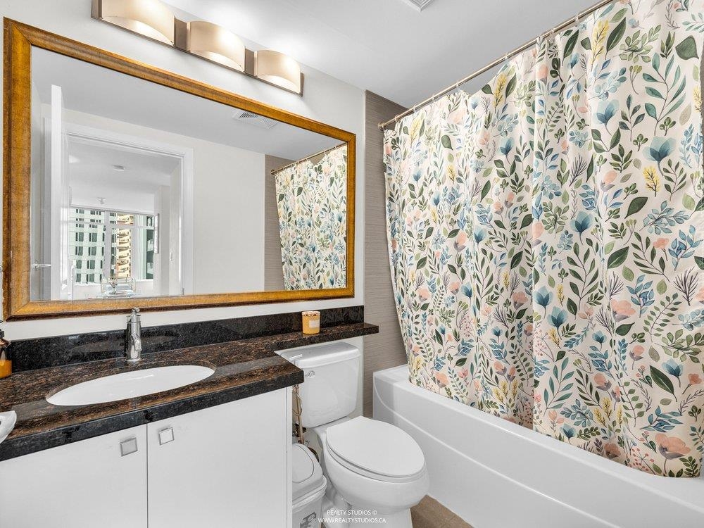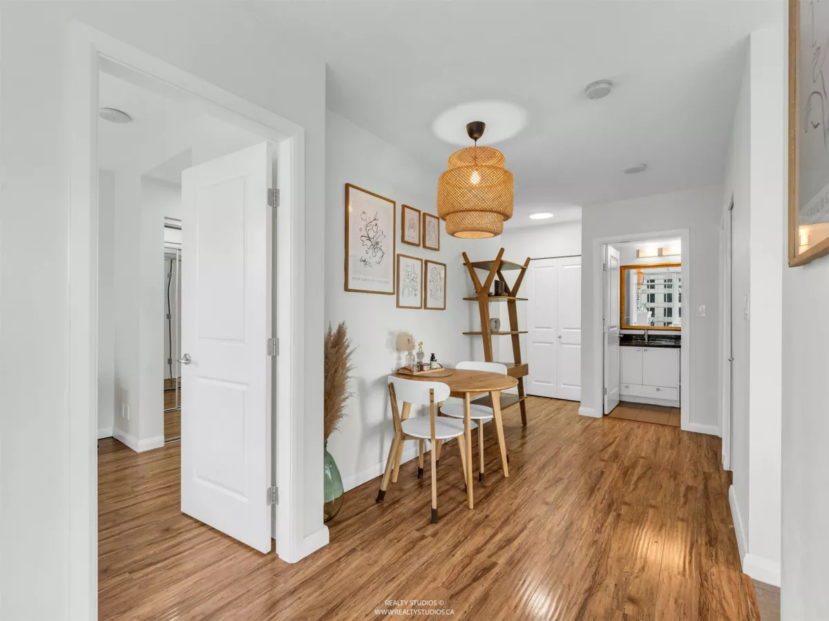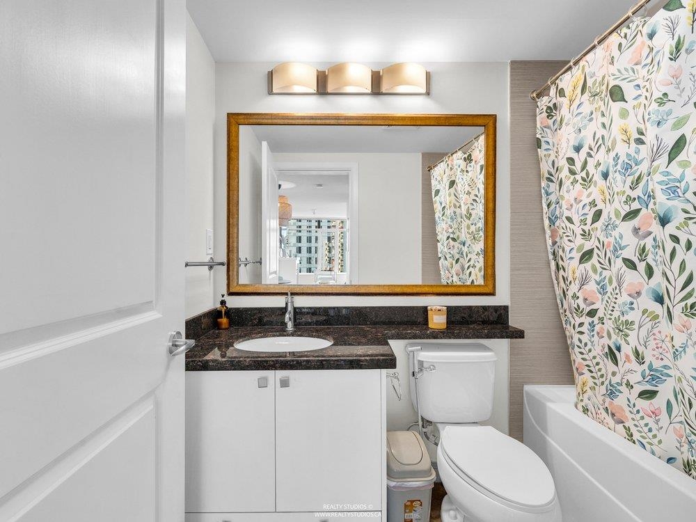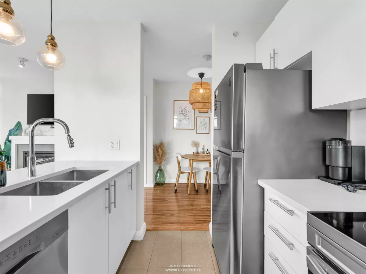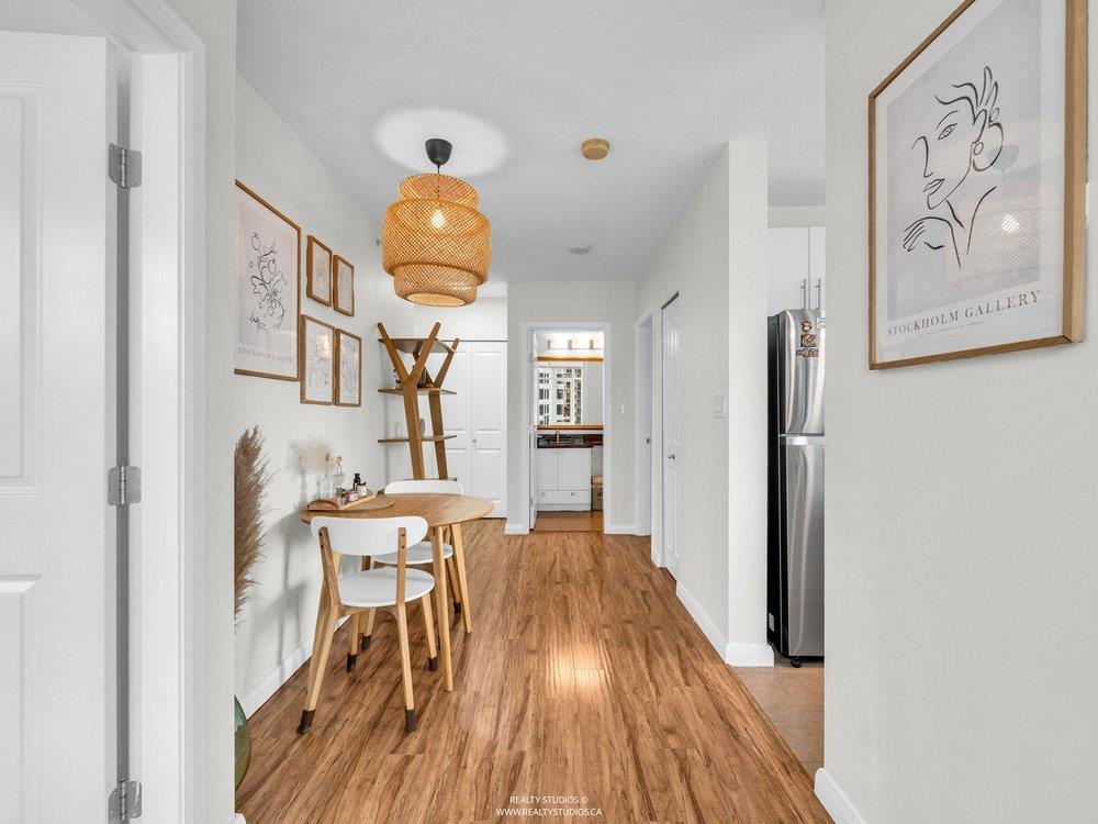 High up on the 16th floor, this is city living with breathing room. Unit 1608 is a well-laid-out 2-bed, 2-bath home with sweeping views and real light. Floor-to-ceiling windows frame the river, skyline, and sunsets that hit different after a long day. The kitchen is streamlined and functional, the living space flexible, and the bedrooms properly separated—well placed for privacy and ideal for guests, work-from-home, or roommates. Steps to SkyTrain, the Quay, shops, dining, and the boardwalk. Solid building. Smart location. Calm above the noise. Best experienced in person.