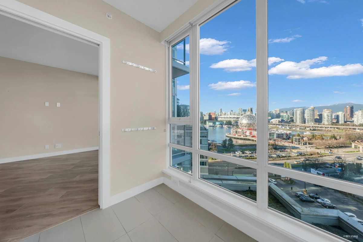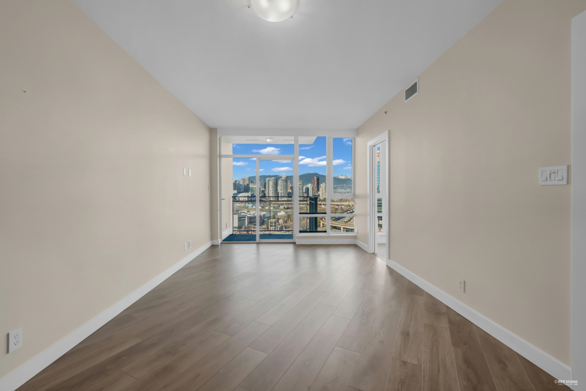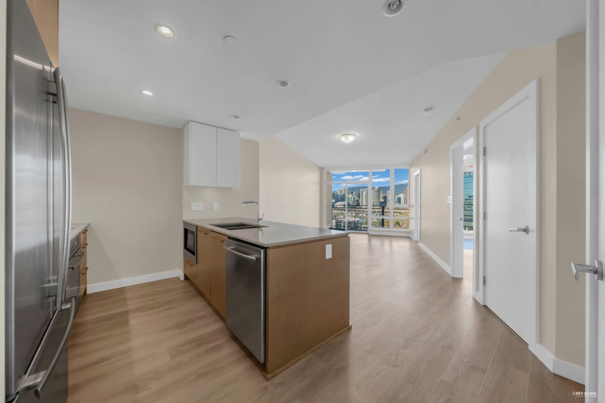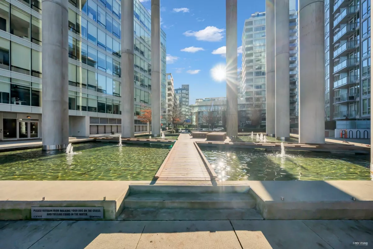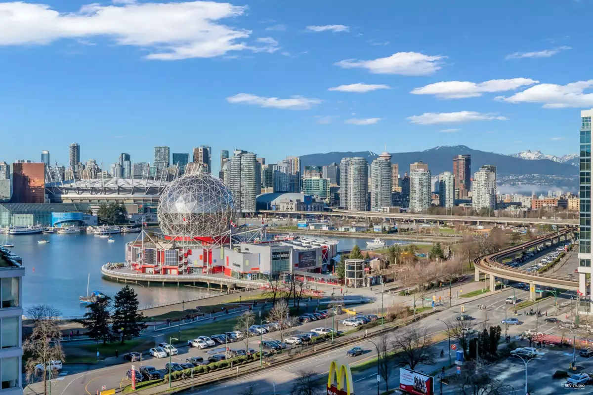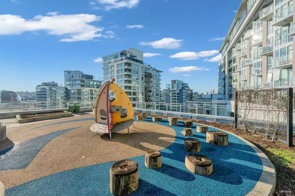 Welcome to Central at Olympic Village by Onni, a highly sought-after concrete building in one of Vancouver's most vibrant waterfront communities. This corner 1-bedroom + large den/solarium home offers expansive north-west facing city, mountain, and False Creek views, with abundant natural light throughout. The thoughtfully designed layout features a gourmet kitchen with stainless steel appliances, gas cooking, and a breakfast bar-perfect for entertaining. The spacious living area opens to a BBQ-friendly balcony, ideal for enjoying the stunning skyline. The bedroom is well-sized with a cheater ensuite showcasing a separate soaker tub and walk-in shower. Additional highlights include a flex/storage area, in-suite laundry, and forced-air heating & cooling with heat pump. Must see!