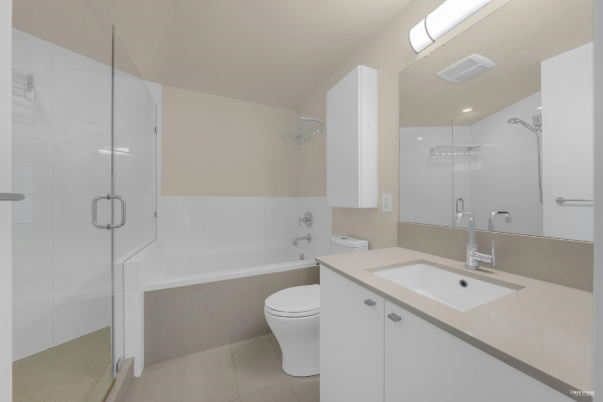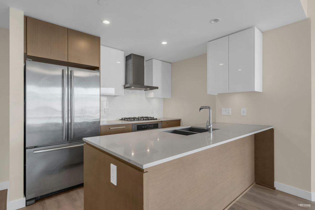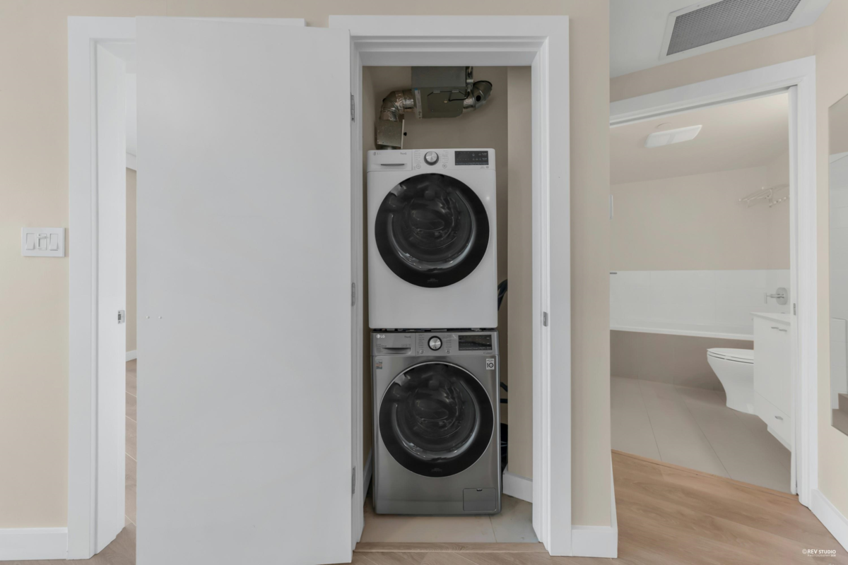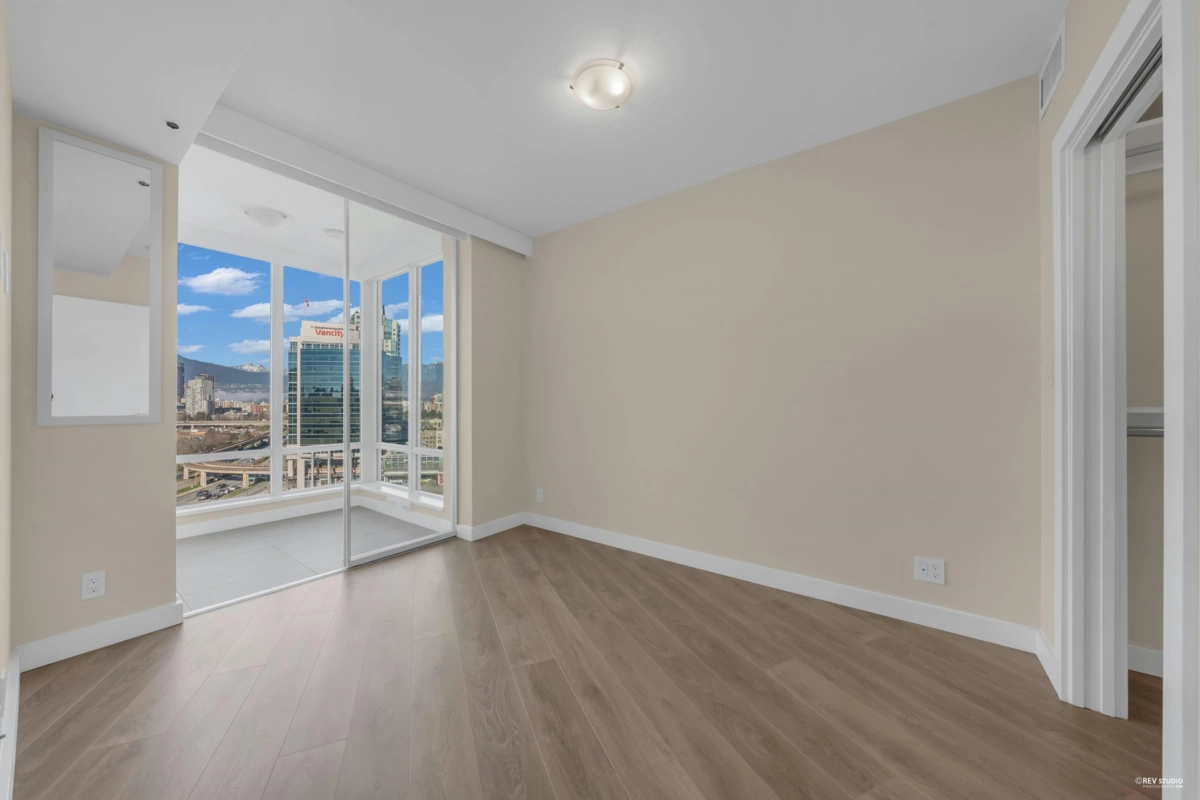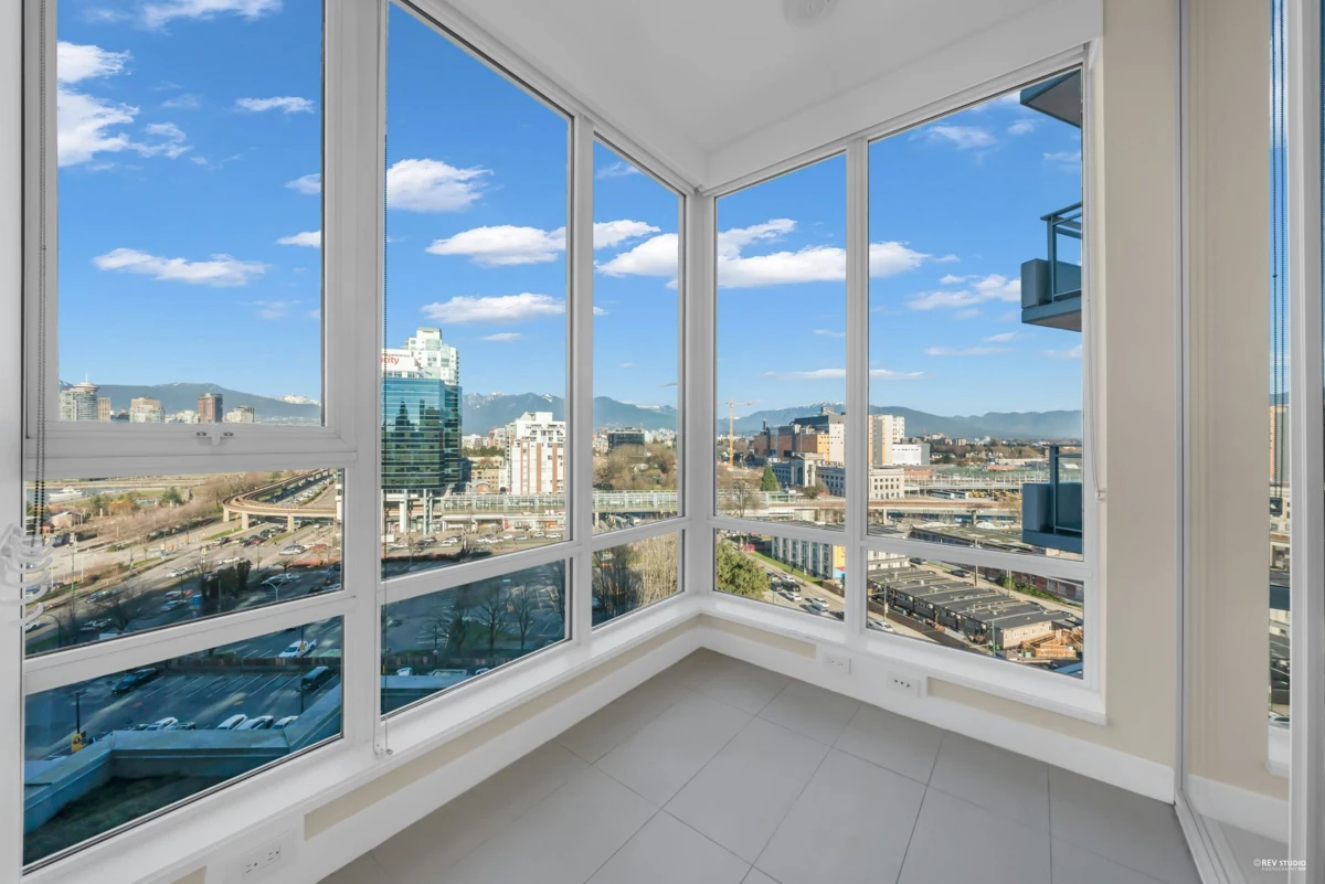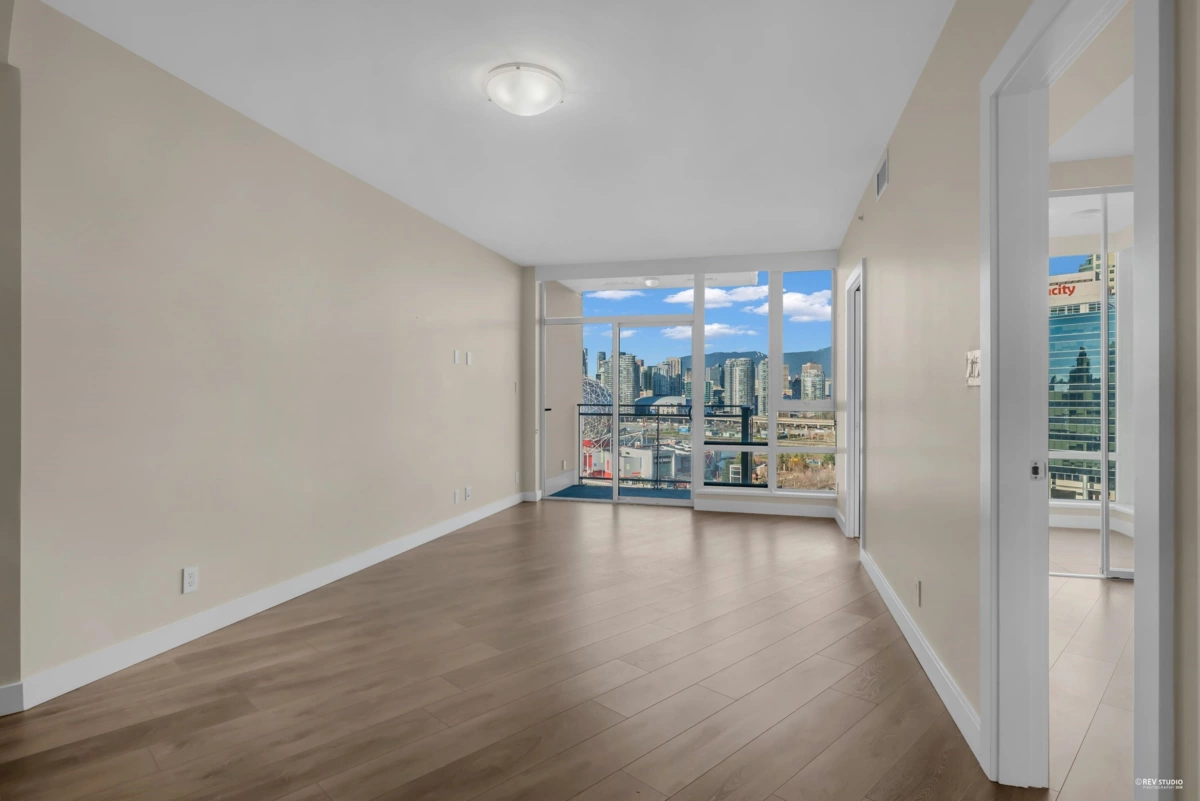 Welcome to Central at Olympic Village by Onni, a highly sought-after concrete building in one of Vancouver's most vibrant waterfront communities. This corner 1-bedroom + large den/solarium home offers expansive north-west facing city, mountain, and False Creek views, with abundant natural light throughout. The thoughtfully designed layout features a gourmet kitchen with stainless steel appliances, gas cooking, and a breakfast bar-perfect for entertaining. The spacious living area opens to a BBQ-friendly balcony, ideal for enjoying the stunning skyline. The bedroom is well-sized with a cheater ensuite showcasing a separate soaker tub and walk-in shower. Additional highlights include a flex/storage area, in-suite laundry, and forced-air heating & cooling with heat pump. Must see!
