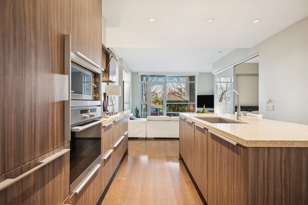 Unique OLYMPIC VILLAGE 1 BEDROOM TOWNHOUSE with unobstructed park views, Enjoy waterfront lifestyle in this AIR CONDITIONED home featuring 9' ceilings, in suite radiant heating & cooling, Miele high-end appliances. Amenities include exclusive access to the Gold Medal Club offering indoor pool, hot tub, sauna & steam rooms, gym, yoga room. Steps to Olympic Village shopping, Canada Line & Expo Skytrain Station, bus stops, Aquabus. 1 underground parking included. OPEN HOUSE SAT/SUN JAN 3/4, 2-4 PM.
