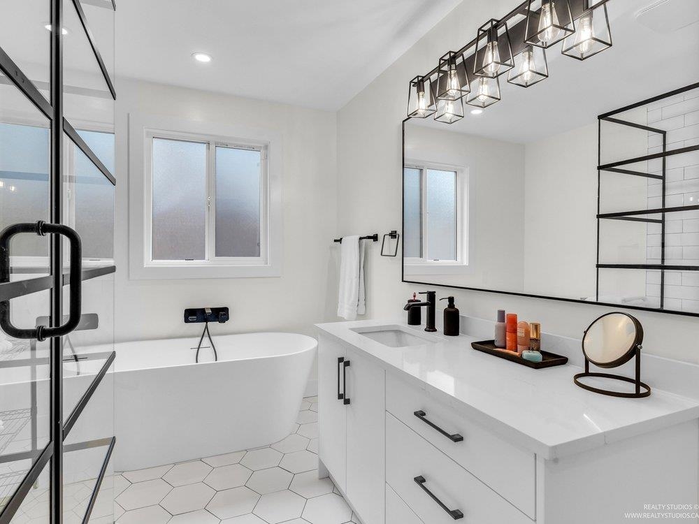 Beach Grove Beauty-PRIME LOCATION! This 2 story, 5 bedroom SUBSTANTIALLY RENOVATED, West Coast Contemporary home is flooded with natural light, offers an extraordinary floor plan & is in highly sought after Beach Grove; just a stroll to the beach & 1 block to Beach Grove School! Offering Air conditioning, large principal rooms, a sunny west facing living rm w gas f/pl & vaulted ceilings, an open concept kitchen & dining area w new cabinets, white quartz counters, st. steel appliances w chef's gas stovetop+ wall oven/warming drawer, a huge solarium, spacious family rm w 2nd statement gas f/p, 3 spa inspired washrooms, newer furnace & h/w on demand, new flooring & baseboards, lighting, paint, air con, windows, roof, doors, in and out, closet systems, stairwell/banister, laundry rm & more!