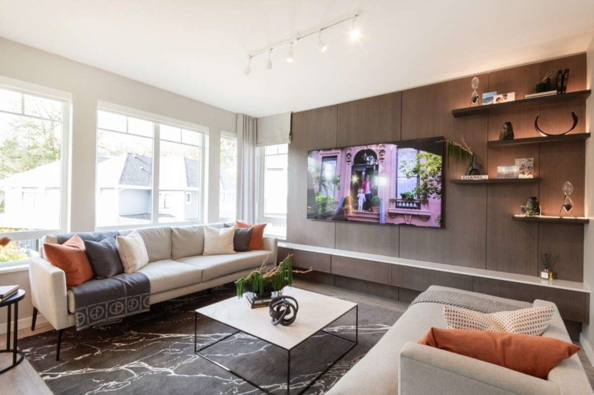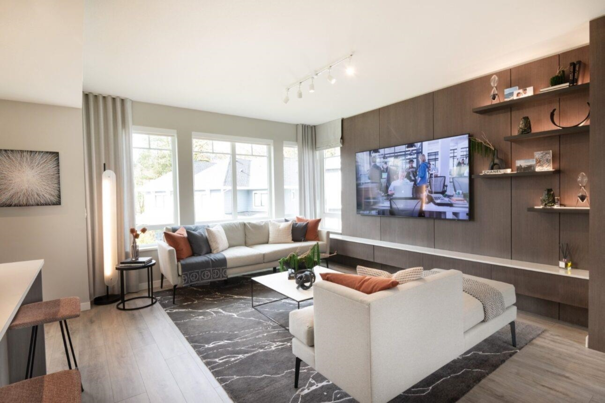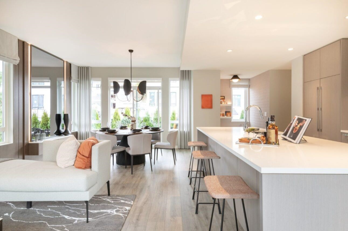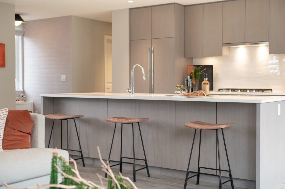 This 3 bed 2.5 bath home at Polygon's Partington Creek is part of a special collection of Craftsman-style townhomes in Coquitlam's Burke Mountain. Nestled in nature, this 1,455 sq. ft. home features a bright open main floor with expansive windows, wood laminate flooring, and a patio outside the dining area. This home's inspiring kitchen boasts sleek appliances, engineered stone countertops and full-height marble tile backsplash. Upstairs, the luxurious master ensuite features a European-style thermostatic shower with a built-in bench. Enjoy the convenience of air conditioning and level 2 EV charging. Plus, residents enjoy exclusive access to the Creekside Club! Visit our sales office at 3674 Victoria Drive to learn more.