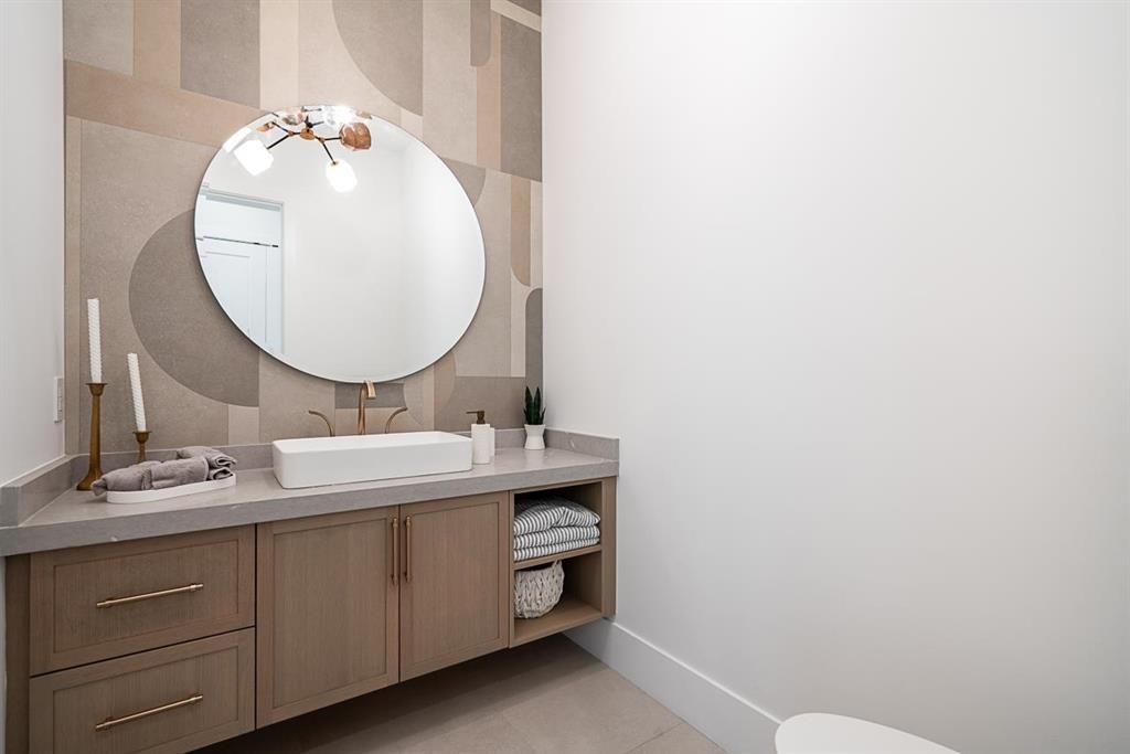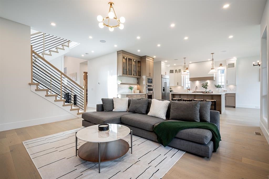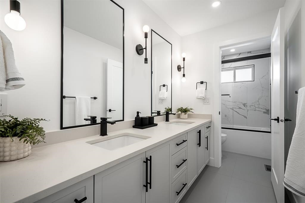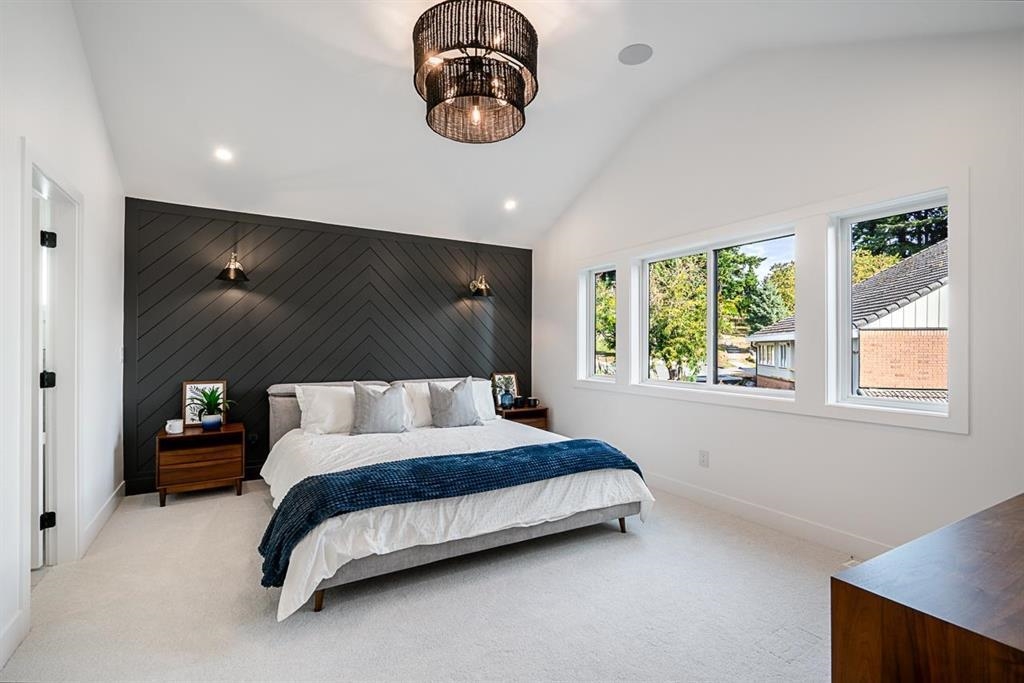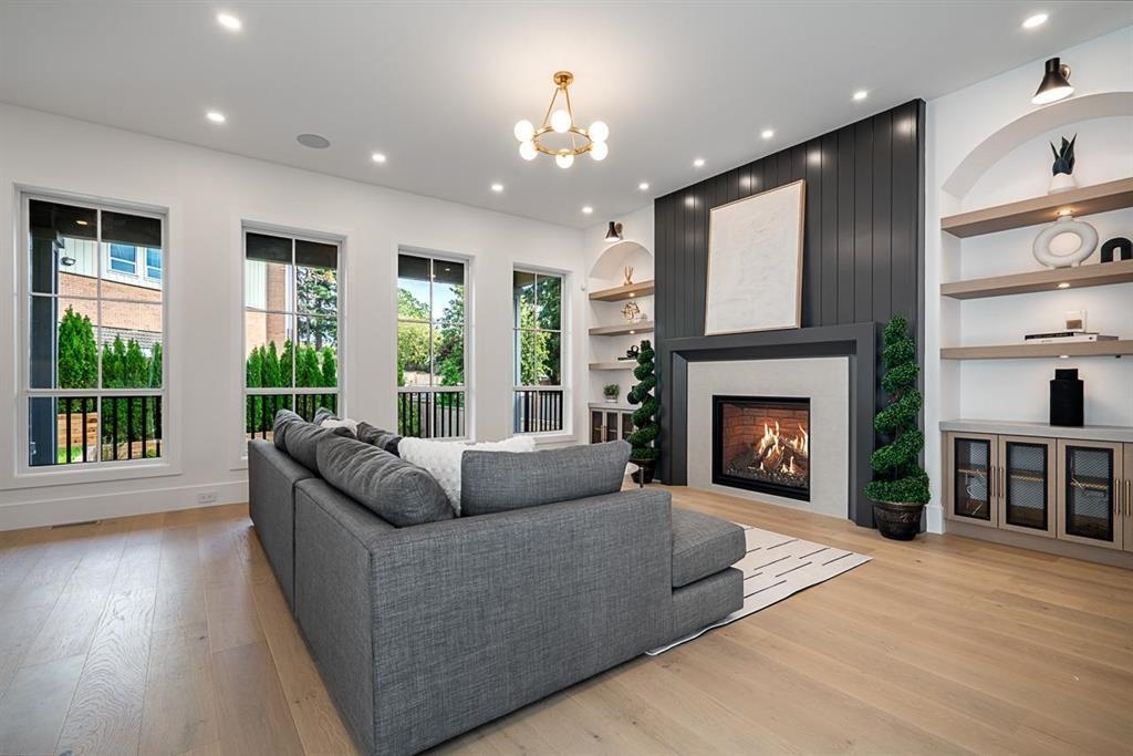 This breathtaking designer home blends Craftsman architecture with Farmhouse elegance, offering 5,560 sq ft of luxurious living in sought-after West Cloverdale. Bright, airy interiors feature expansive windows with automatic blinds, exquisite millwork, and premium flooring. The showstopping great room centers around a stunning fireplace and a custom two-tone white oak kitchen with top-tier appliances, a spice kitchen, and walk-in pantry. Upstairs boasts 4 vaulted bedrooms including a dreamy primary suite, plus a main-level bedroom. The lower level features a 2-bed legal suite, media room with wet bar, 3-pc bath, storage, and mudroom. Enjoy central A/C, smart home features, and the 2/5/10 New Home Warranty—a perfect blend of sophistication, comfort, and functionality.