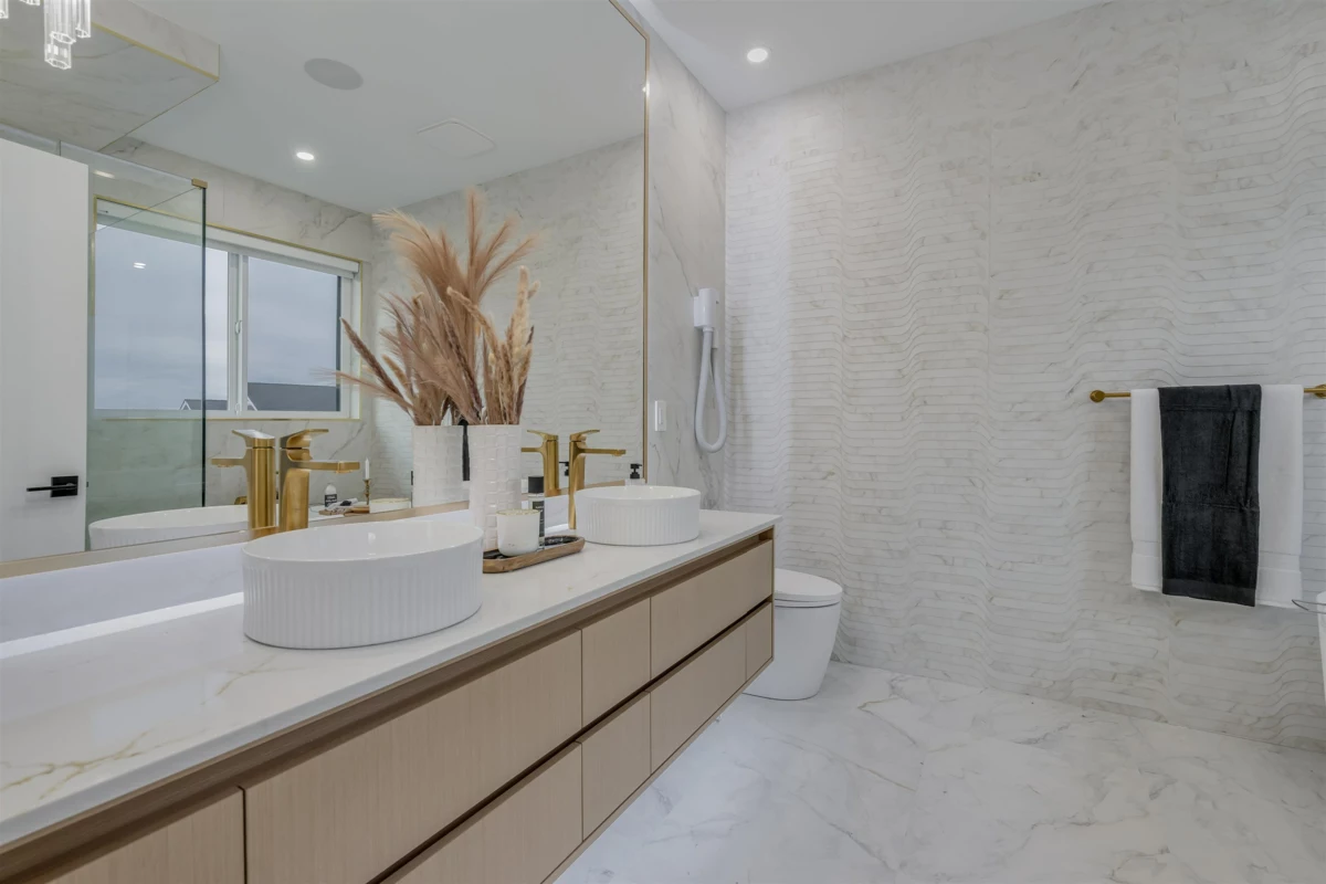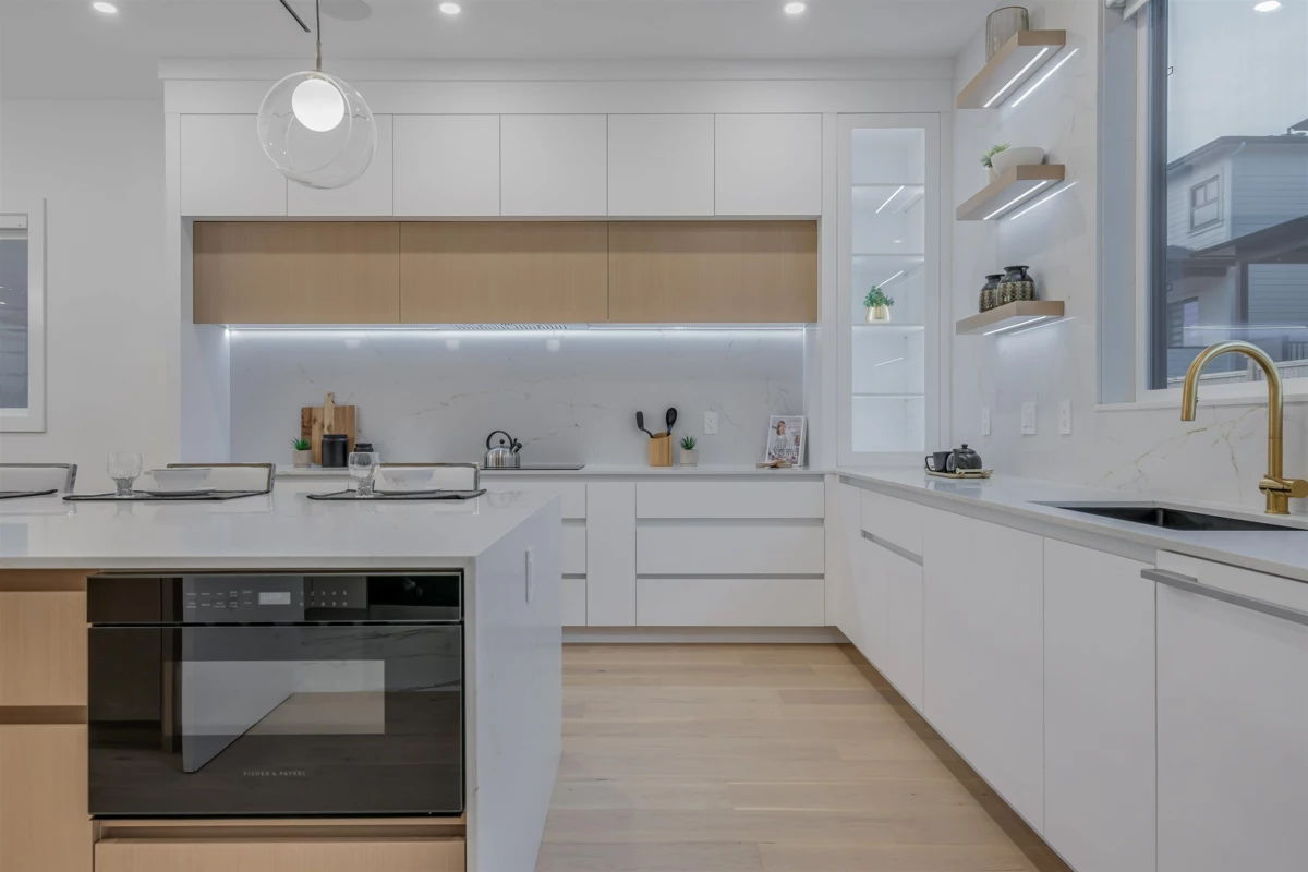 Welcome to this brand-new luxury home in the heart of South Surrey! This stunning residence is designed with sophistication and comfort in mind, featuring large windows that bathe the interiors in natural light and showcase the high-end finishes throughout. The main floor offers a spacious bedroom with a private ensuite—perfect for guests, alongside a chef-inspired kitchen & a wok kitchen, both equipped with premium appliances to elevate your culinary experience. Upstairs, retreat to the opulent master bedroom complete with a luxe ensuite & walk-in closet. The top floor also includes 3 additional spacious bedrooms & 2 washrooms. With a 2-bedroom legal suite perfect for rental income & Media room & powder room for upstairs. Located near top rated schools, shopping & Dining. Don't miss it.