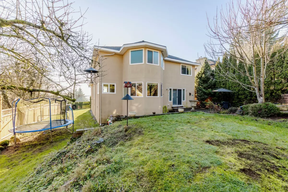 Hazelwood grove Beauty. Welcome to this Custom 2 story home featuring Grand entry open and spacious floor plan with Vaulted ceilings formal living and dining room with gas fireplace. Kitchen eating area family room combination looking over fully fenced private backyard with koi pond. Bonus Den and 3 pc bathroom on main floor. Upstairs with 4 spacious bedrooms Primary with 5 pc ensuite and walk in closet. Additional features: New roof, windows on demand hot water system and appliances. Panoramic views of Mt. Baker, Surrey Golf Course and the Serpentine Valley/Northview Golf and country club. All this and more walking distance to new skytrain station.