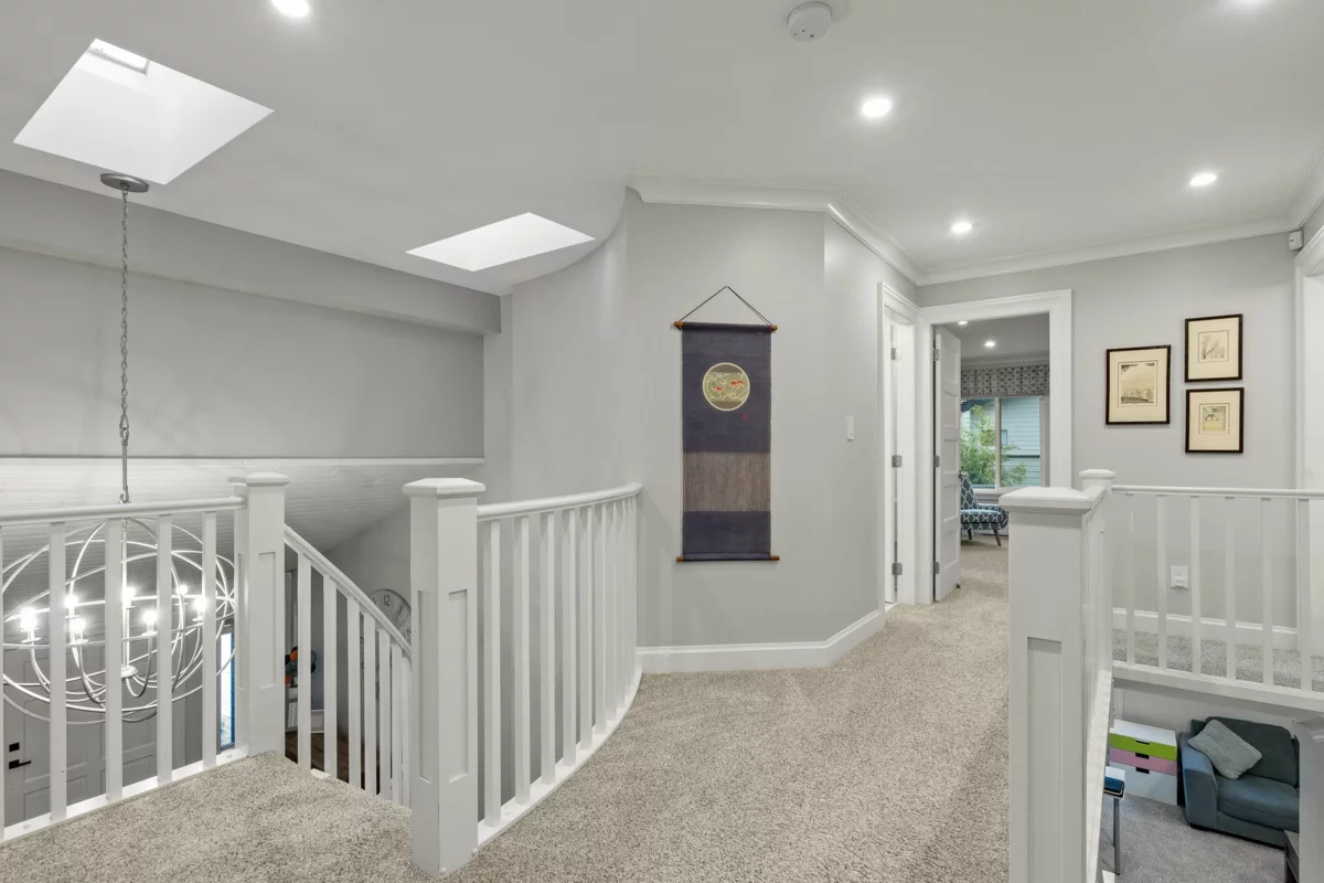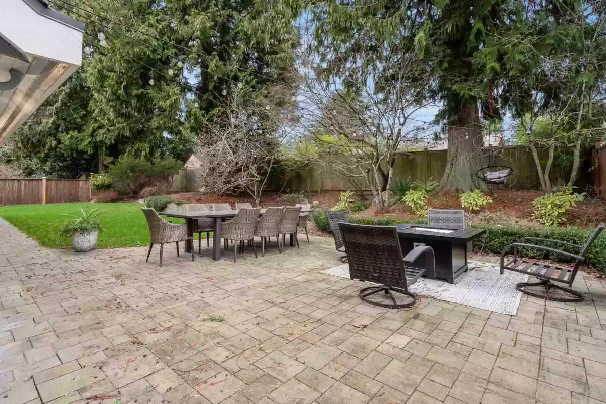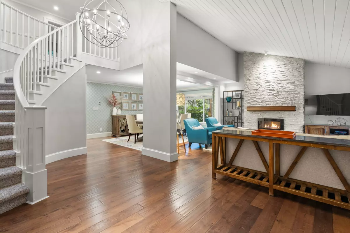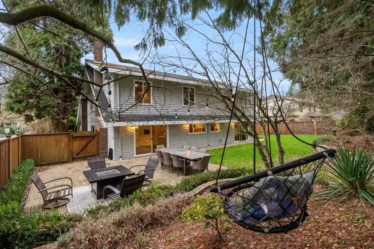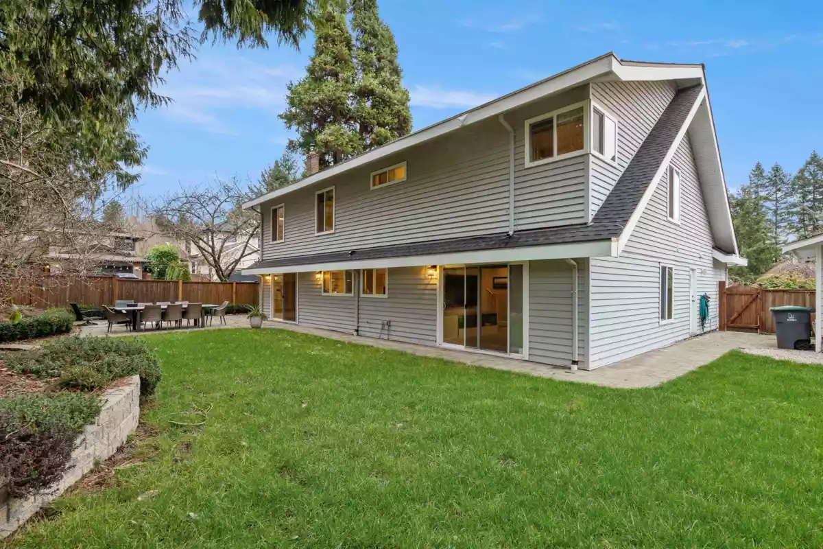 SOUTH SURREY'S Beautiful AMBLE GREENE! Custom 2 story house with over 3100 SF of living space. Tastefully updated, south facing 4 bedroom, 4 bathroom, completely private fenced 9400 sqft corner lot home boasts a very functional family floorplan. Vaulted ceiling, 2 skylights in living/dining, cheerful bright kitchen & eating room fireplace overlooking treed and landscaped backyard, separate family room with 2nd stairway leading to the 3 bedrooms and oversized master bedroom (25x15). Fiberglass roof & Hotwater heating system. You will enjoy this friendly, peaceful, parklike neighbourhood. Move-in condition, Elgin Park Secondary catchment. Do not miss it. QUICK POSSESSION Possible.