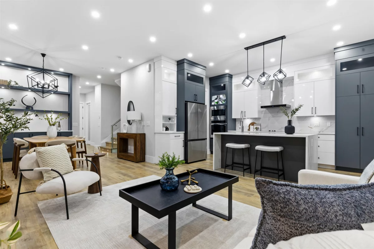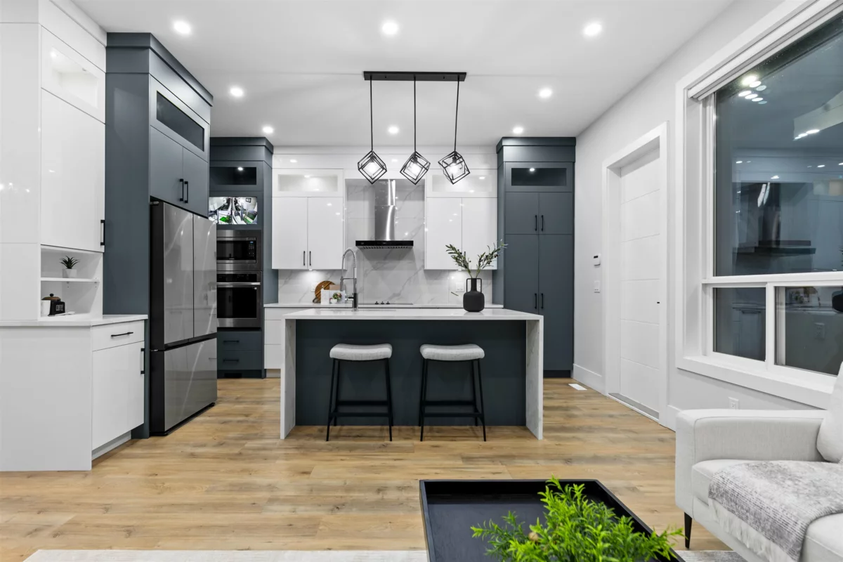 Welcome to this brand-new home in a newly developed subdivision in desirable South Surrey, just minutes from White Rock Beach and major highways. This residence offers 6 bedrooms and 4.5 bathrooms, featuring an open-concept layout with soaring ceilings that create a modern, luxurious feel throughout. The elegant white kitchen showcases marble countertops, stainless steel appliances, and a separate spice kitchen—perfect for entertaining. The family room flows seamlessly onto the patio for indoor-outdoor living. The basement includes a 2-bedroom legal suite plus a large flex room with its own full bathroom, ideal for extended family or added income. Complete with a detached 2-car garage and one additional side parking stall. GST is not included. Backed by a 2-5-10 New Home Warranty.