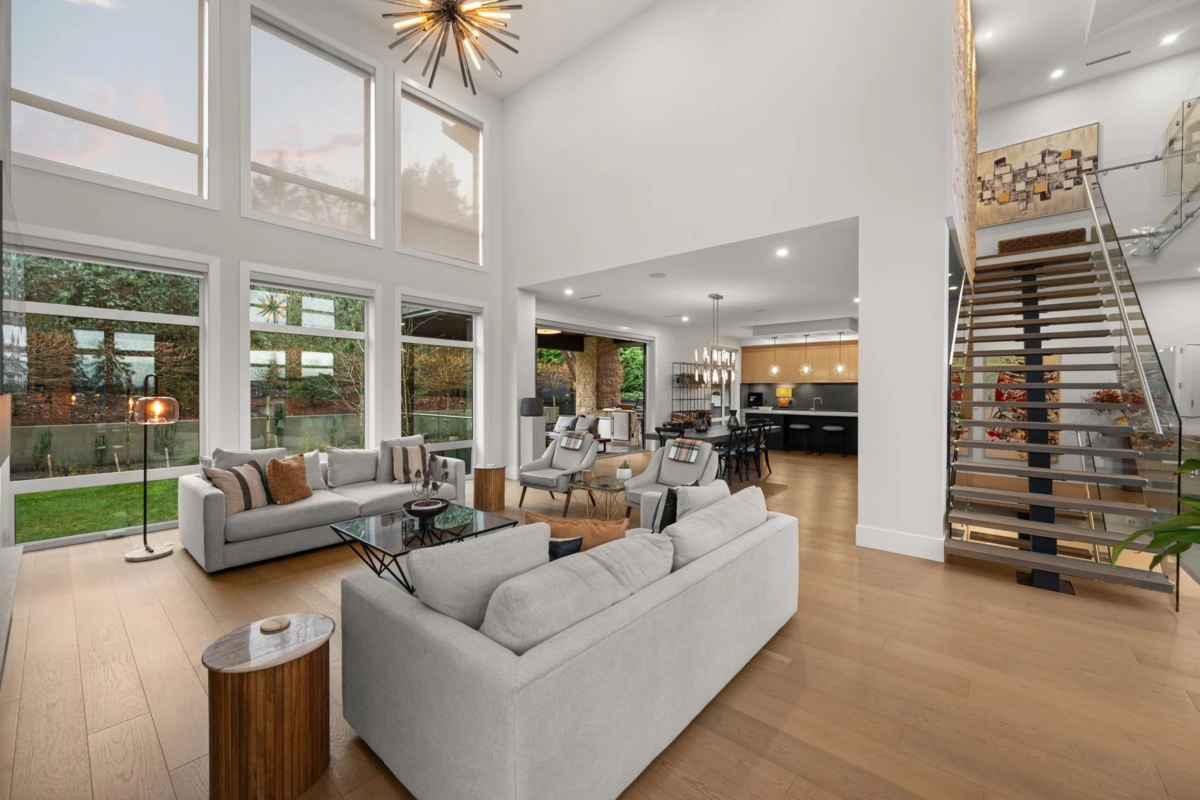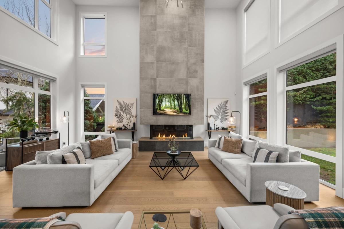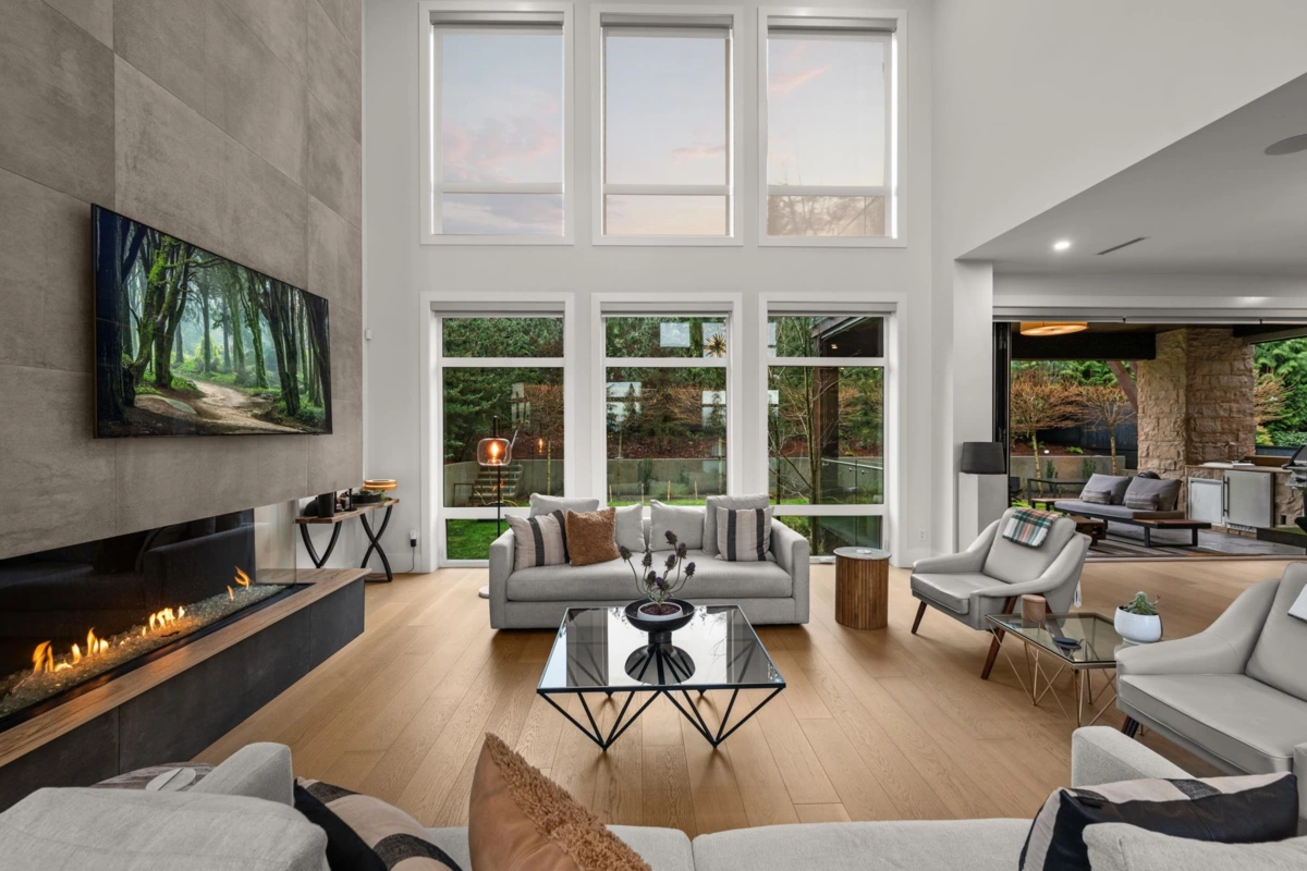 MODERN ARCHITECTURAL MASTERPIECE by Su Casa Homes, thoughtfully designed and impeccably executed in April Creek. No expense spared with engineered steel beams to achieve the architectural design, radiant in-floor heating, bespoke millwork, curated designer lighting, and premium engineered hardwood throughout. Dramatic 20’ ceilings define the main living space, highlighted by a stunning double corner fireplace and steel stringer staircases. Accordion sliders open to an outdoor living area with a fully equipped outdoor kitchen. Offering 4 bedrooms all with ensuites, private office, 6 bathrooms including 2 steam showers, designer kitchen, glass elevator, and an entertainer’s lower level with wet bar, theatre, and gym. Bold architecture. Thoughtful design. Uncompromised luxury.