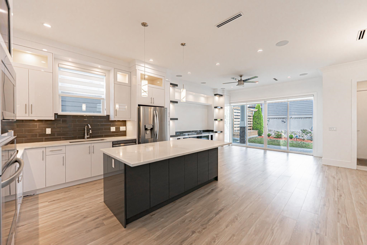 Welcome to this LIKE NEW 8 BDRM & 6 FULL BATH home. Features include 10' ceiling and full bath on main floor, good soundproofing, cost-saving radiant floor heating & AC, security sytm, contemporary kitchens w/ premium like-new appliances, large island & lots cabinet storage. Built-in speakers in living room and patio. Patio doors slide WIDE OPEN W/ SCREEN to become a wonderful hosting venue w/ open space. It also includes a 2 BDRM LEGAL suite as a good mortgage helper. 2 ensuite BDRMs on upper level. Double garage w/ EV ready. Just minutes' drive away from the top-ranking SOUTHRIDGE SCHOOL, brand new public school Ta-talu Elementary, Grandview Heights Aquatic Centre, shopping mall which has almost everything you need. 3 minutes access to Highway 99. OH Jan 17&18, 2-4pm.