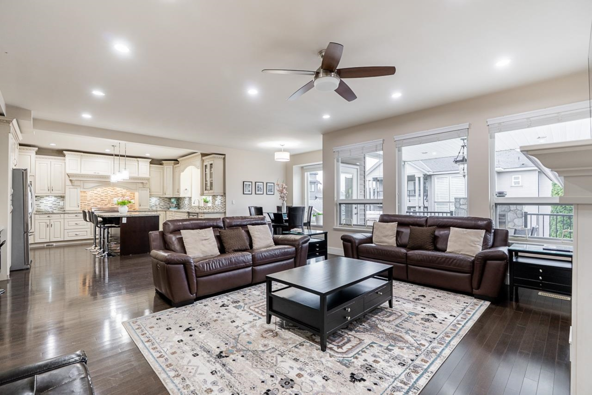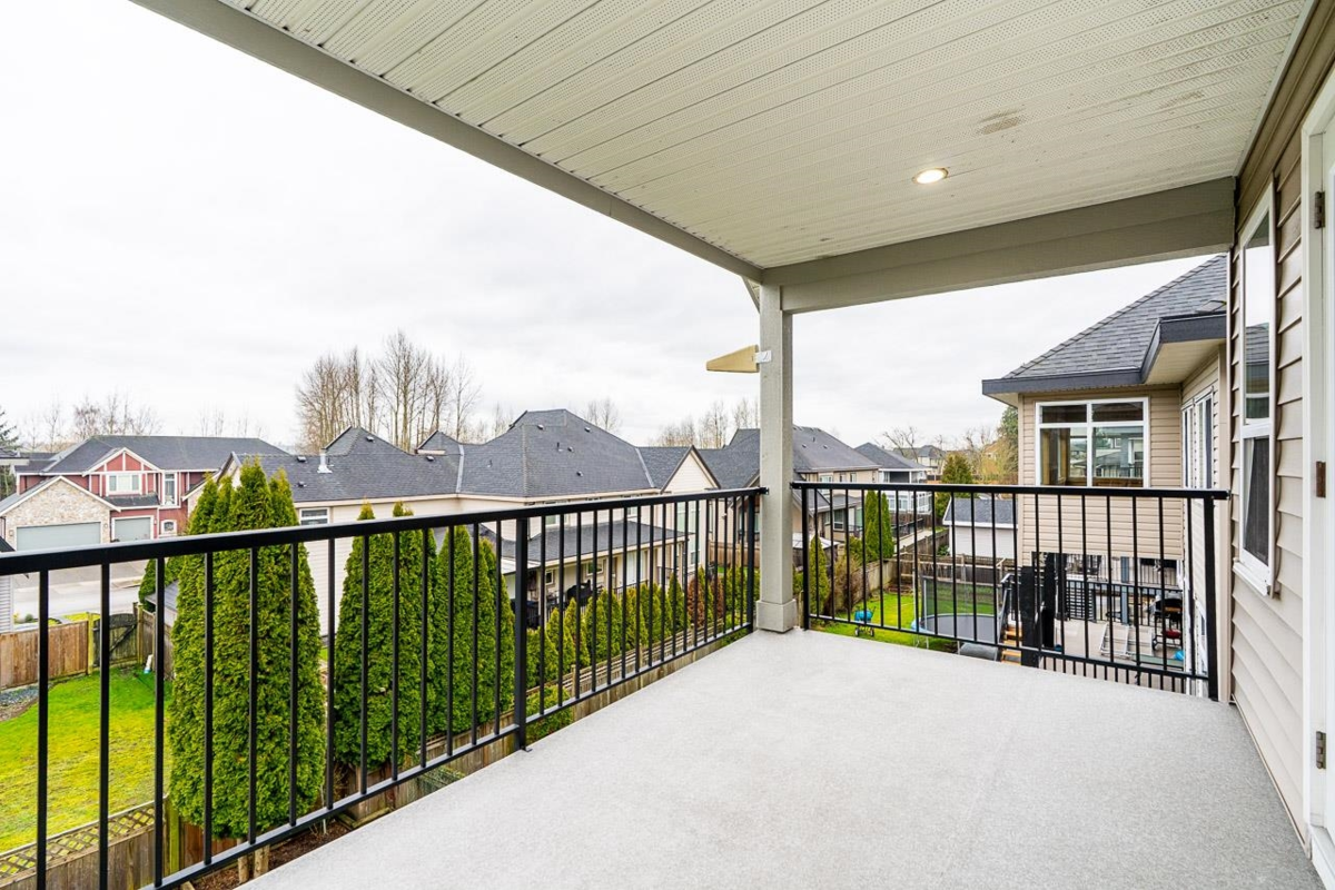 This custom-built home in Cloverdale stands out with thoughtful upgrades such as A/C & quality finishings. The main floor is bright & open with 10' ceilings. The kitchen boasts a gas cooktop, antique white cabinets, granite countertops, S/S appliances & large island, perfect for gatherings. The living & dining area seamlessly flows out to a huge covered patio w/a outdoor Napoleon fireplace, great for BBQs. Upstairs, a spacious prim bdrm w/spa like ensuite & large walkin closet, w/private access to a covered balcony. In addition to 3 generously sized bdrms & main bathrm. Downstairs a theatre room, perfect for teens. Home features 2 suites, a 1bd & a 2bd suite. The fully fenced, south-facing backyard is perfect for year-round entertaining. Close to shopping, recreation & parks.