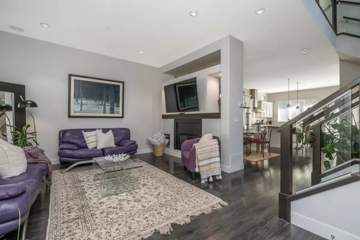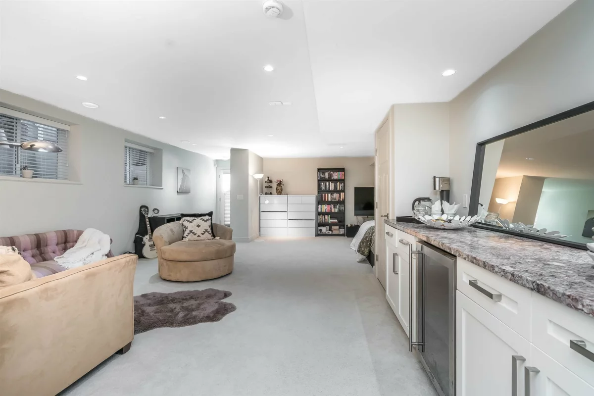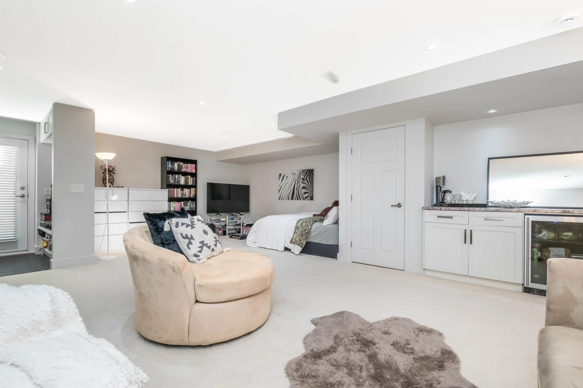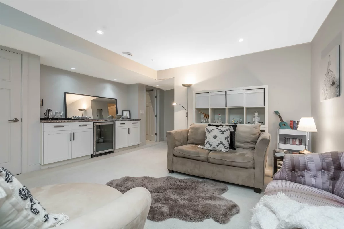 Spacious 4 bedroom family home w bright open plan for entertaining & quality family life. Generous kitchen w exceptional counterspace, massive island w storage & seating. Gleaming stone countertops & SS appliances. Central A/C & gas fireplace for all season comfort. Powder room on main. Beautiful primary bedroom w vaulted ceiling, walk-in closet & balcony. Professionally fully finished basement w sep entrance has bedroom, full bathroom & huge rec room. Suite potential. Enjoy sunny south-facing backyard w patio for bbqs. Artificial turf, so no mowing needed. Double detached garage off laneway w 3rd open parking space. Located on quiet tree-lined residential street. Walk to Edgewood Elem and pool.